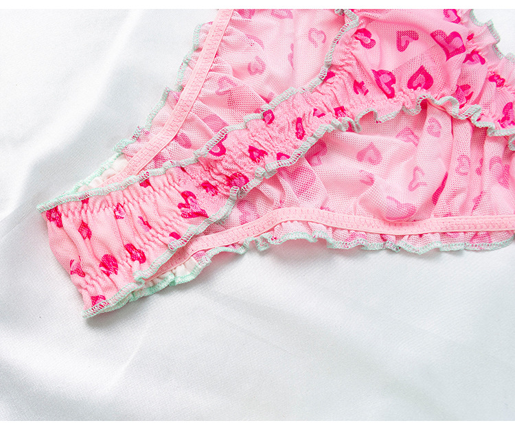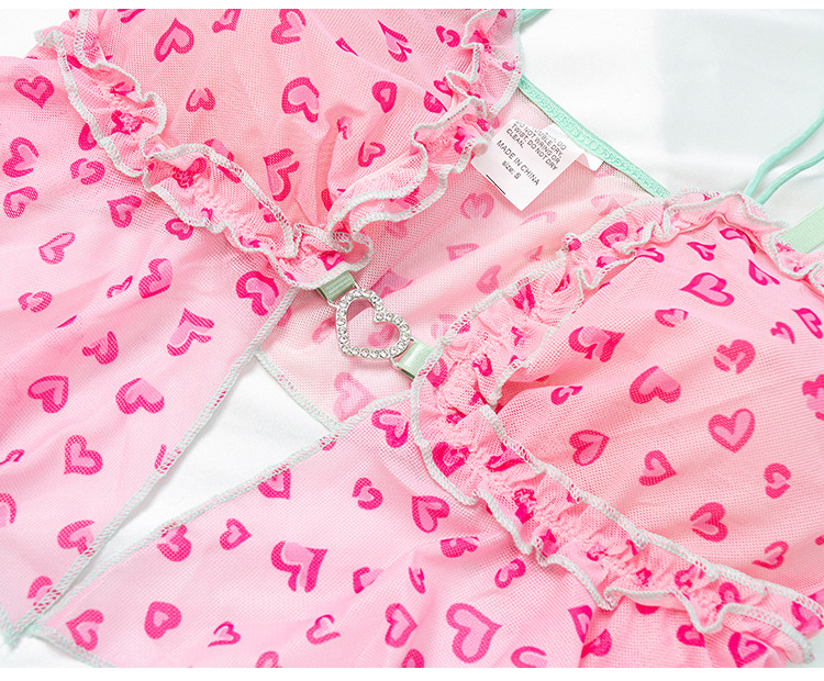 Sexy Lingerie Cute Girl Cute Pink Sling Heart Printing Thin Sexy See through Two Piece Sets