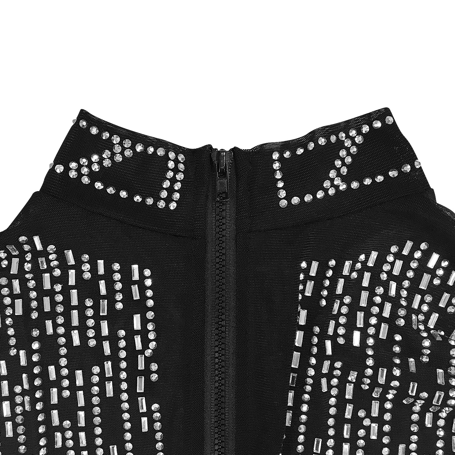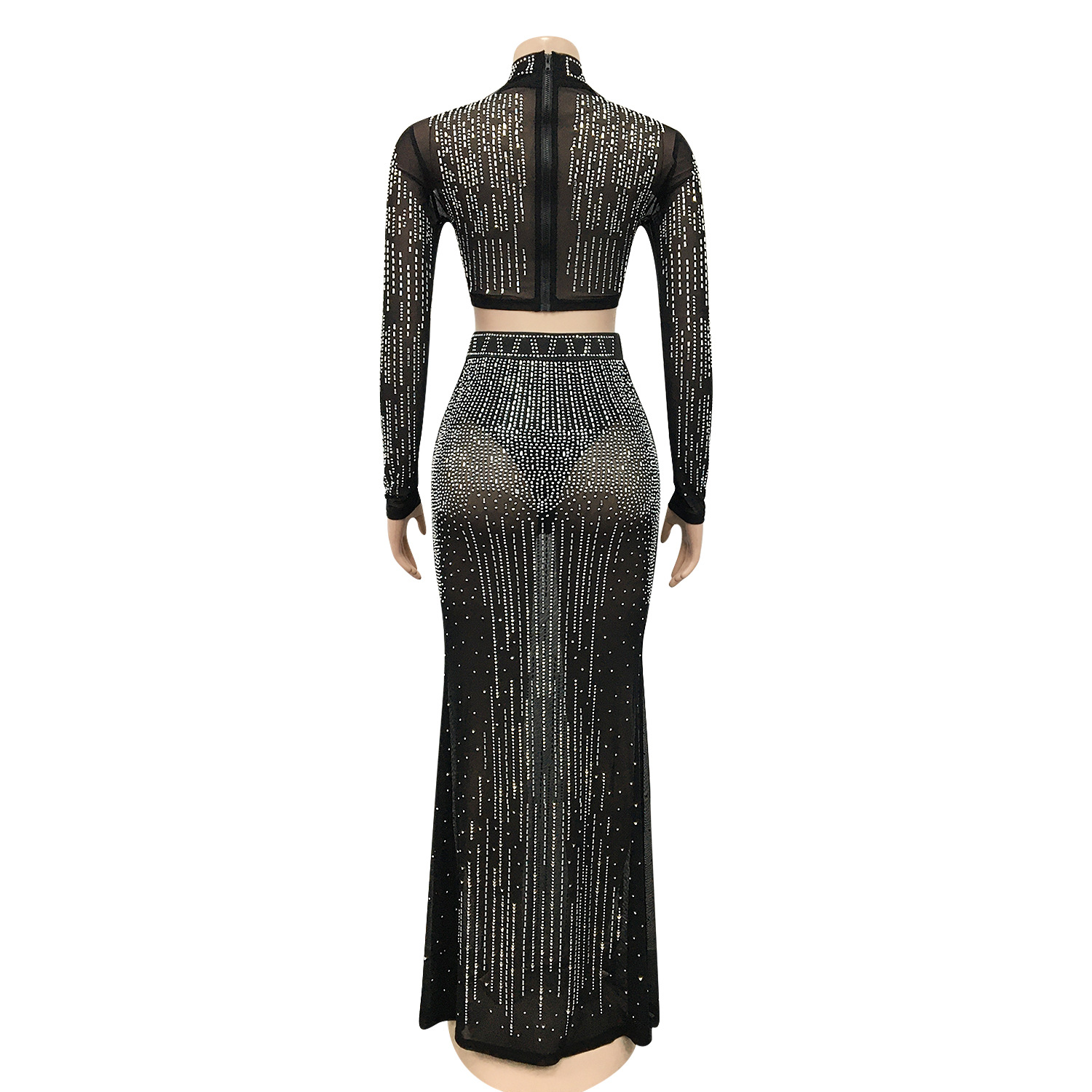 Sexy Nightclub Women Clothing Mesh See-through Long Sleeve Dress Two Piece Set