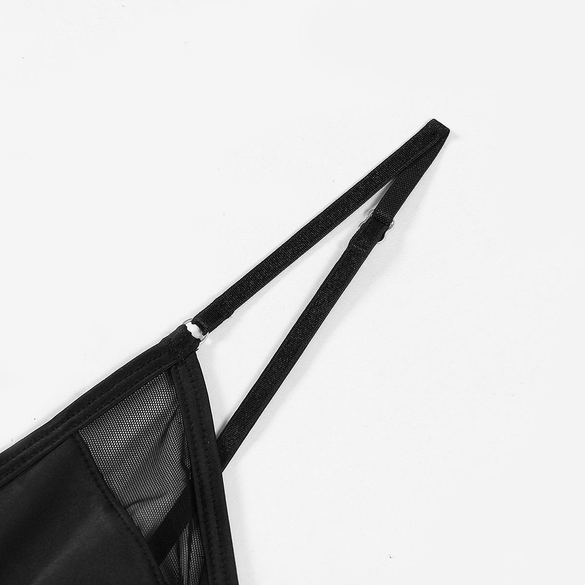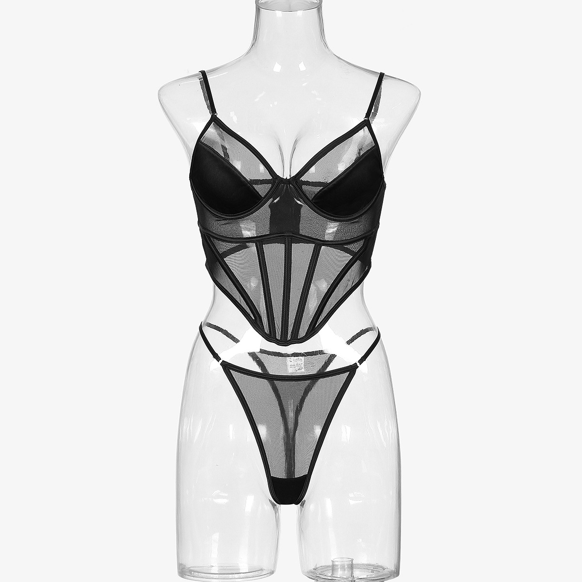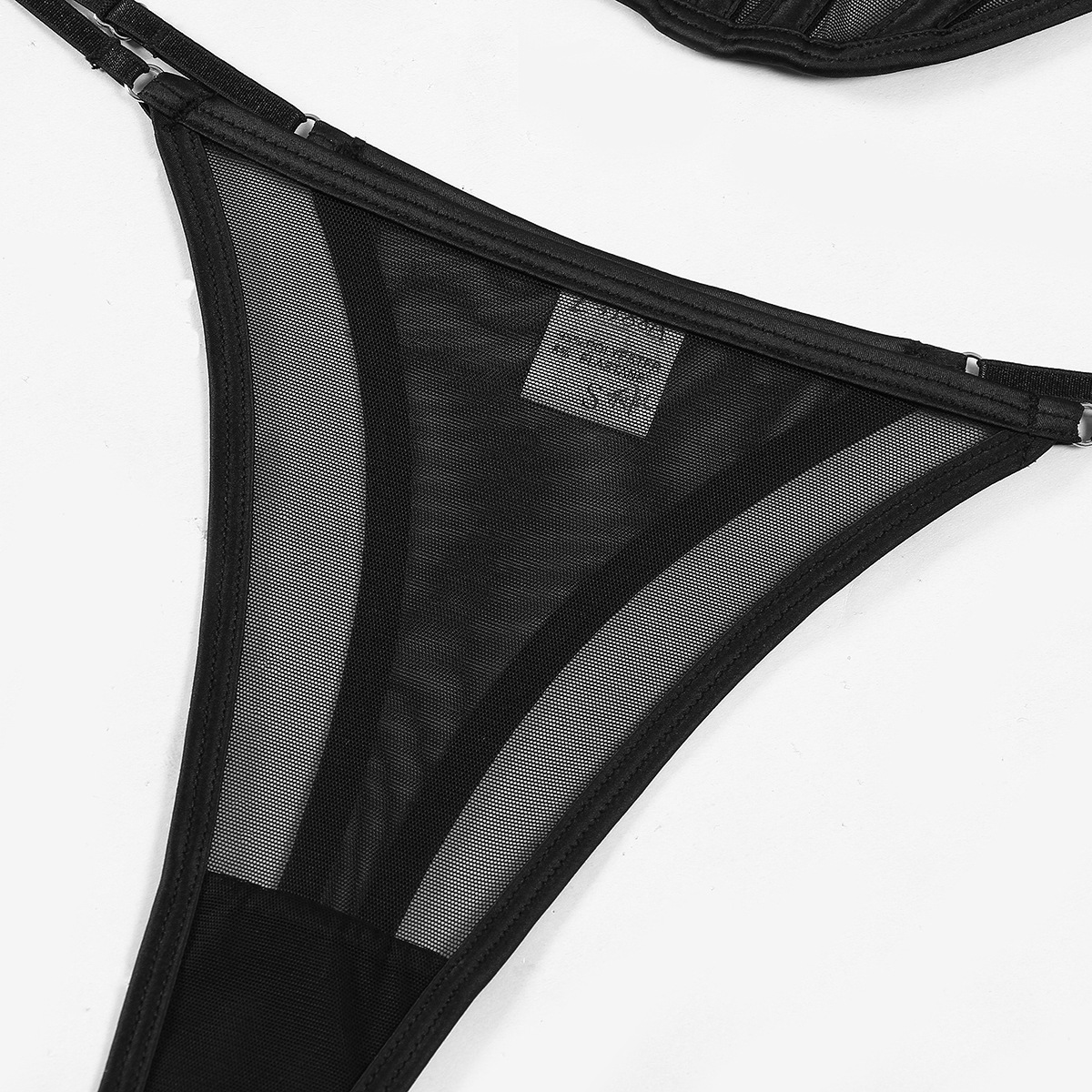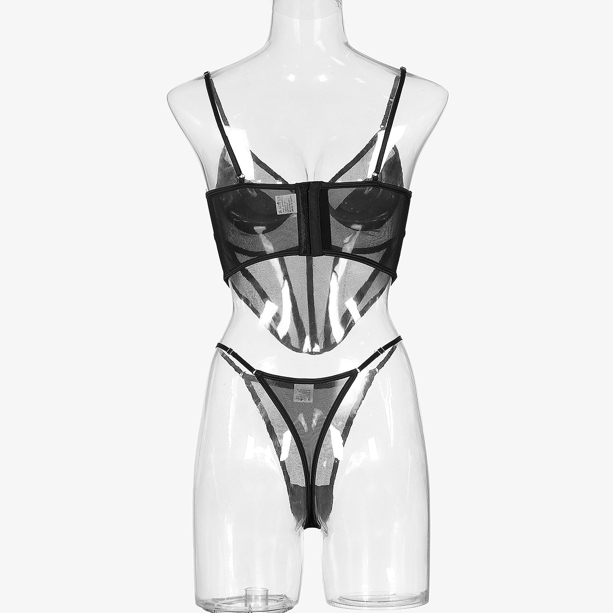 Sexy Sheer Mesh Girls V Neck Strap Underwear Two Piece
