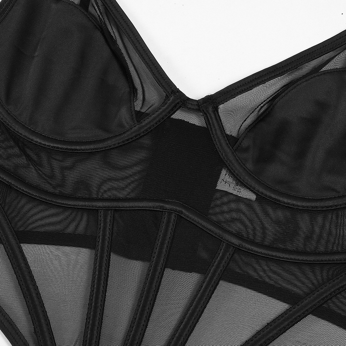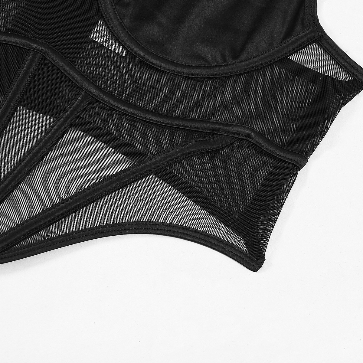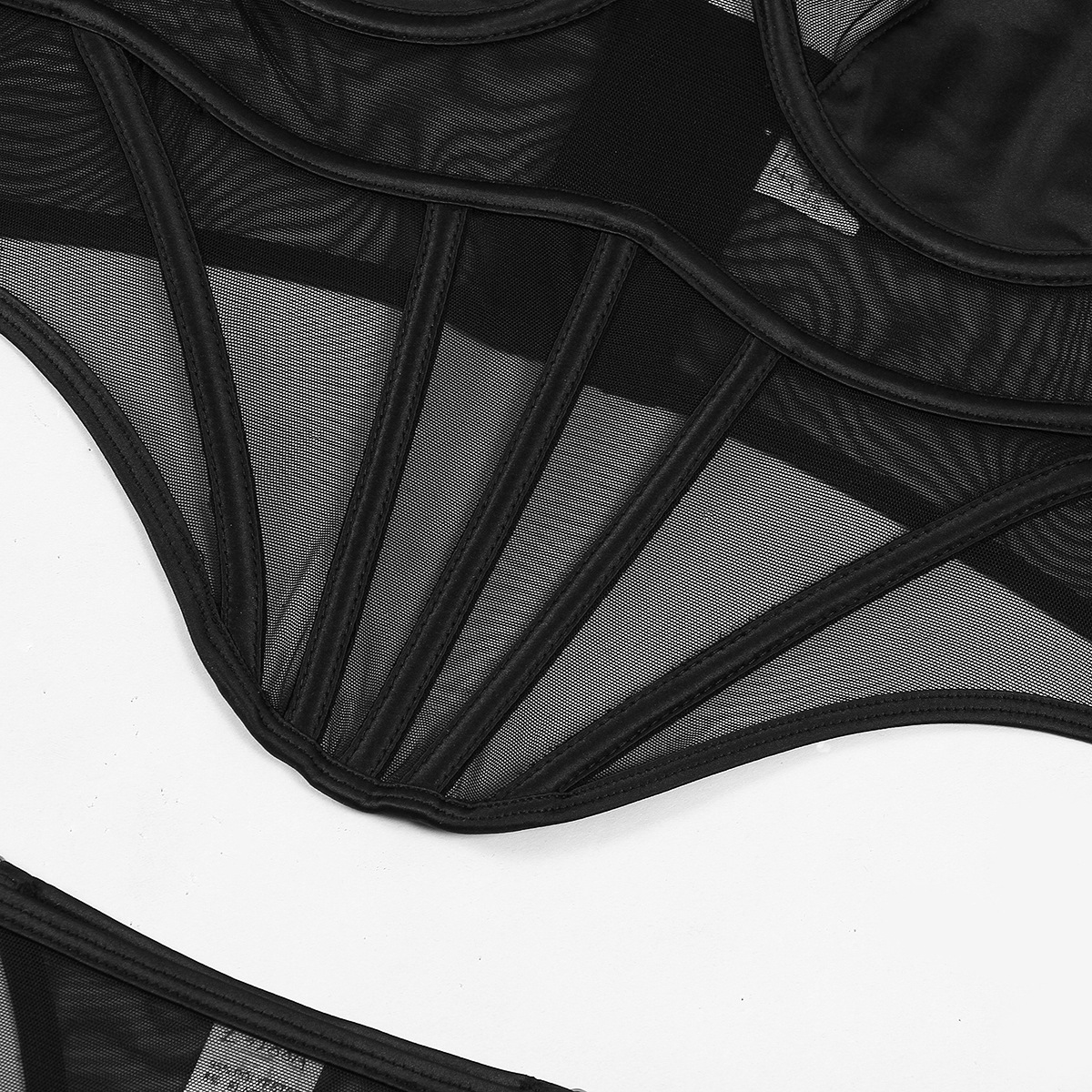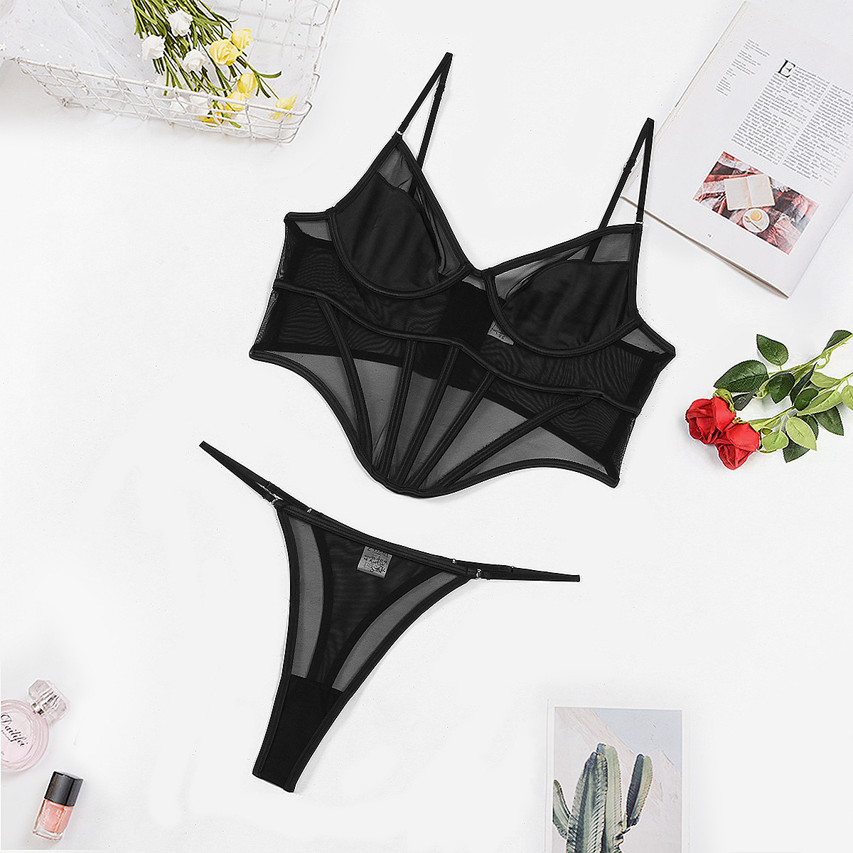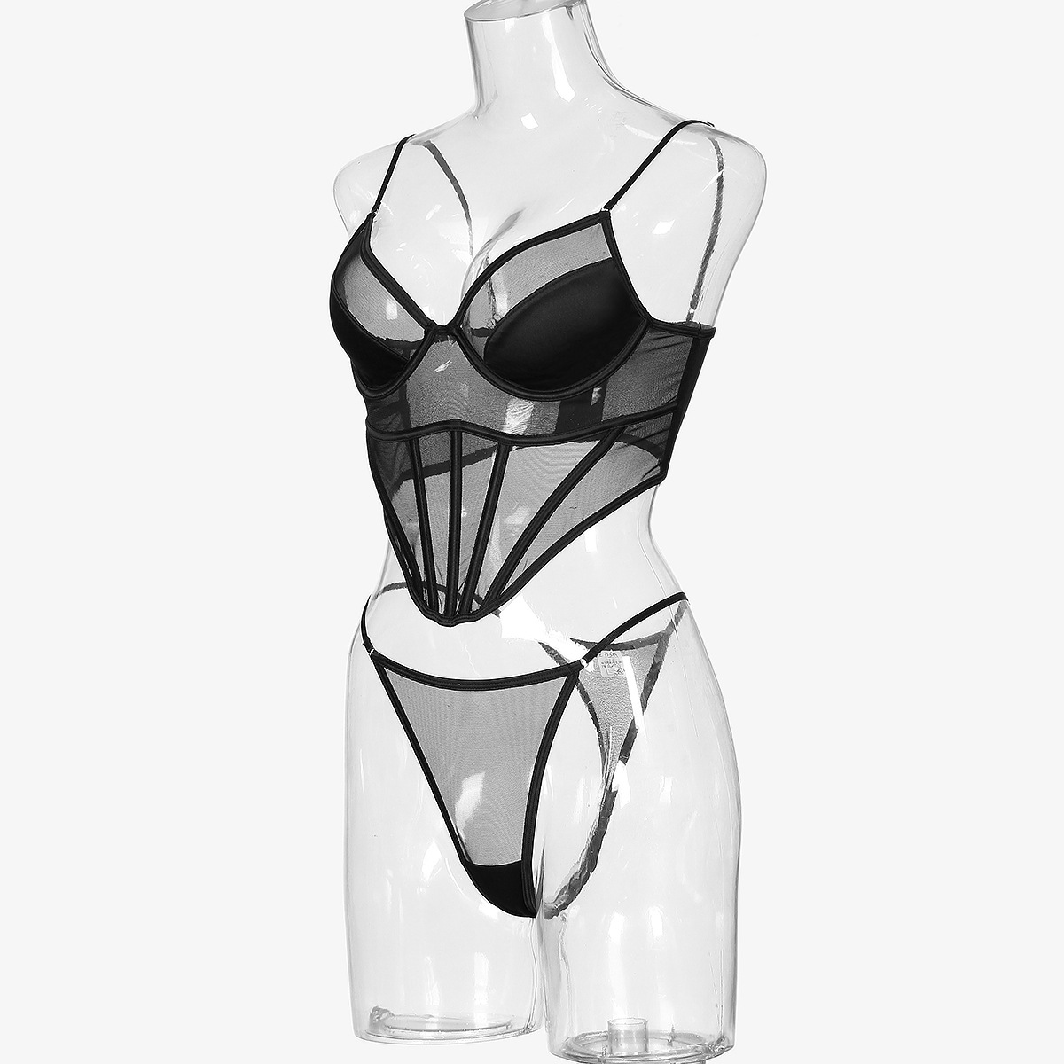 Sexy Sheer Mesh Girls V Neck Strap Underwear Two Piece
