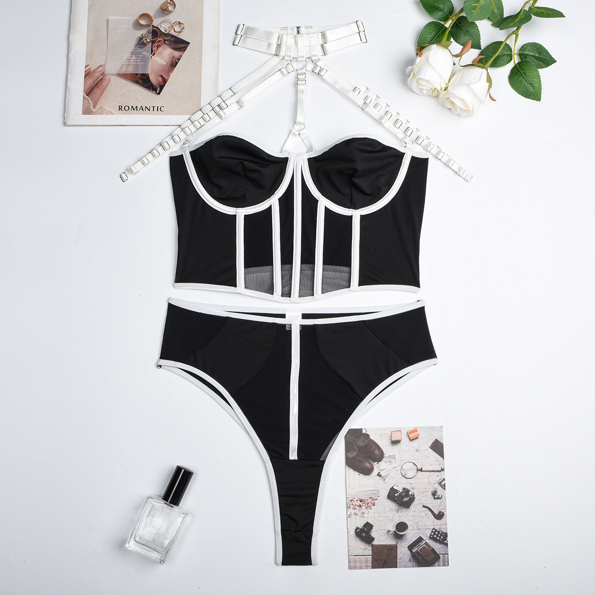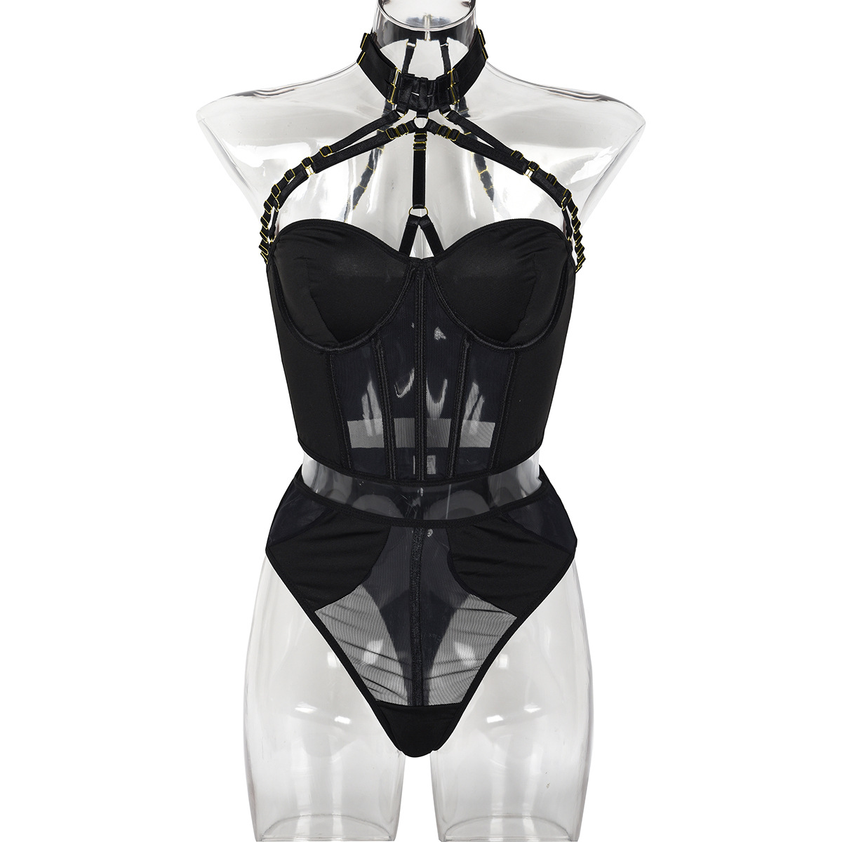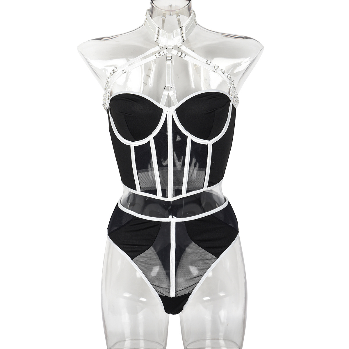 Sexy Suit Mesh Strap Stitching Complex Heavy Craft Metal Halter
