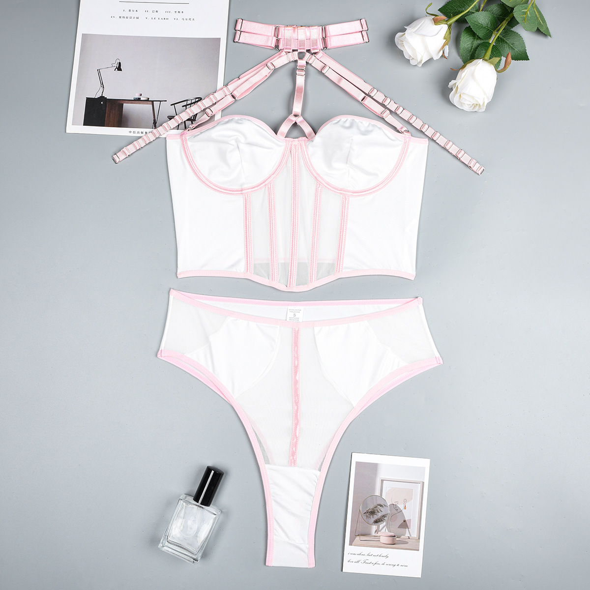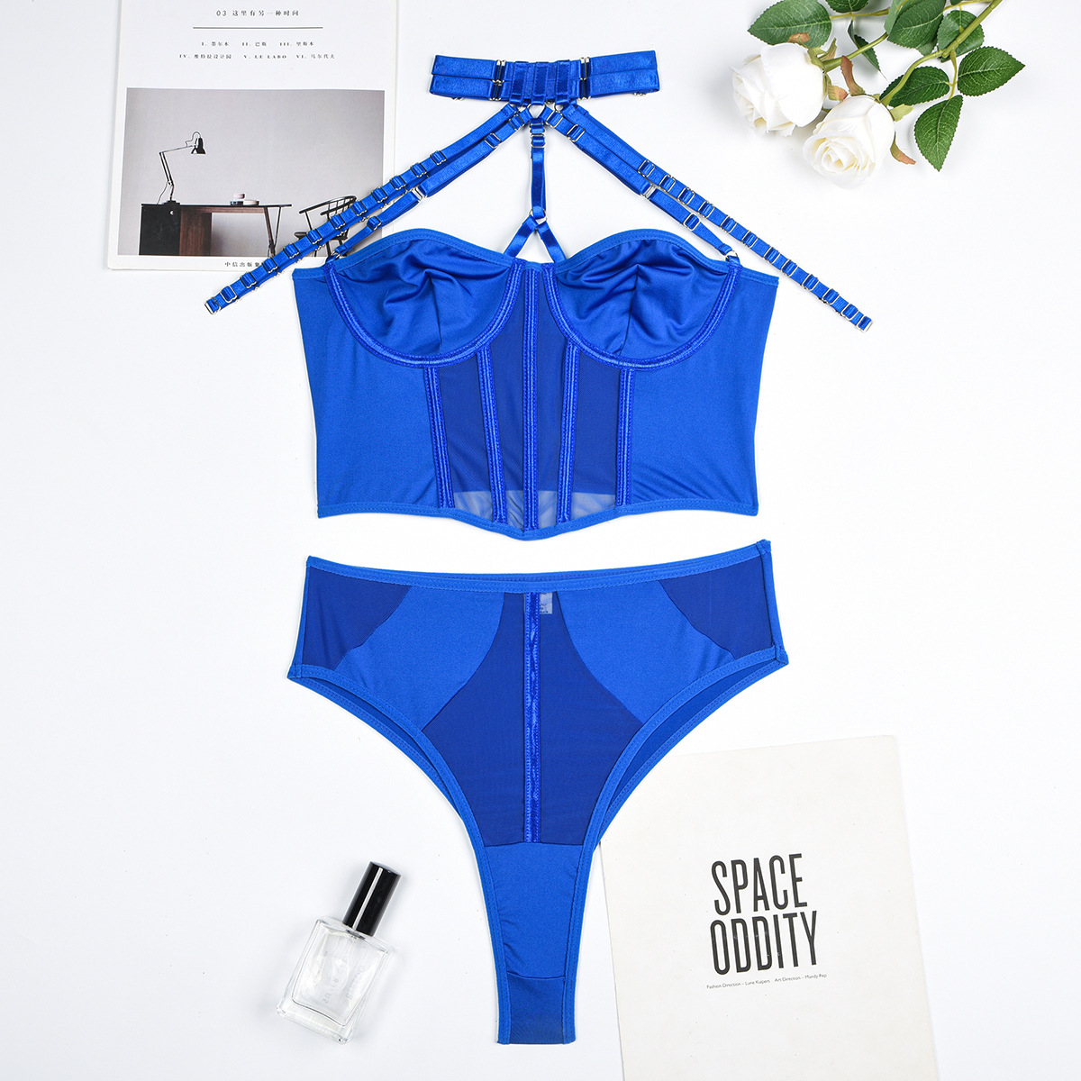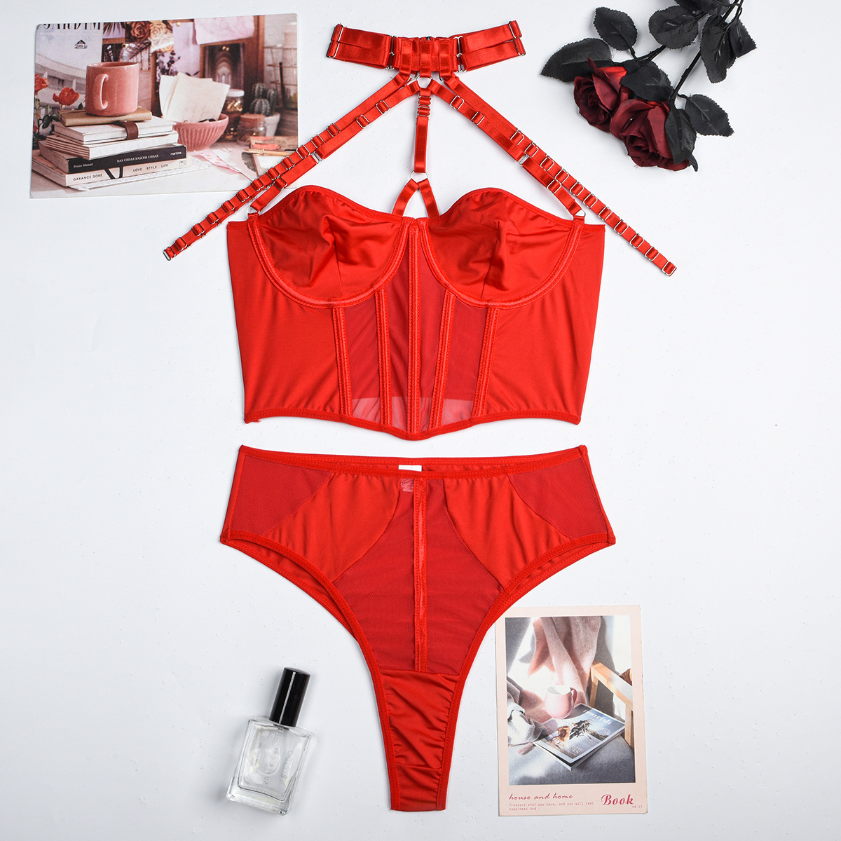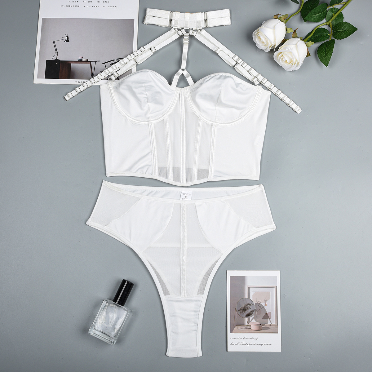 Sexy Suit Mesh Strap Stitching Complex Heavy Craft Metal Halter