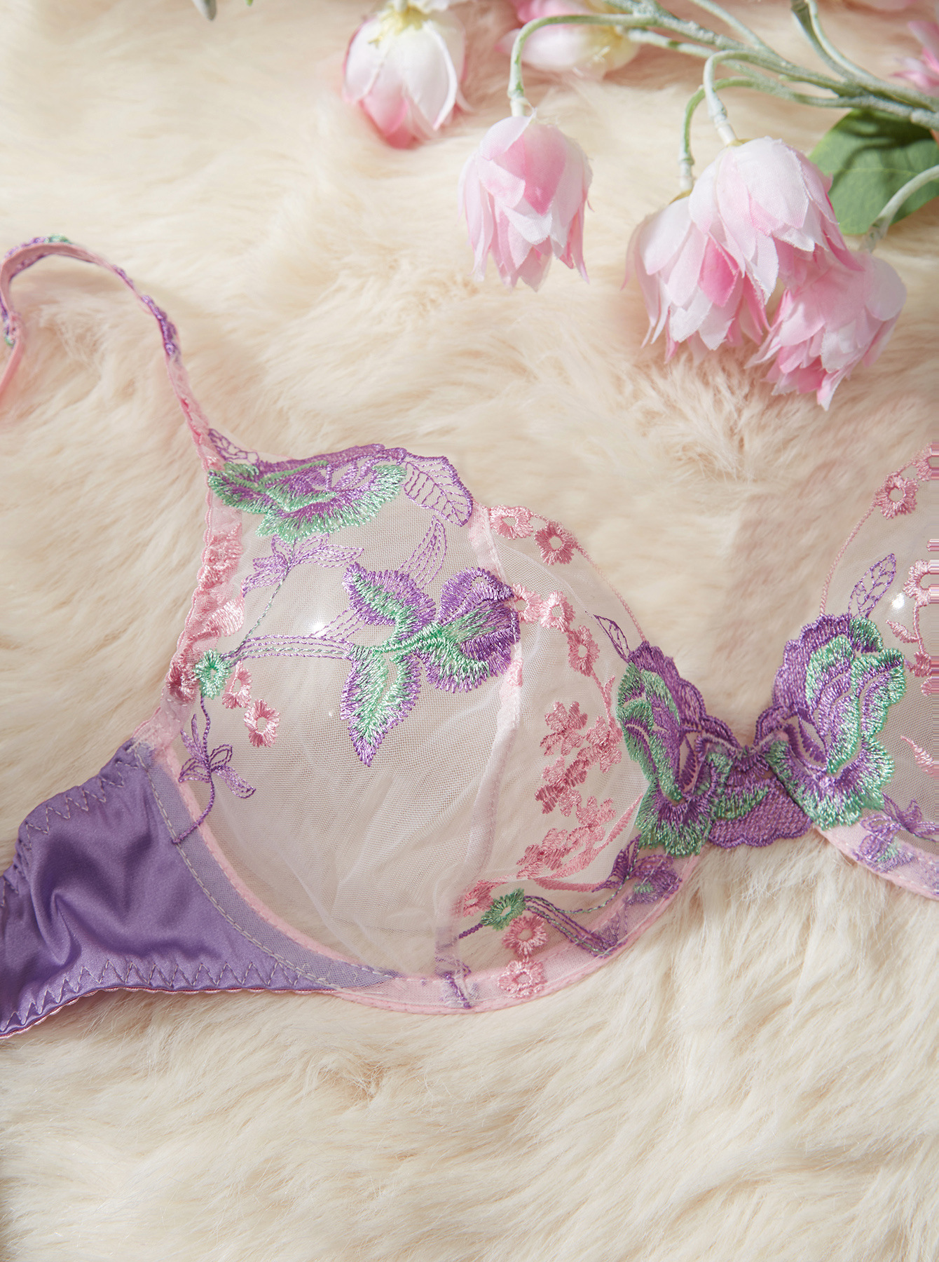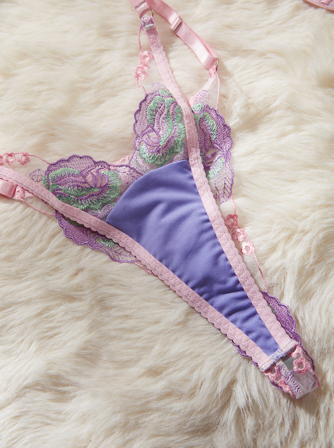 Sexy Suit Romantic Pastoral Heavy Industry Floral Embroidery Stitching Contrast Color Sexy Underwear Two Piece