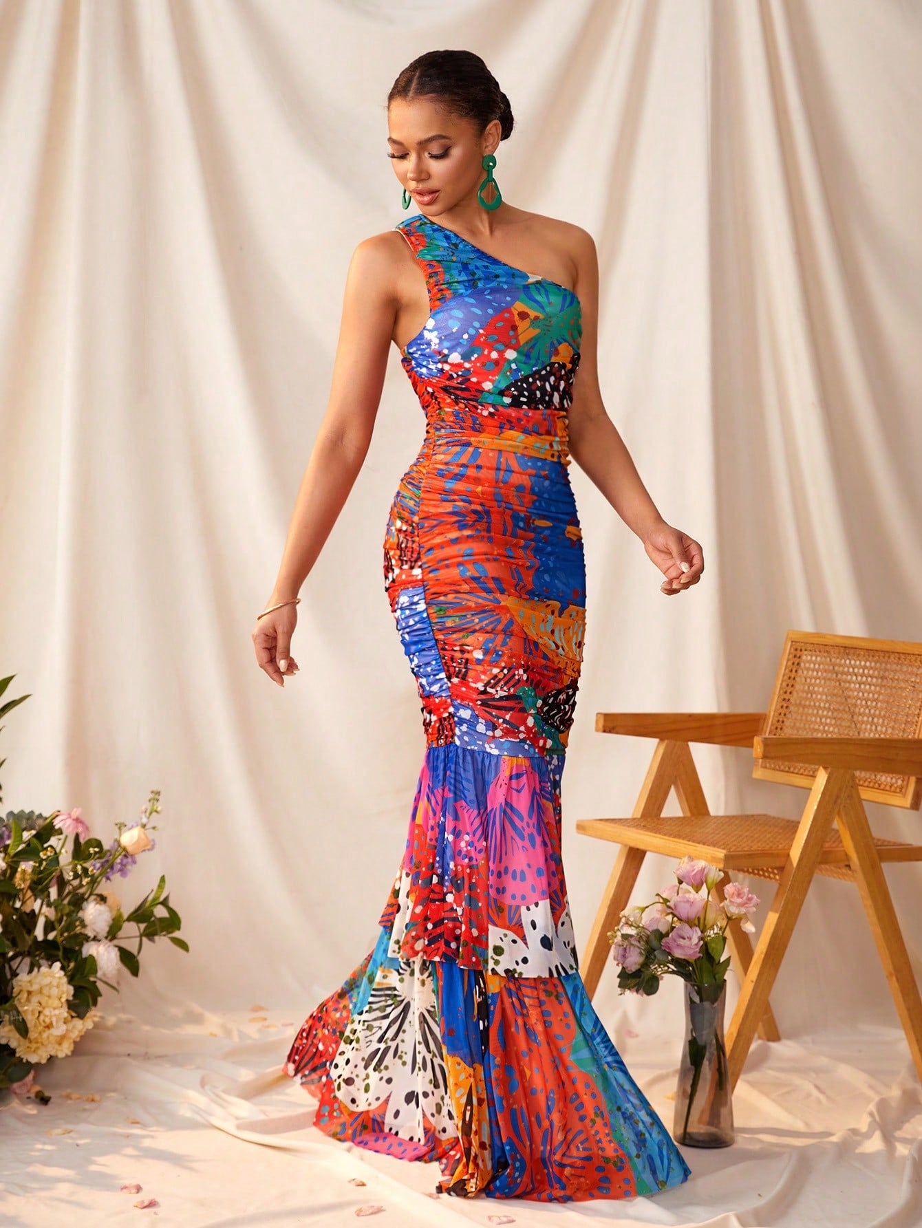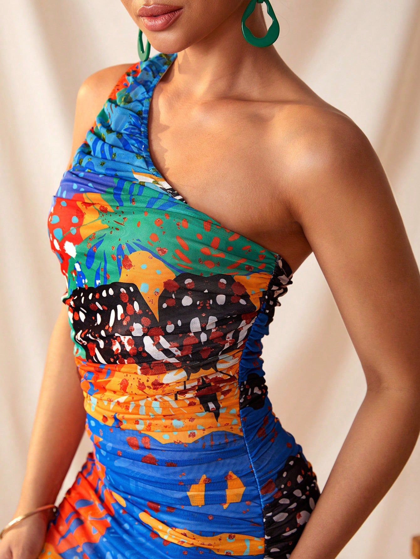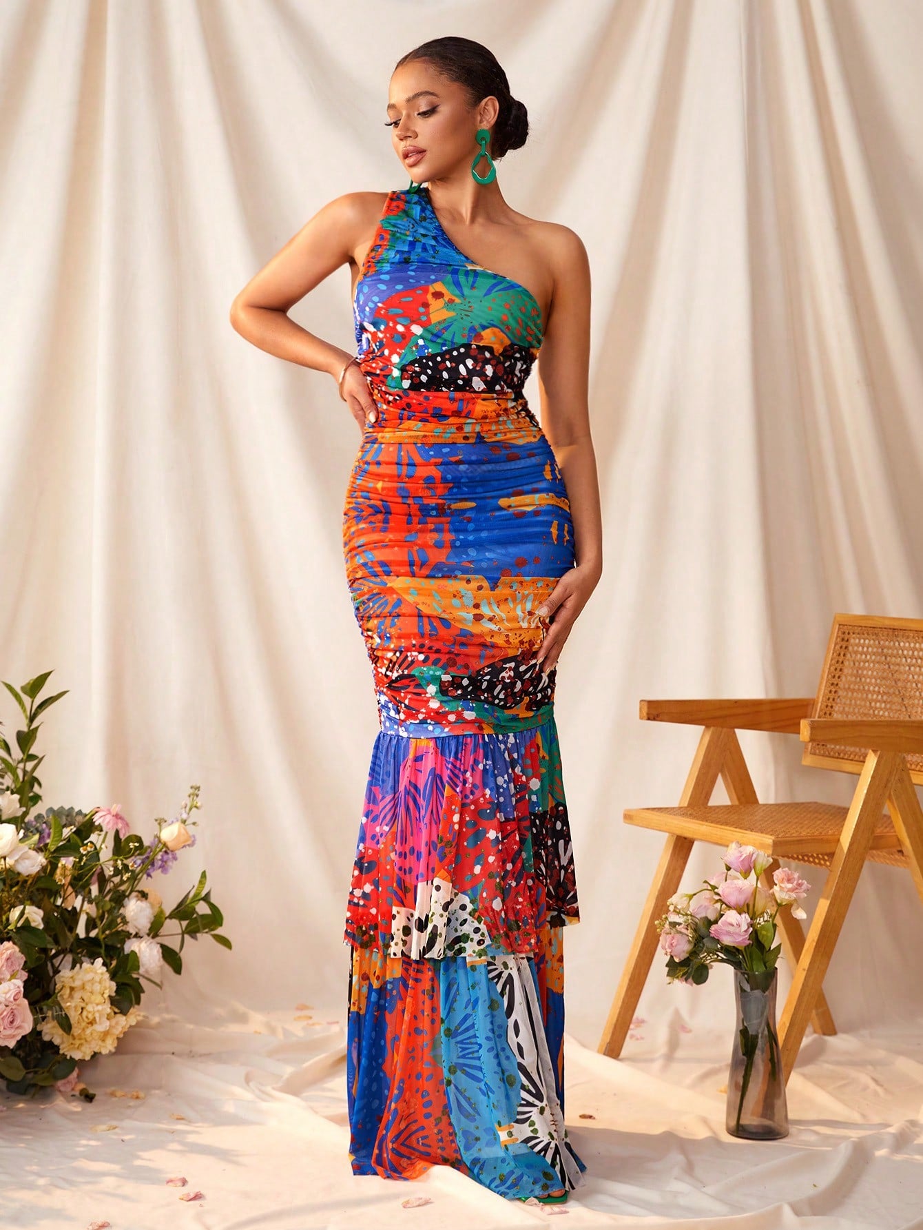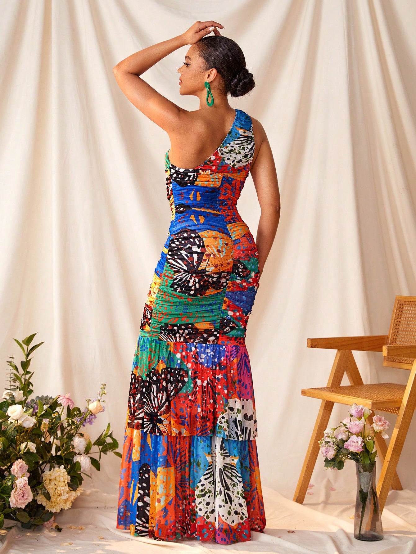 SHAQUITA GARCIA Designer Boho Bohemian Women's Sexy Sheer Mesh Printed Asymmetrical Collar Sleeveless Slim Fit Multi-Layered Long Dress, Summer Elegant Dress Outfit, For Holiday, Party, Vacation, Vacation, Birthday Concert Outfits, Beach, Festival, Rave O