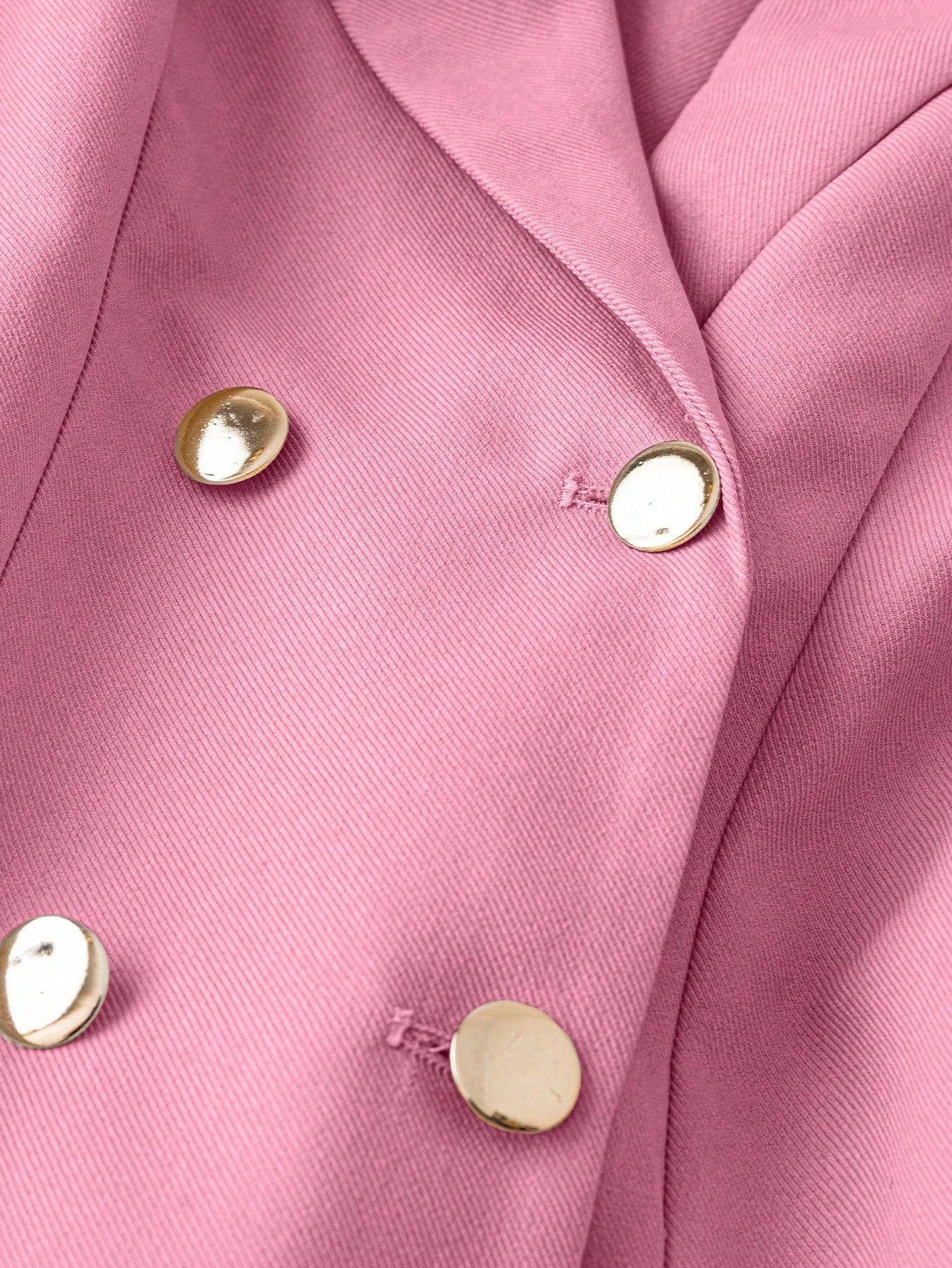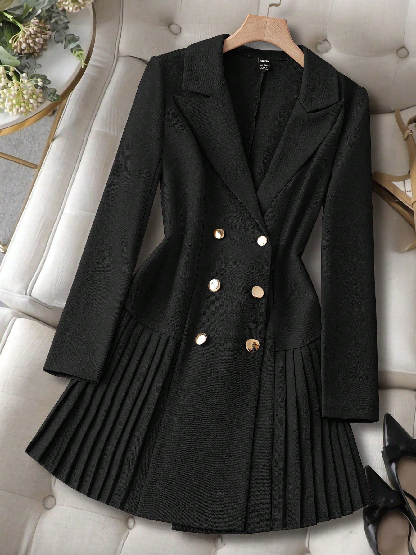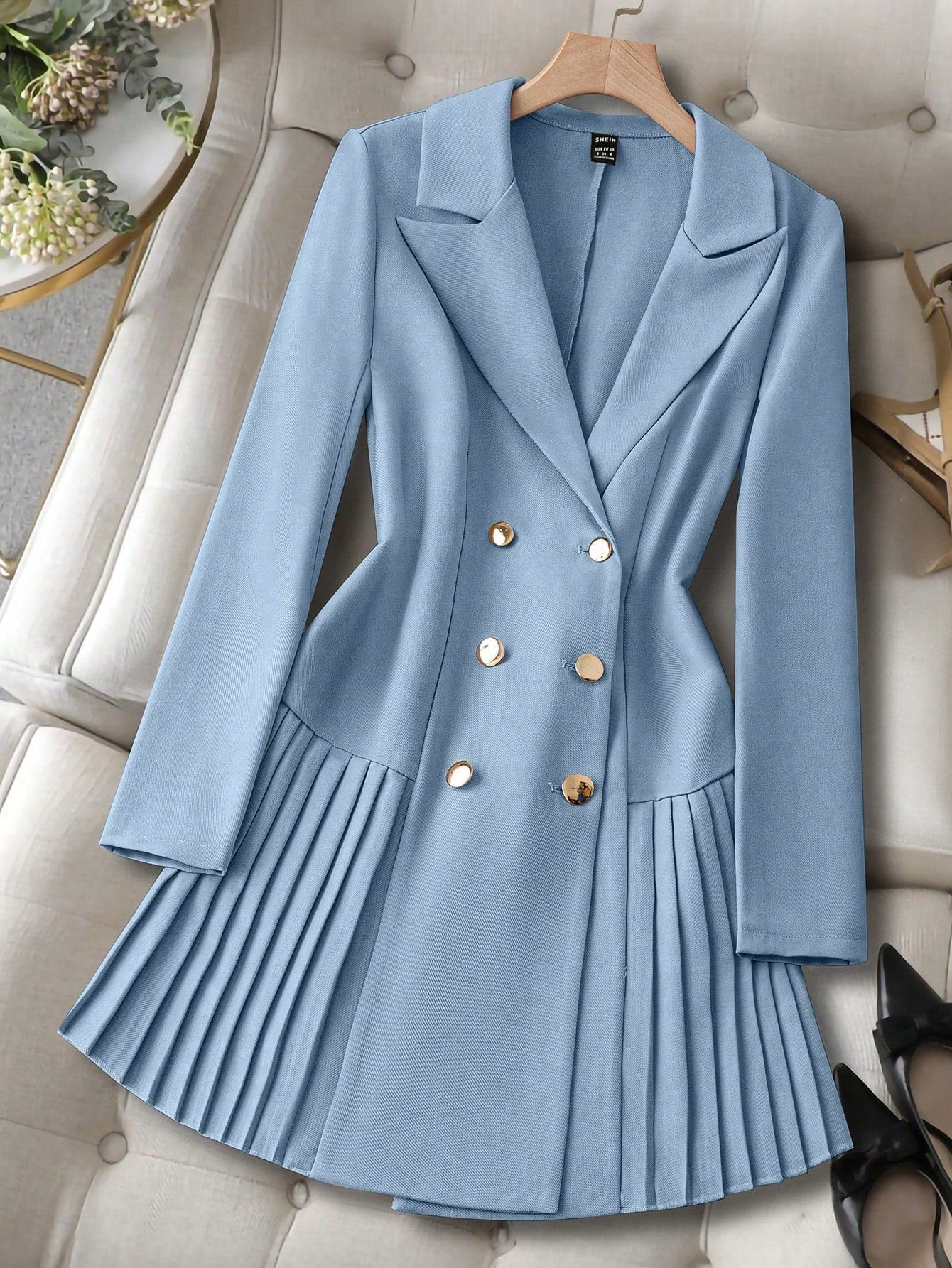 Raffinéa Women Elegant Solid Color Double Breasted Pleated Hem Blazer Jacket, Autumn