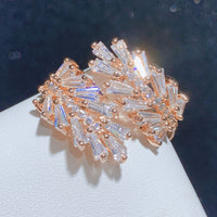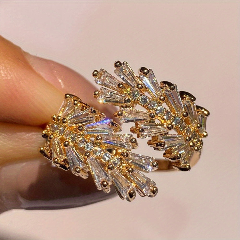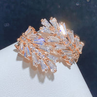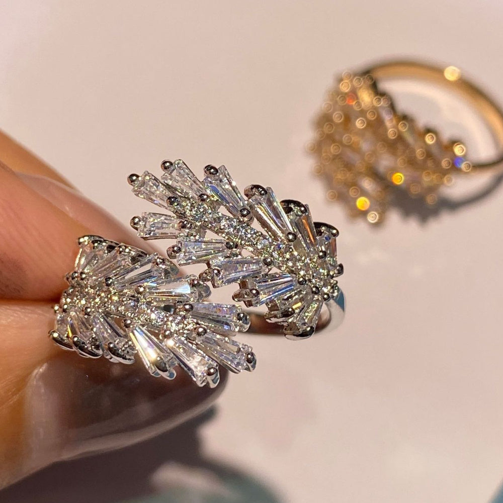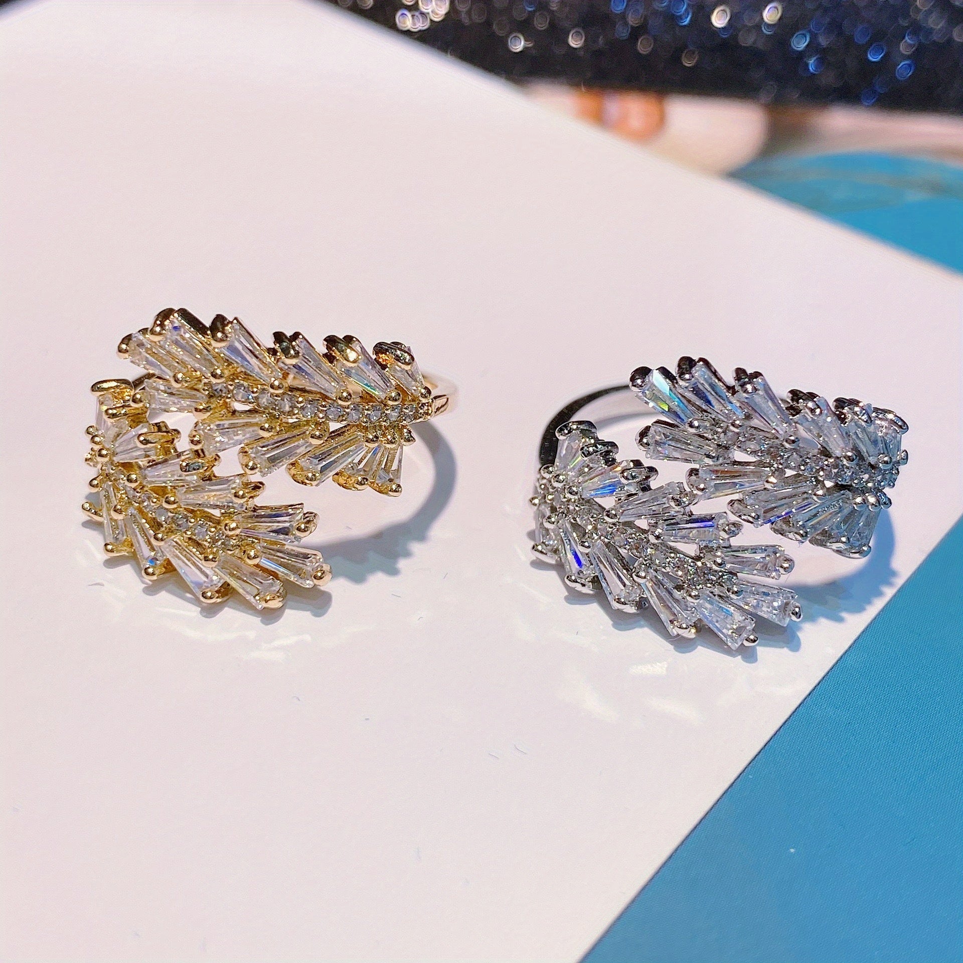 Shiny Elegant 925 Silver Plate Leaf Adjustable Opening Rings Zirconia Gifts for Men & Women Wedding Engagement Promise Bride Eternity Ring Anniversary Ring Birthstone Ring Ladies Romantic Holiday Gift