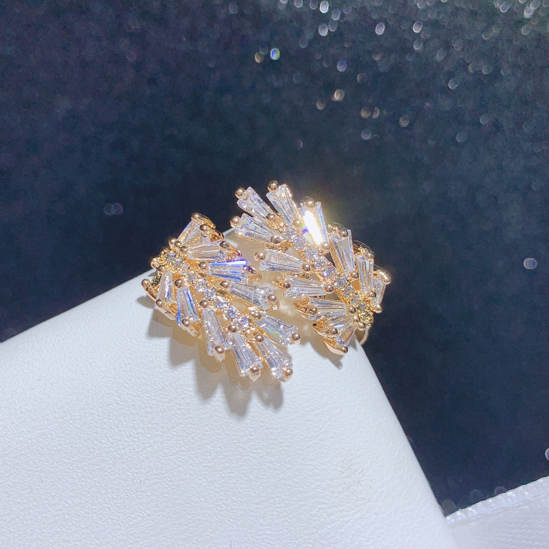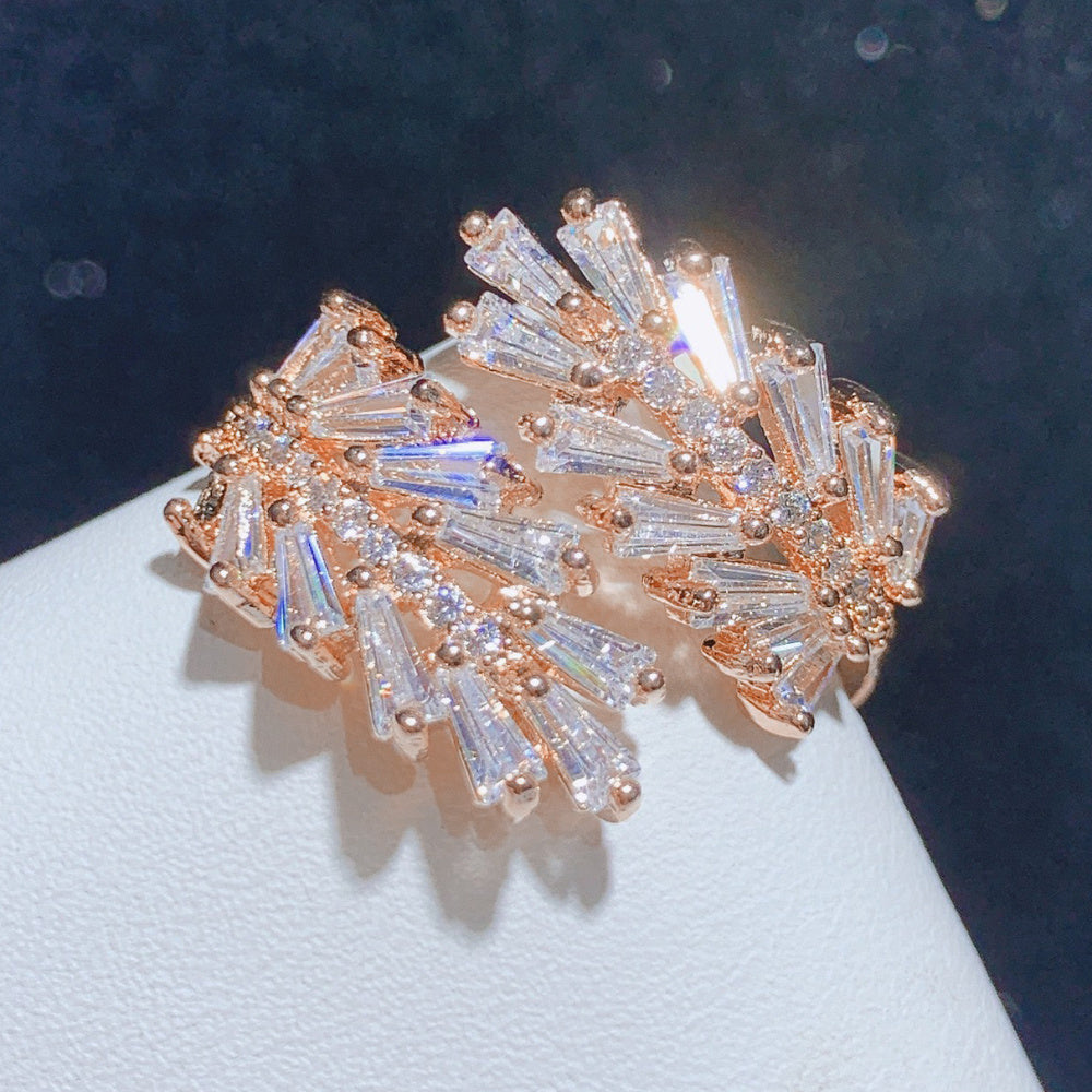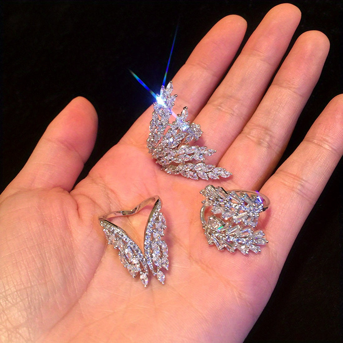 Shiny Elegant 925 Silver Plate Leaf Adjustable Opening Rings Zirconia Gifts for Men & Women Wedding Engagement Promise Bride Eternity Ring Anniversary Ring Birthstone Ring Ladies Romantic Holiday Gift