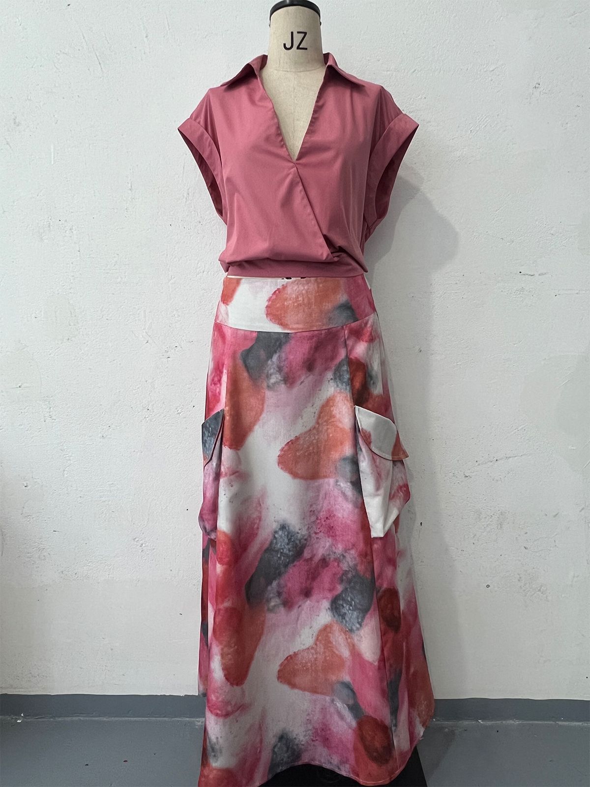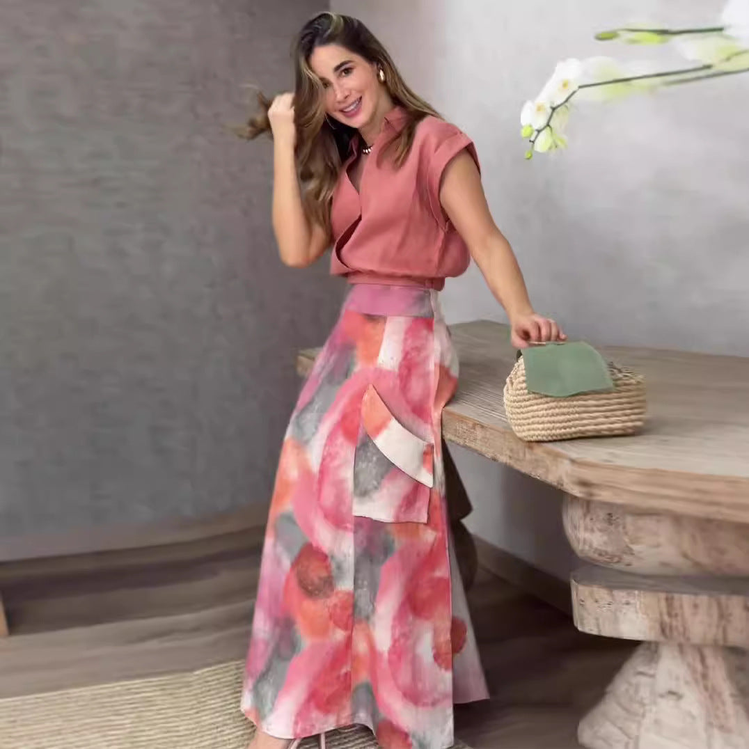 Shirt Short Sleeve Top Nipped Waist Skirt Two Piece Set Women Clothes