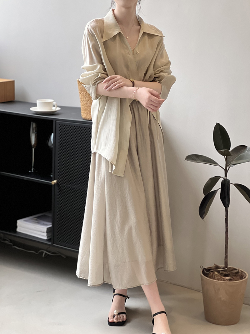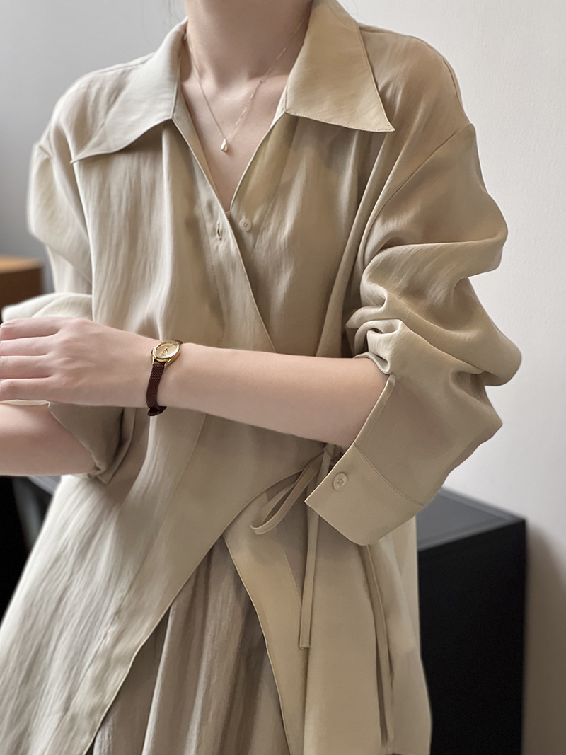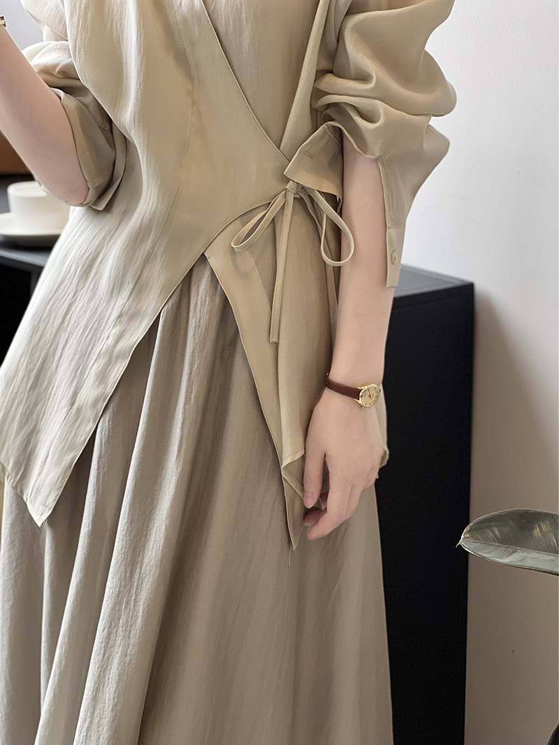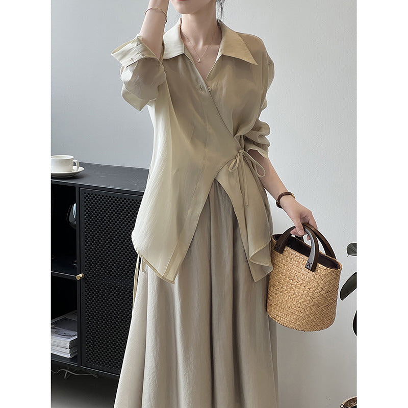 Shirt Skirt Women Summer Thin Lace up Shirt Skirt Two Piece Set
