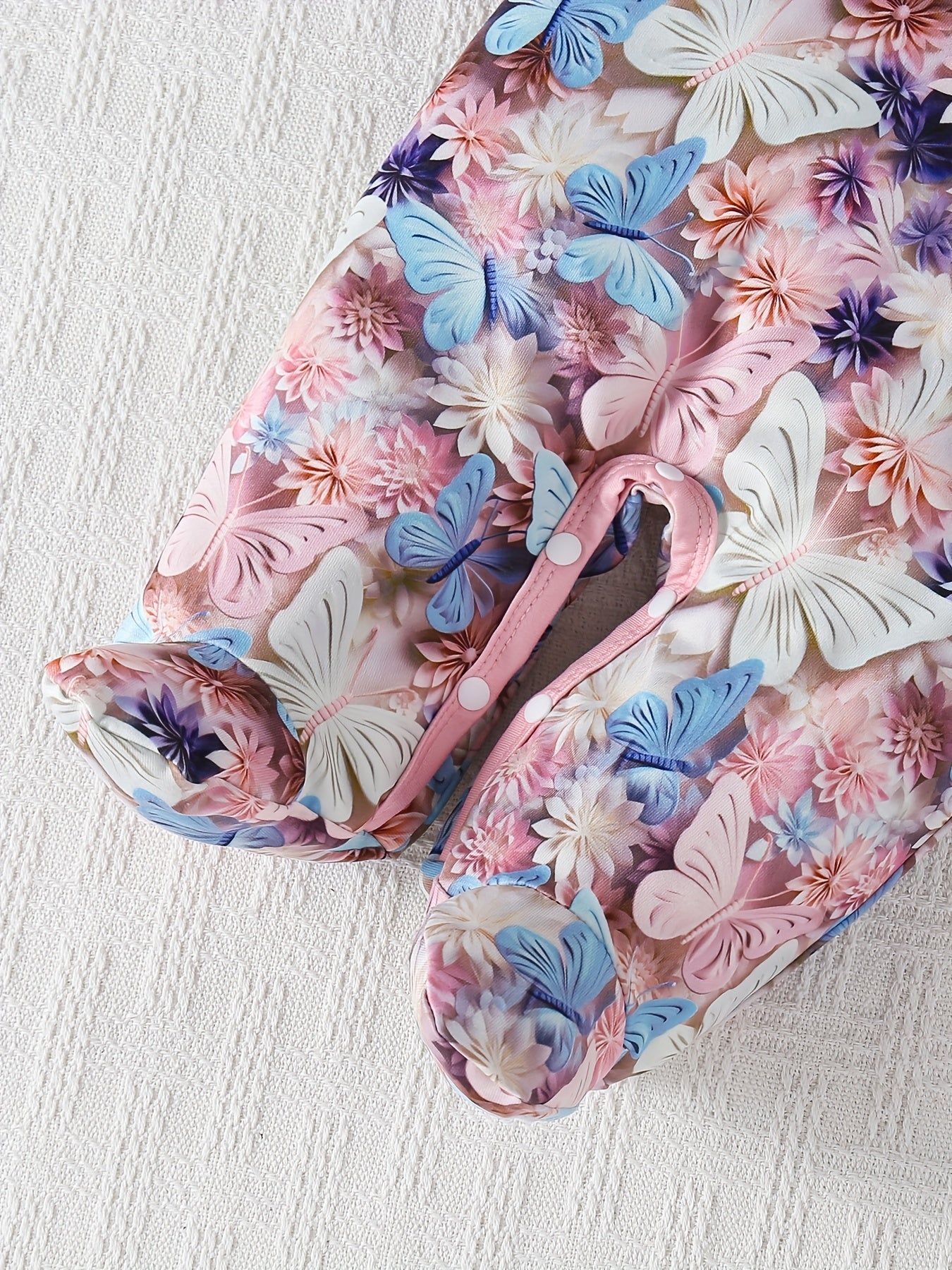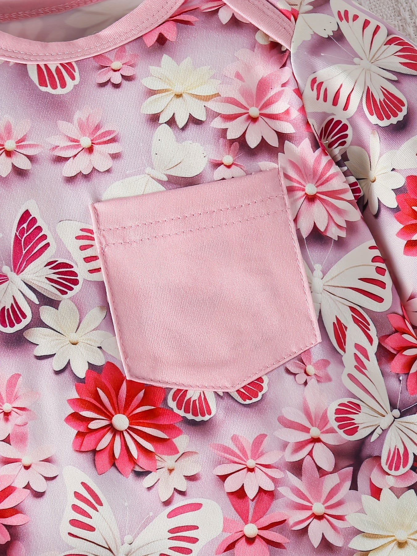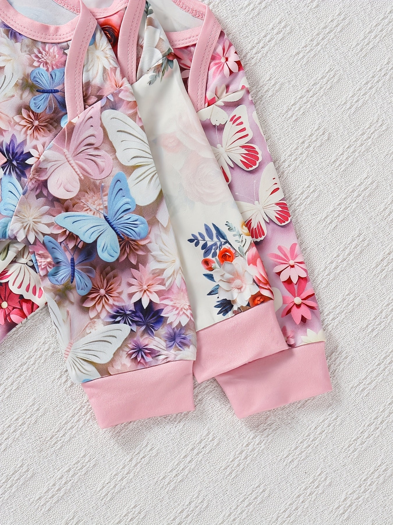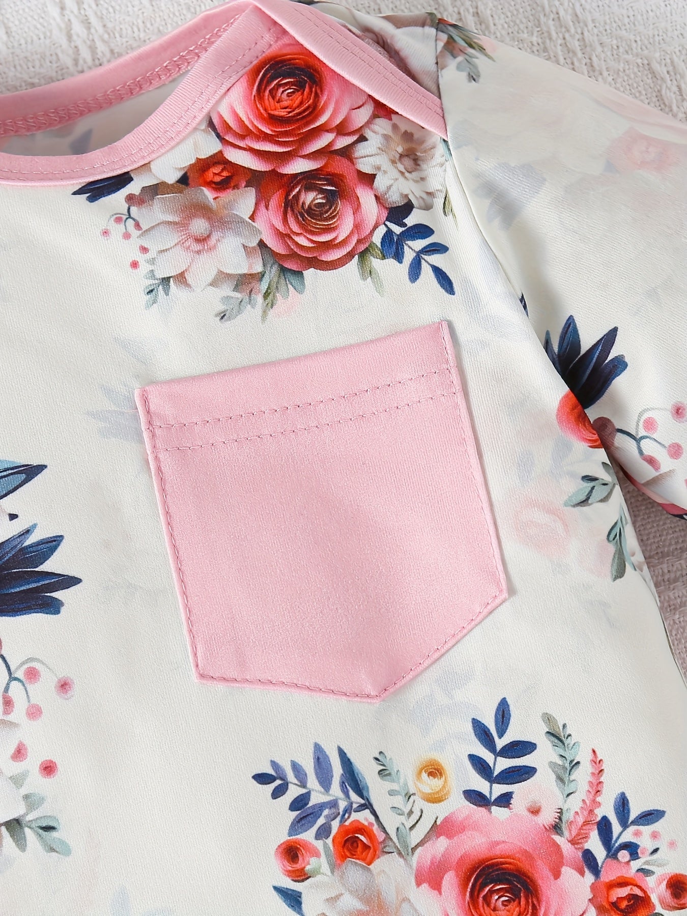 SHIXUANBAOBEI Newborn Infant 9pcs Long-Sleeve Footed Romper Set, Full-Print Embroidery Art with Floral and Butterfly Patterns, Front Center Pocket with Button Closure and Contrast Cuff Hem, Includes Bunny Hat and Bib, Soft and Comfortable Clothing, Essent
