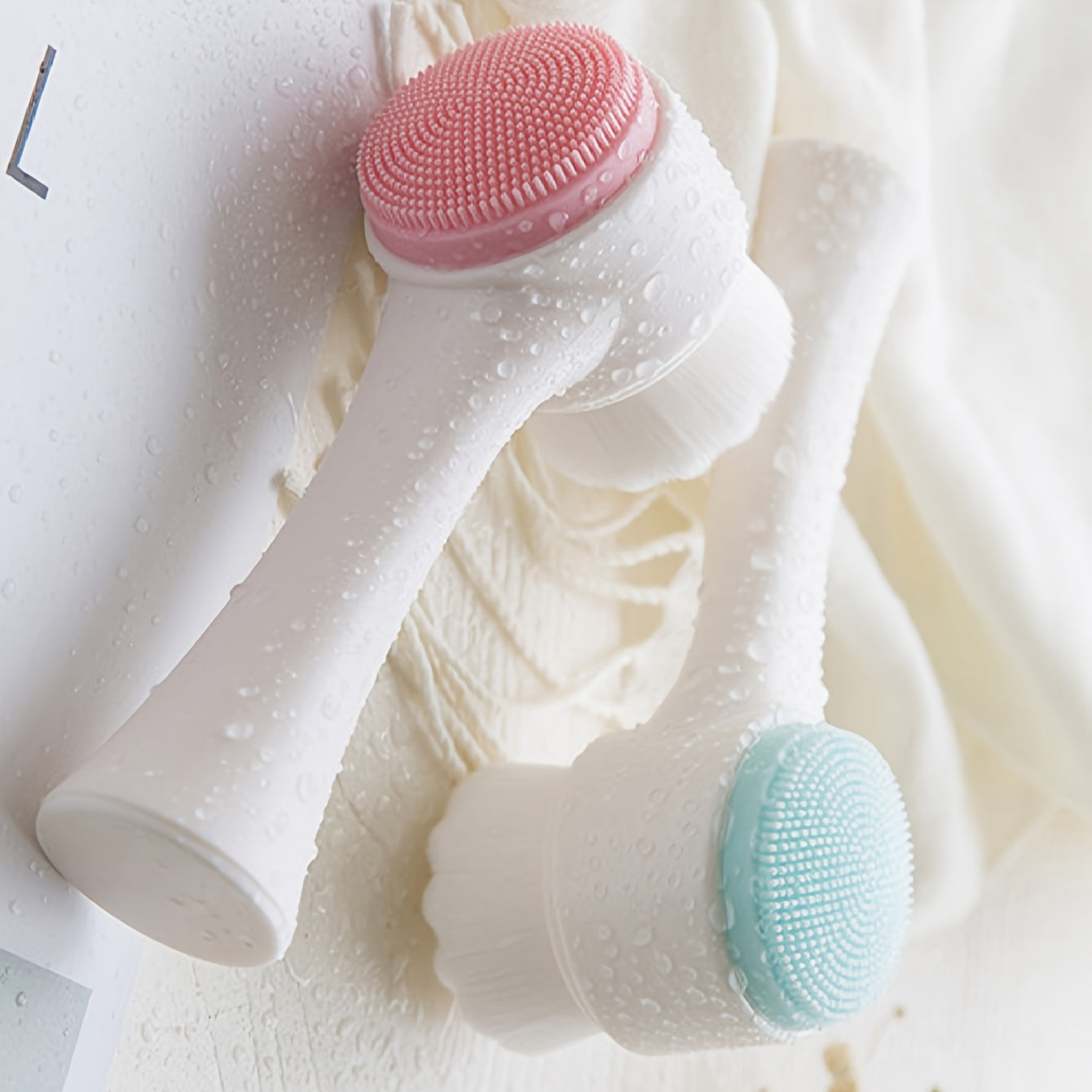 [Silicone Face Brush] 2pc Double Side Silicone Face Wash Brush Manual Cleansing Face Massage Brush Color Random