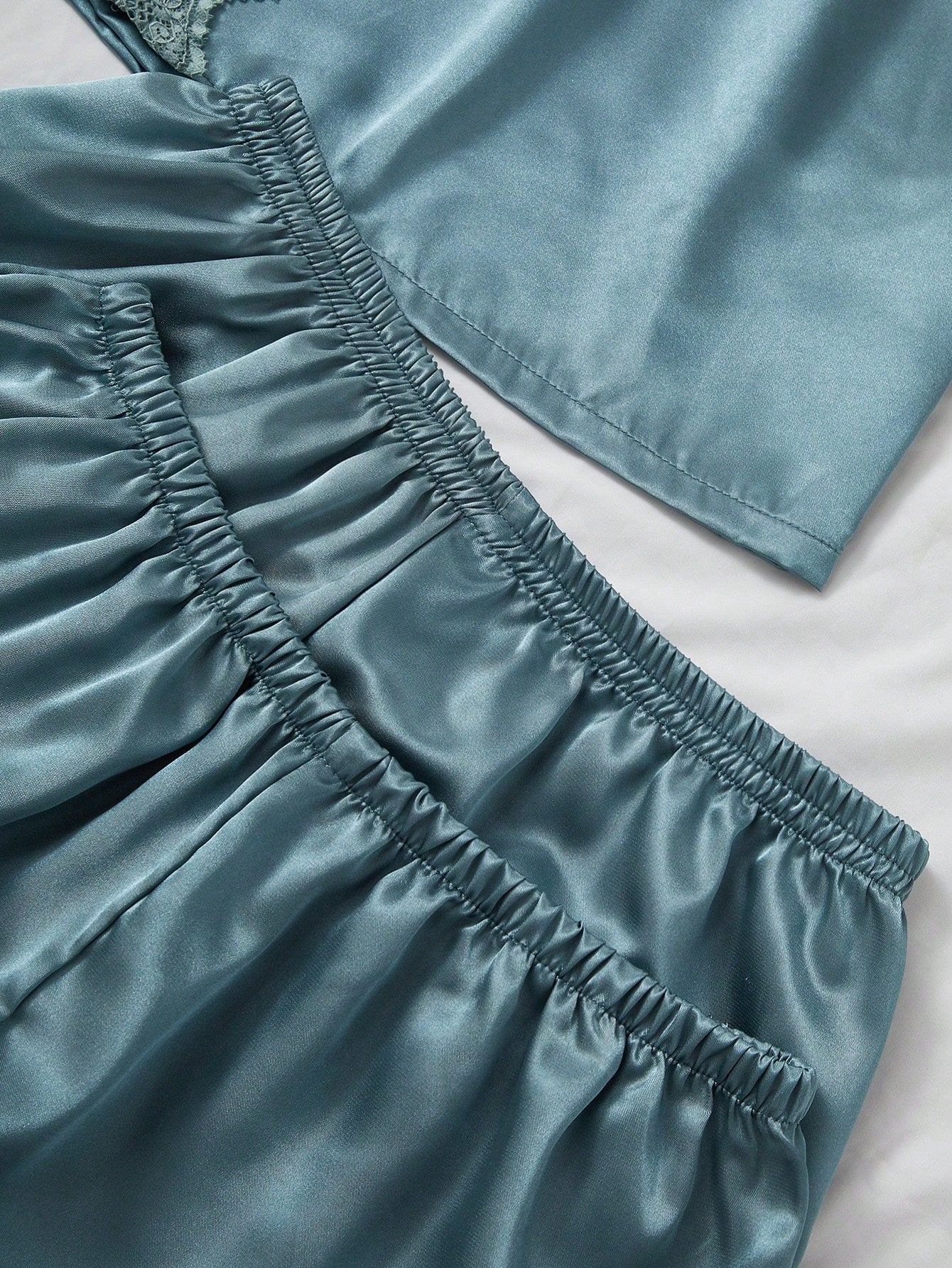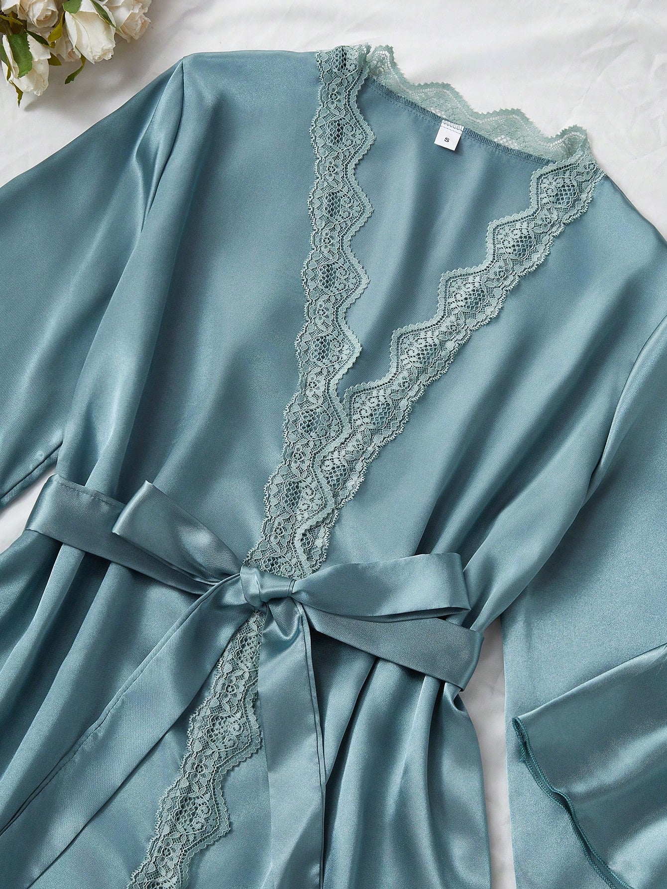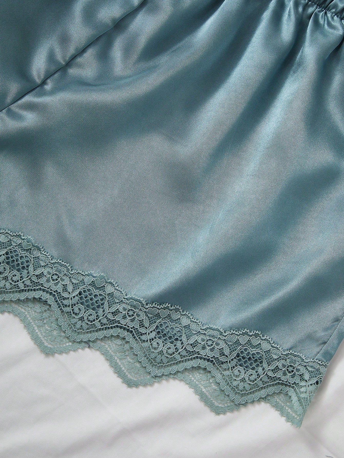 SilkySpell 4pcs Contrast Lace Faux Silk Camisole, Shorts, Pants And Robe Set