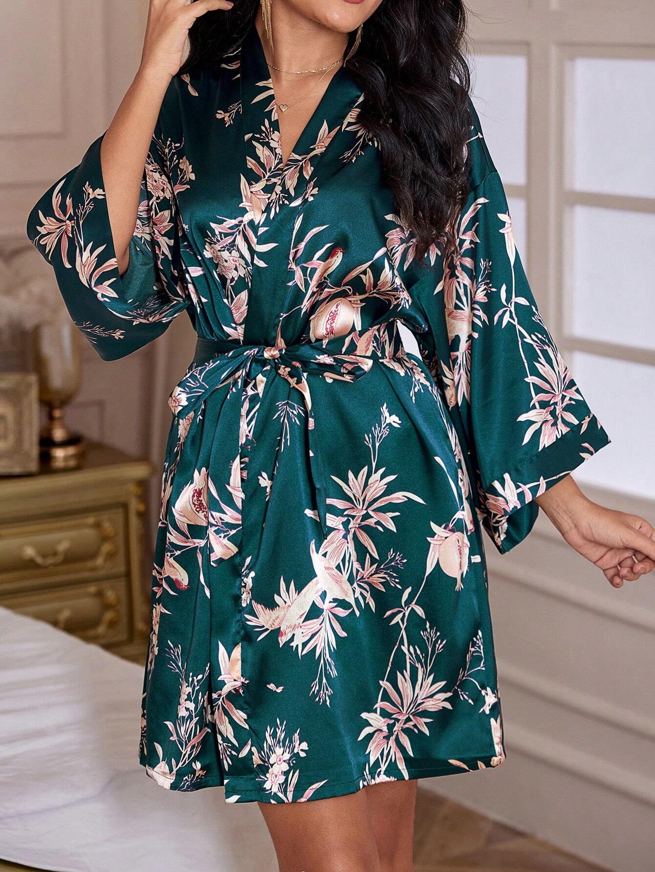 SilkySpell Drop Shoulder Belted Satin Lounge Robe