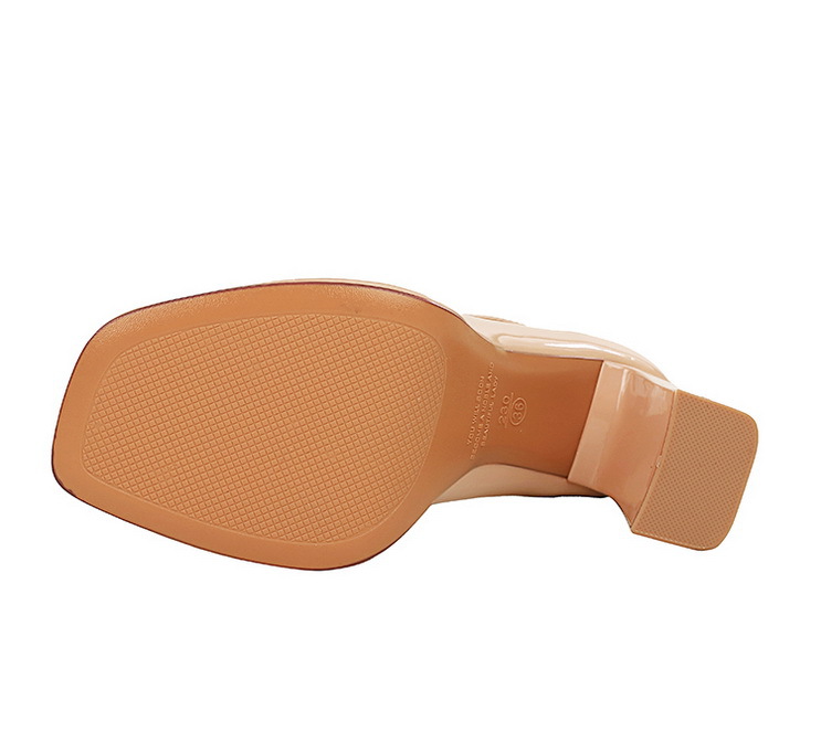 Simple Thick Heel Super High Heel Waterproof Platform Patent Leather Square Toe Ankle Strap Shoes High Heels