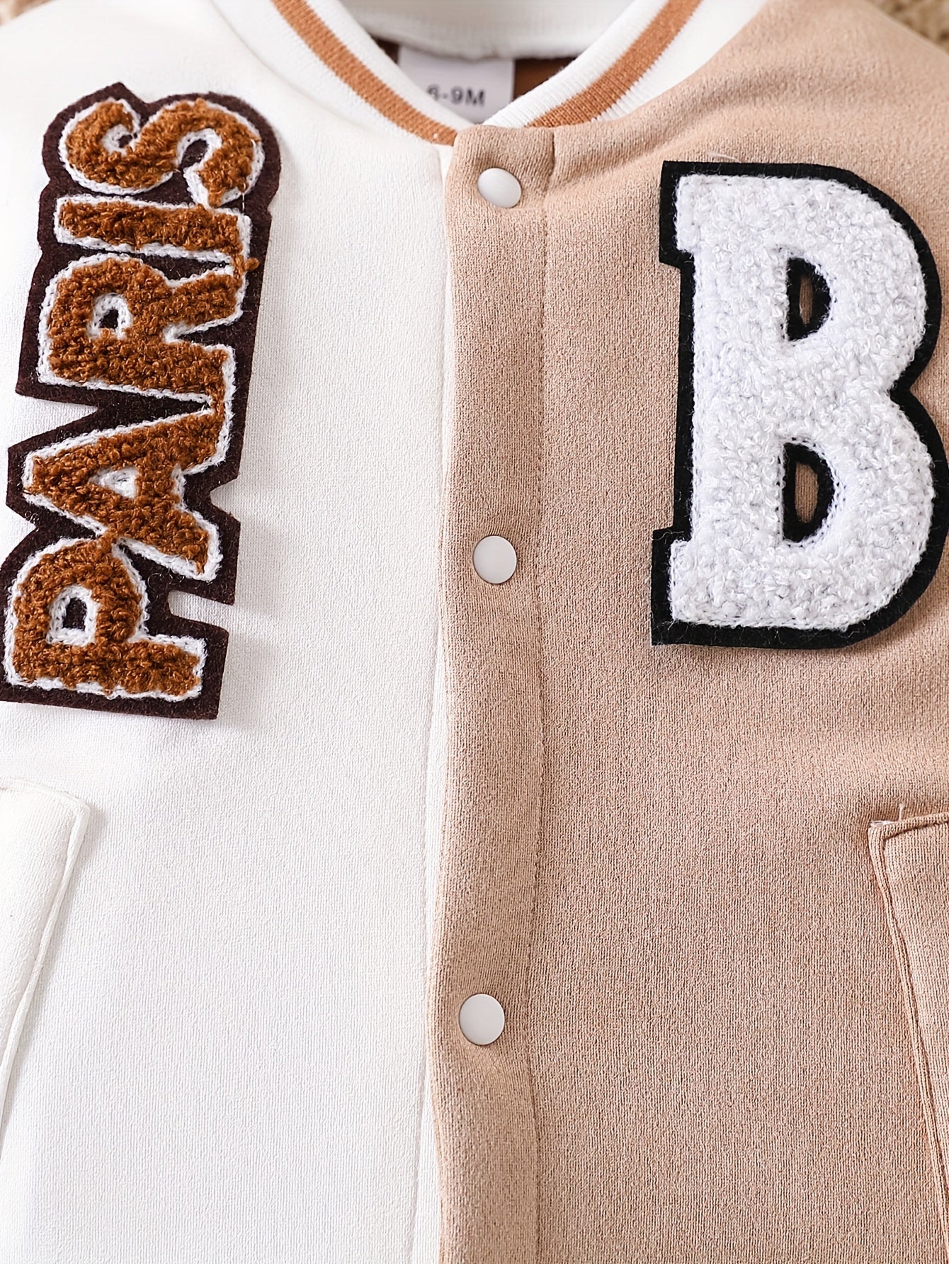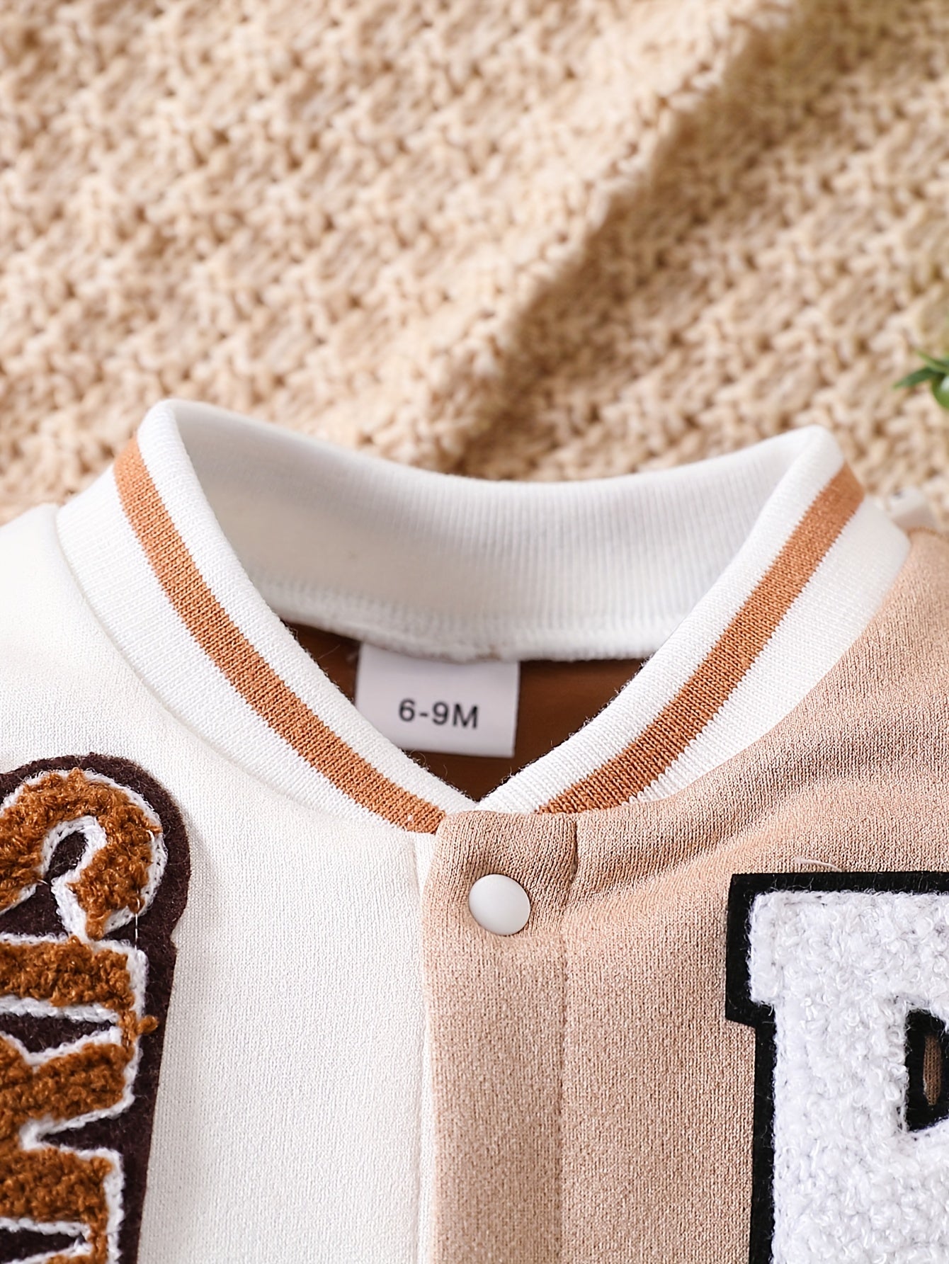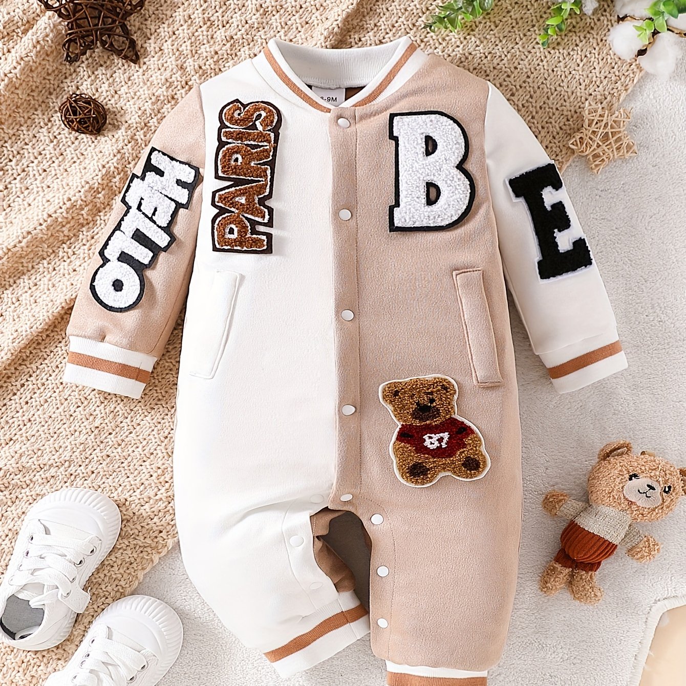 Single Pack Boys' Fashionable Embroidered Bodysuit in Ribbed Corduroy Fabric for Autumn and Winter, Perfect for Outdoor