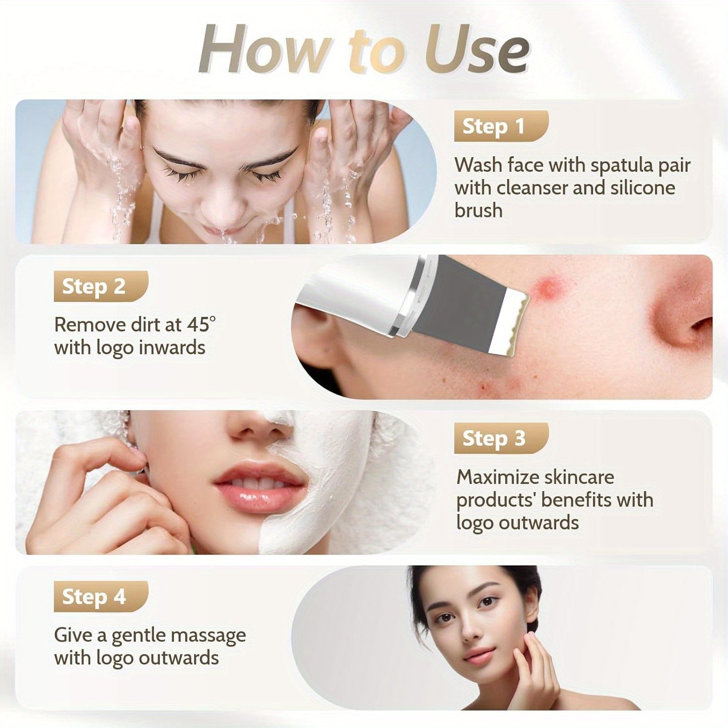 Skin Scrubber Face Spatula, Face Spatula Blackhead Remover for Cleansing Skin Spatula, 4 in 1 Pore Extractor with USB Charger