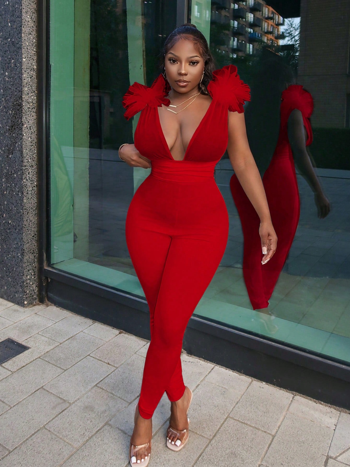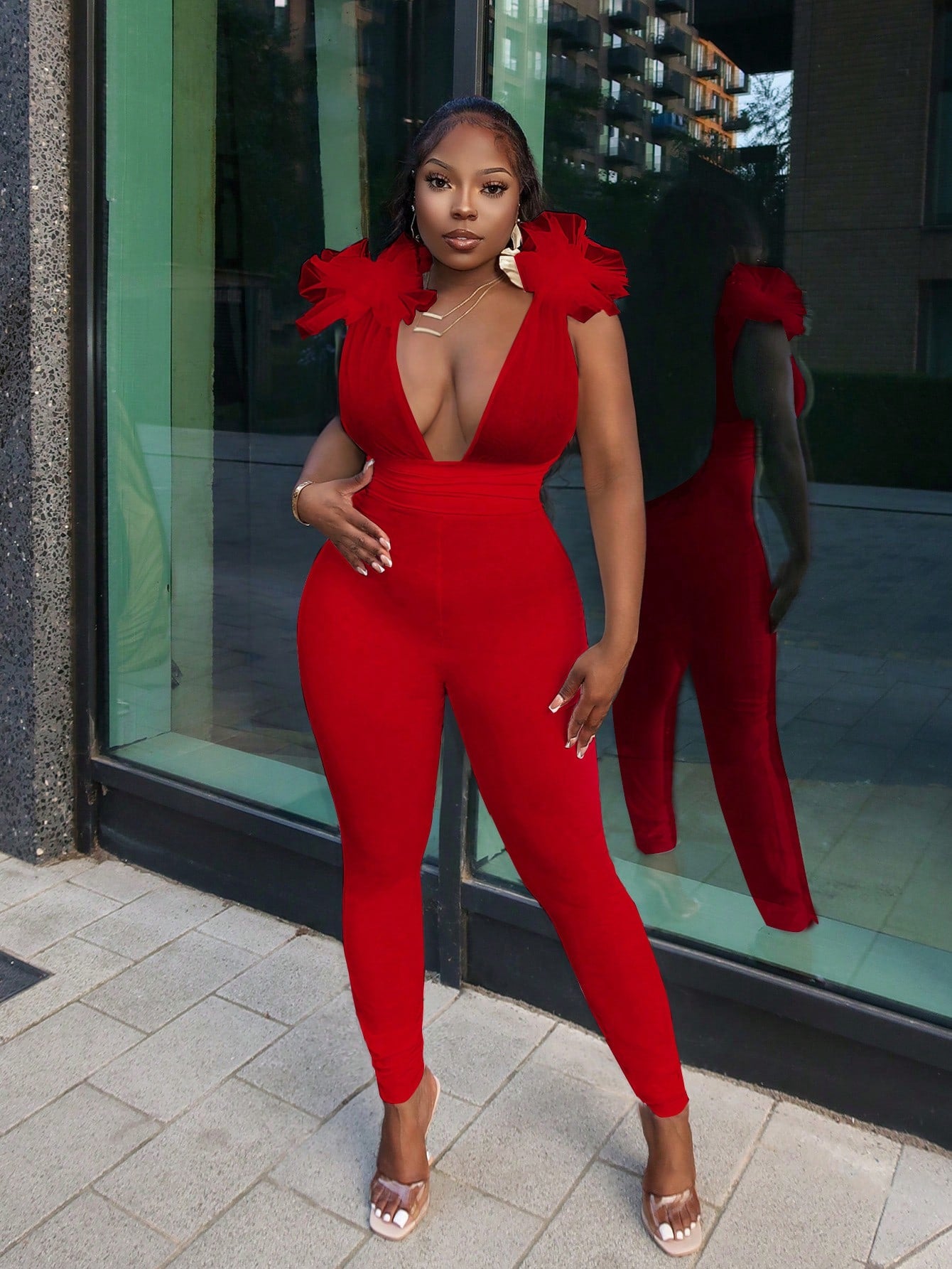 Slaydiva 2024 New Sexy Elegant White Sleeveless Mesh Panel Exaggerated Shoulder Bandage Jumpsuit, Perfect For Date & Holiday
