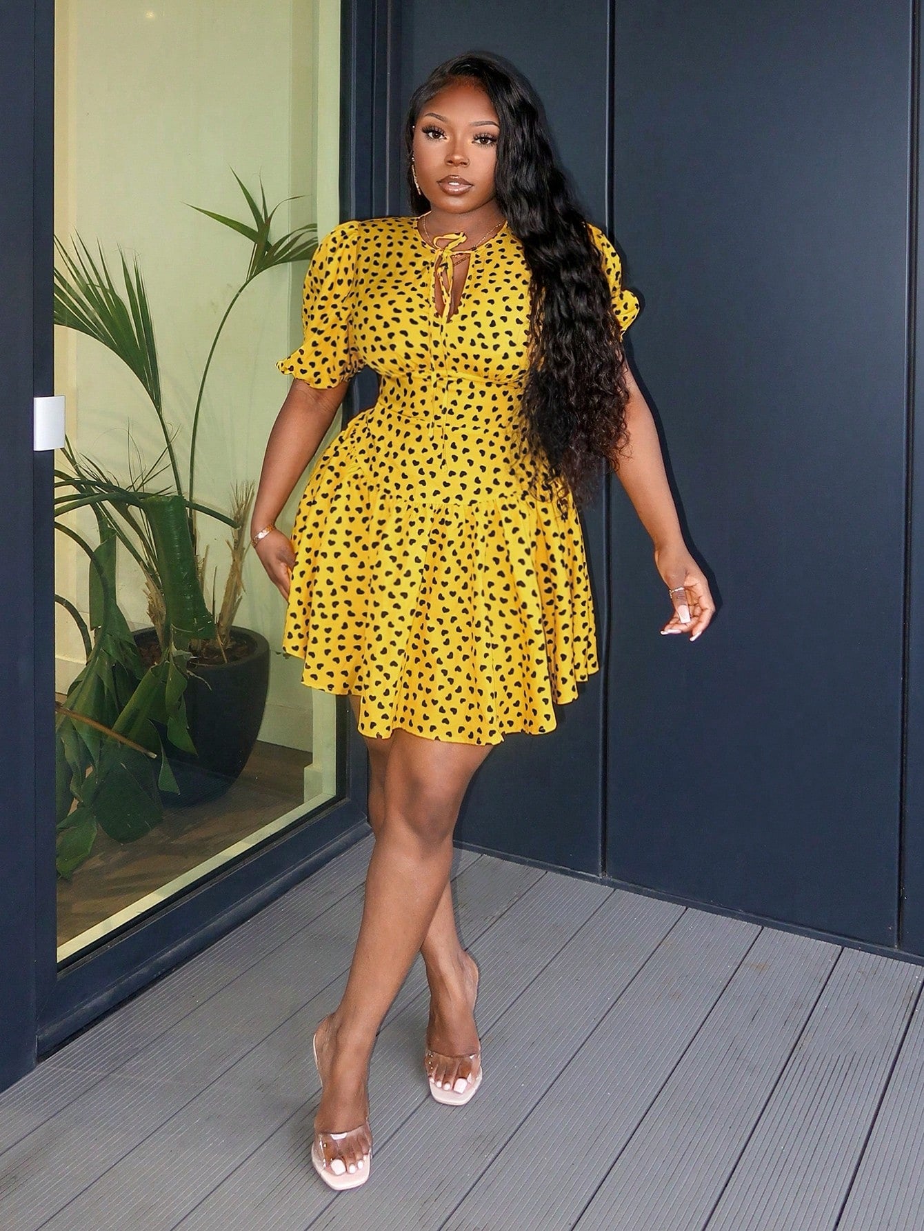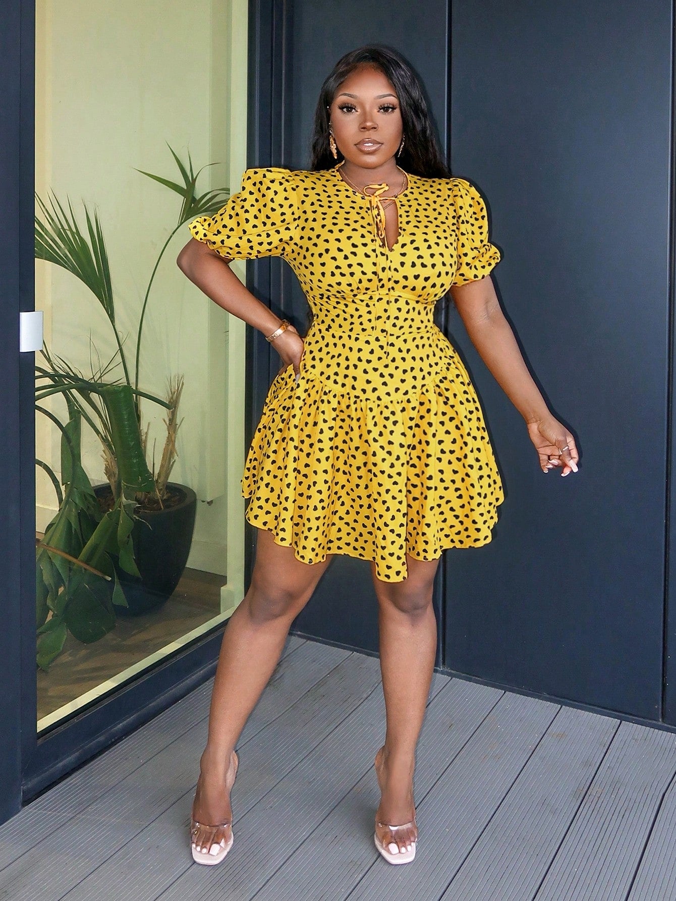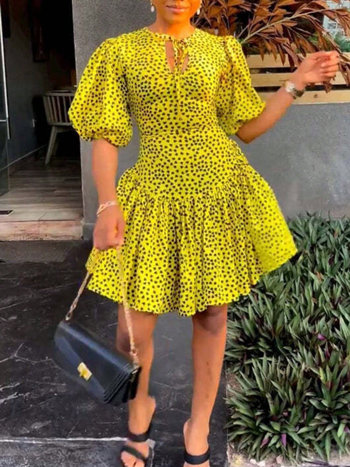 Slaydiva New Style Short Slim-Fit Umbrella Dress Dress With Puff Sleeves, Perfect For Vacation And Leisure Activities -Z,Polka Dot Dress