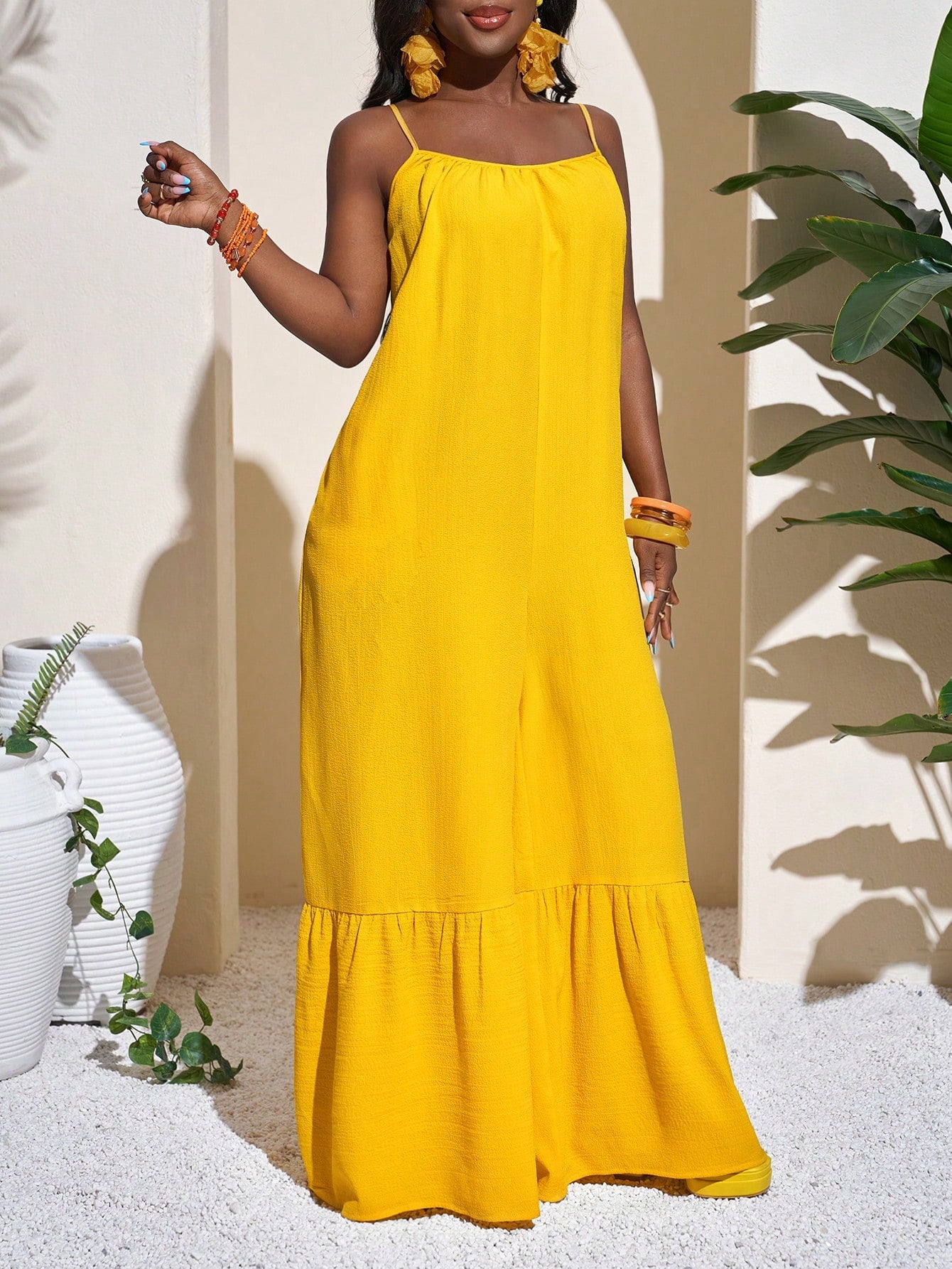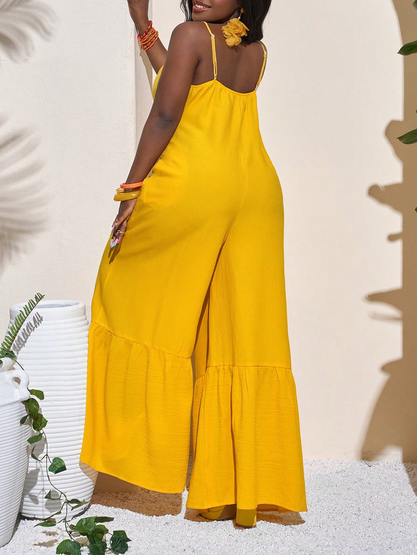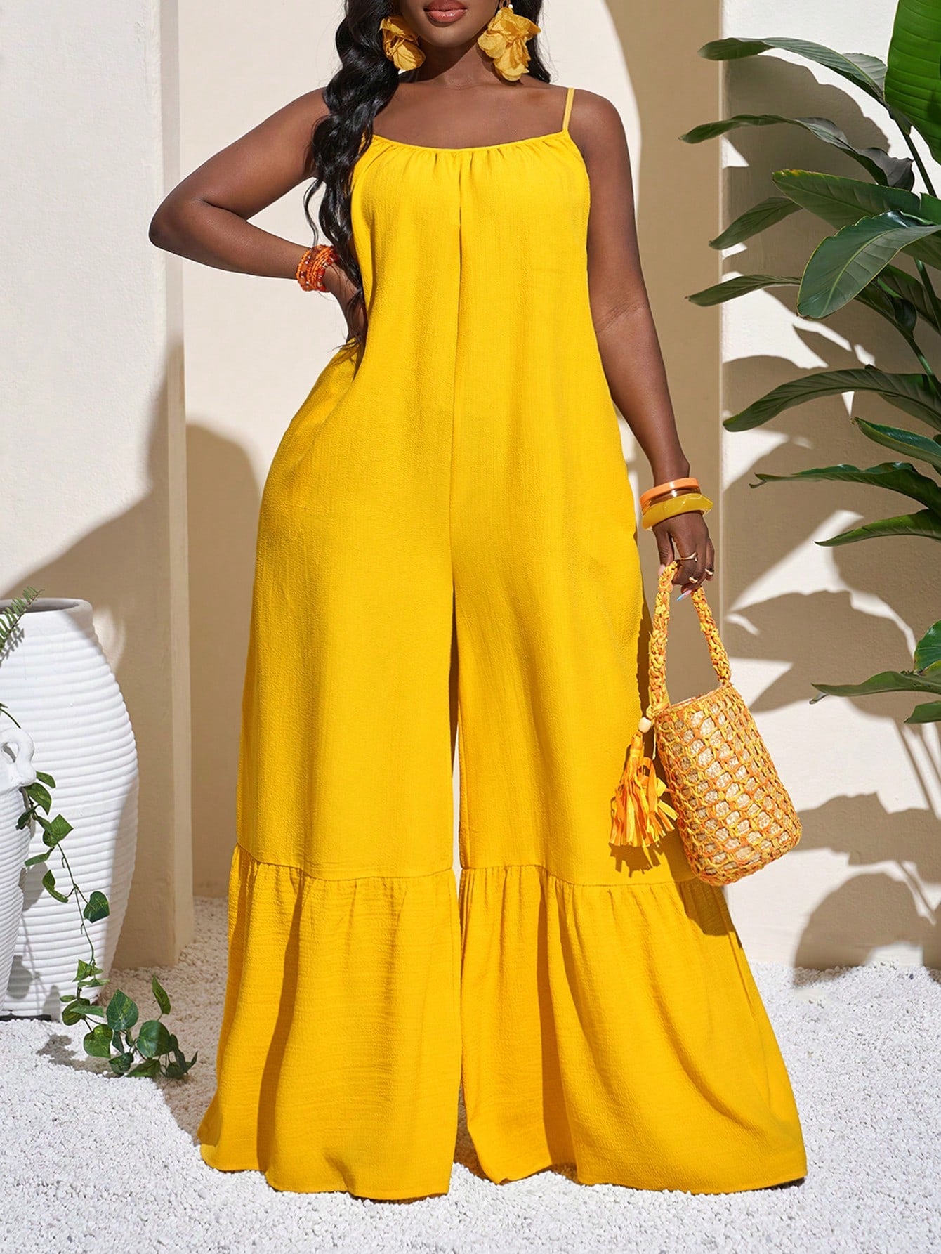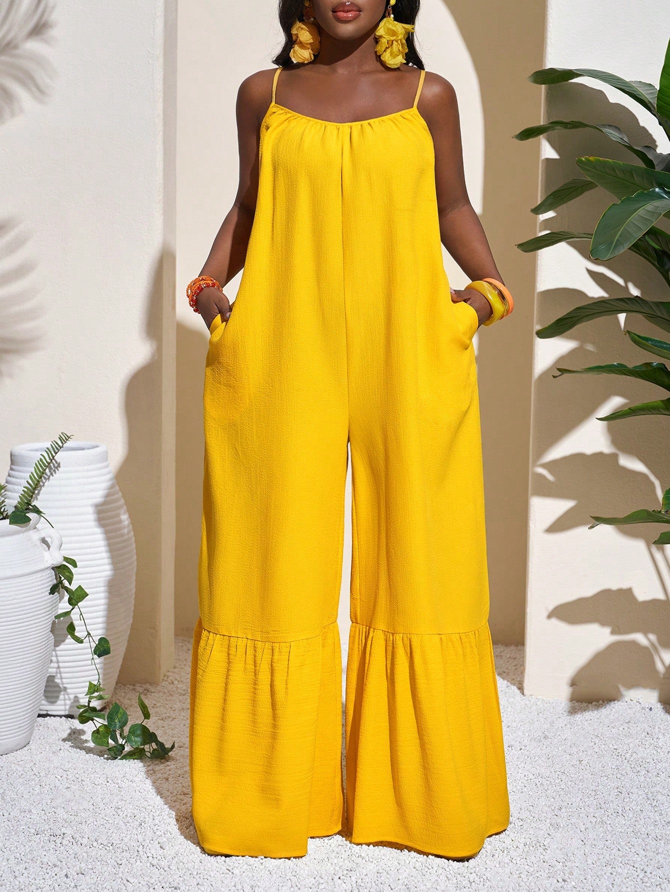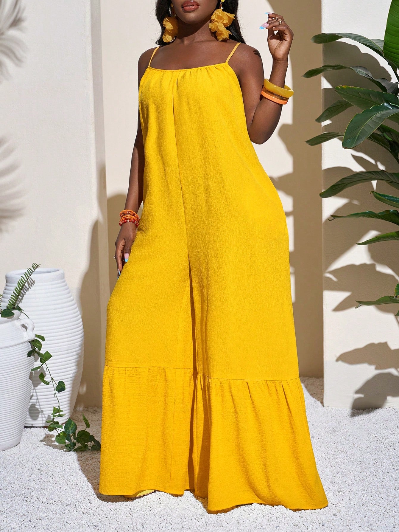 Slaydiva Solid Color Casual Jumpsuit, Minimalist Fashion Everyday Wear, Spring/Summer