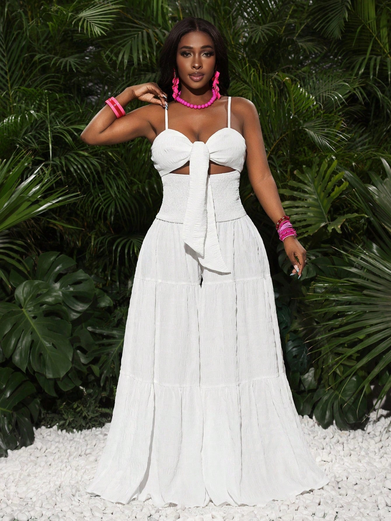 Slaydiva Summer Casual Holiday Strappy Flounced Wide Leg Jumpsuit - A