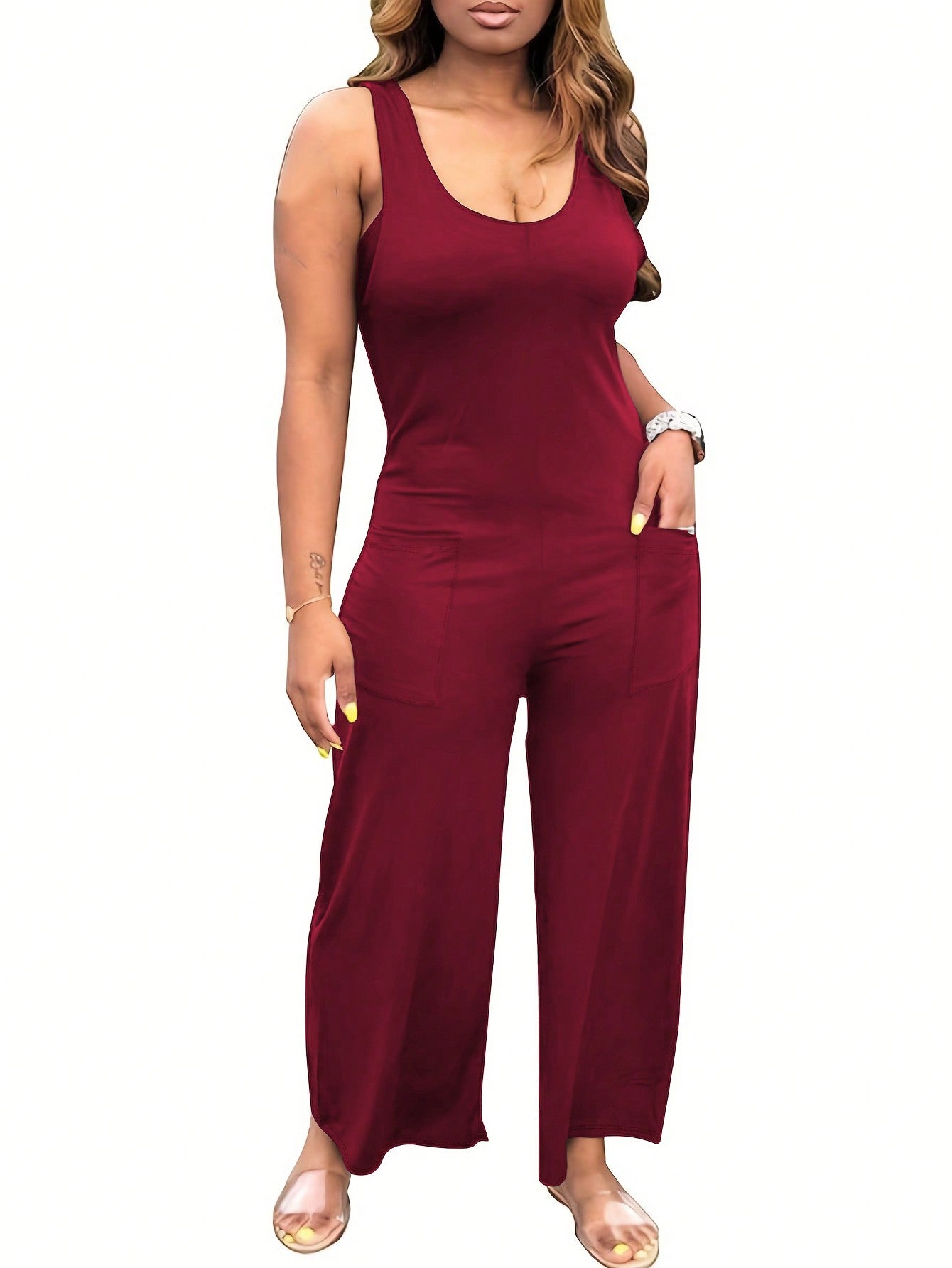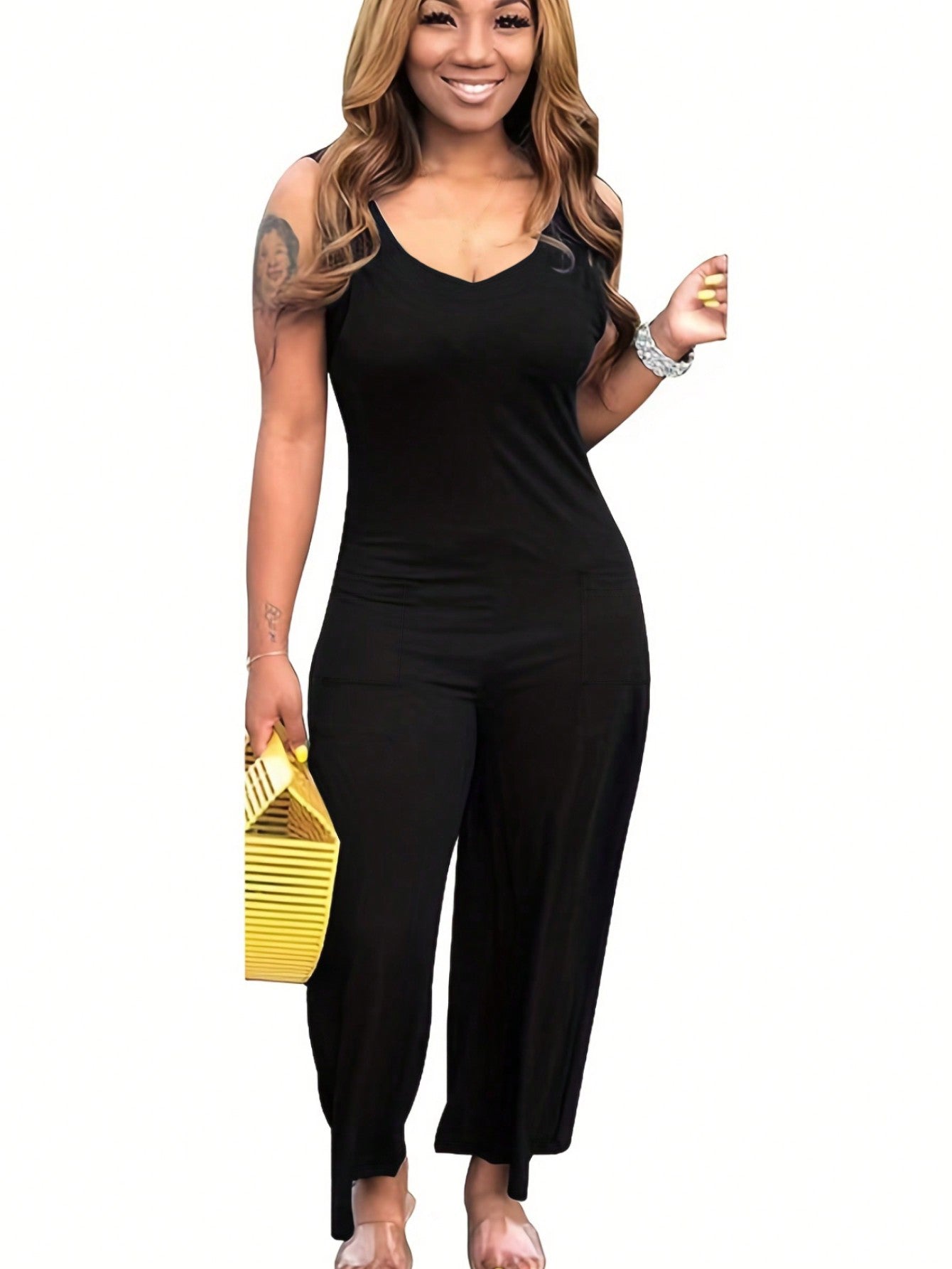 Slayr Women's Solid Color Sleeveless Romper With Double Pockets