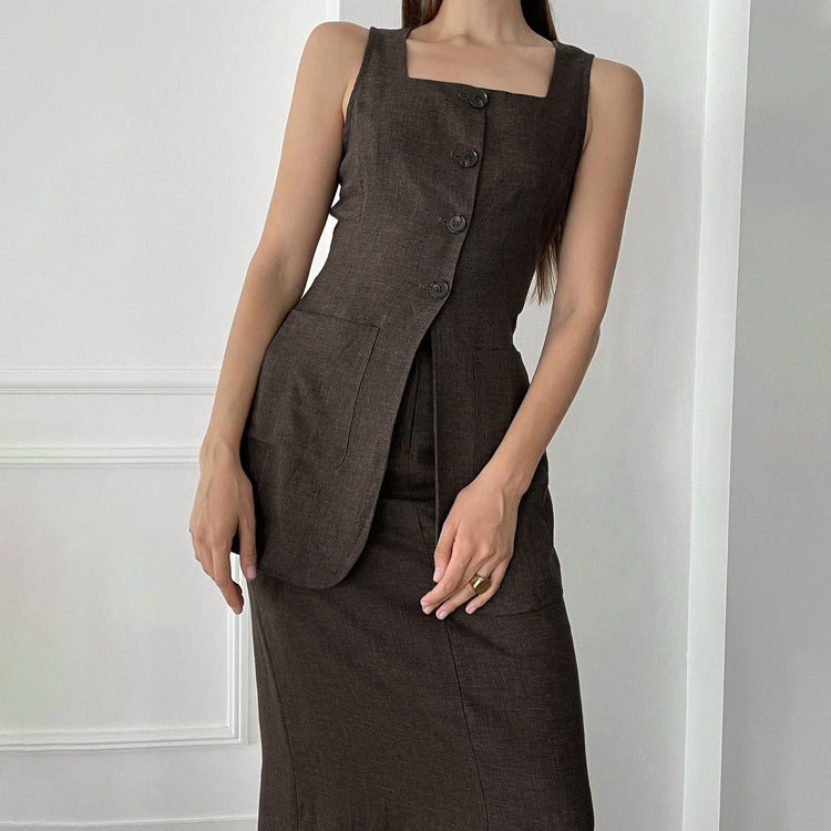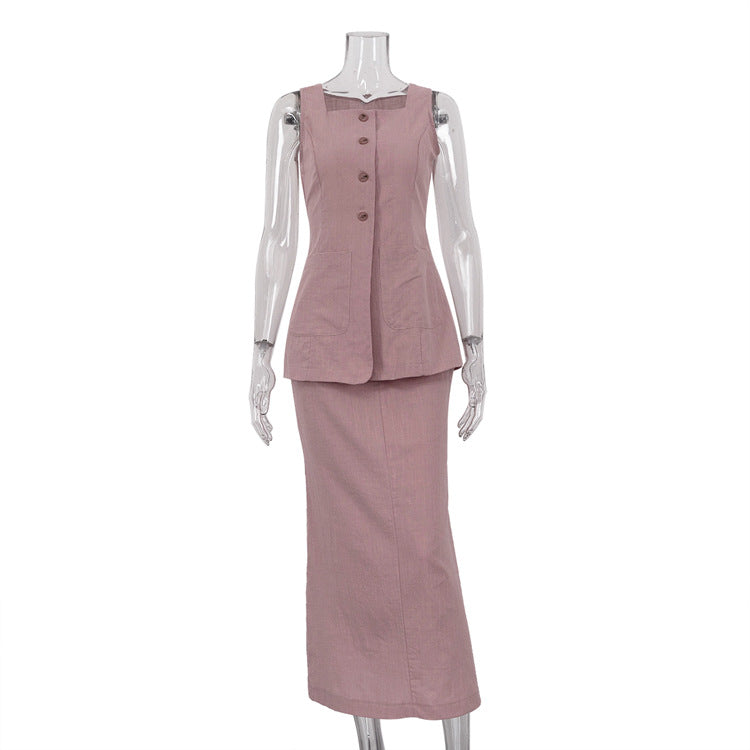 Sleeveless Waistcoat Vest Skirt Set Summer Two Piece Set