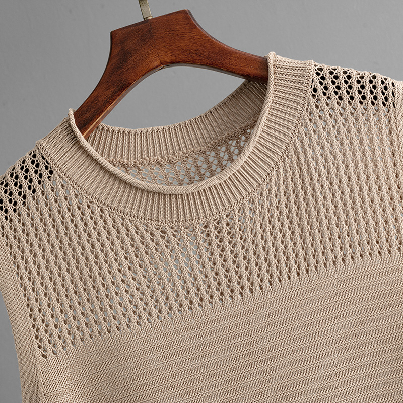 Slim Hollow Out Cutout Sleeveless Vest Summer Knitted Slit Skirt Two Piece Set