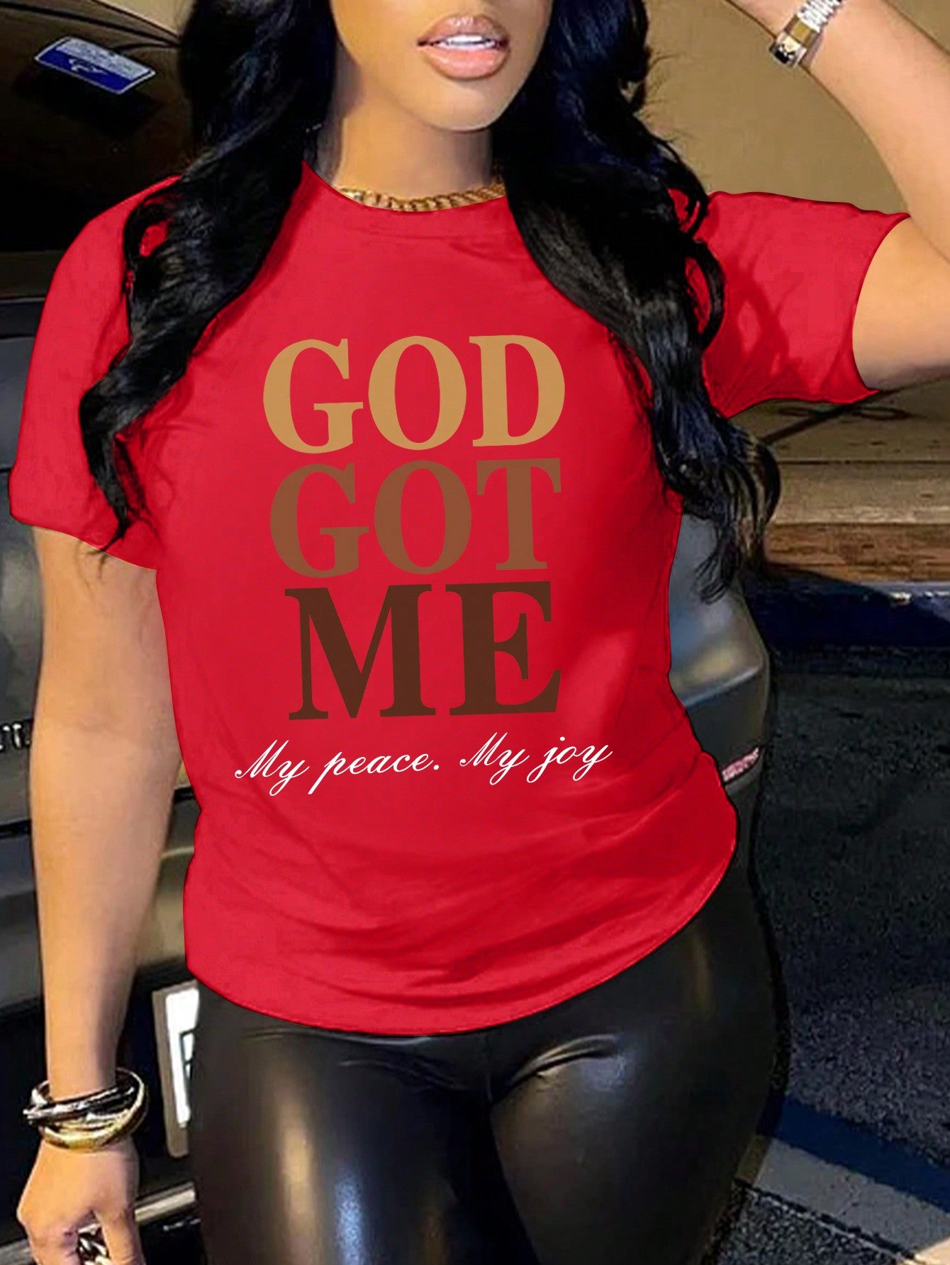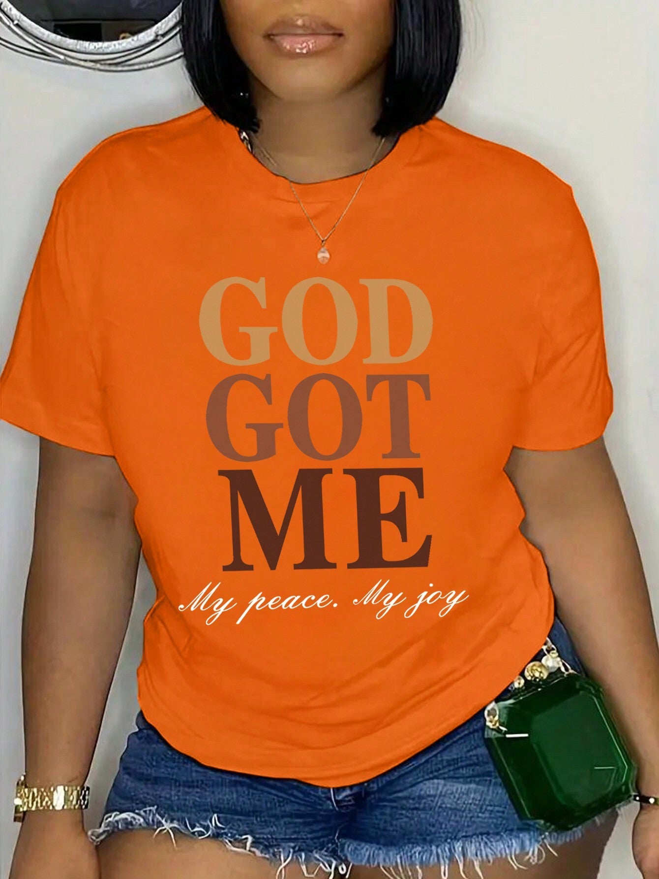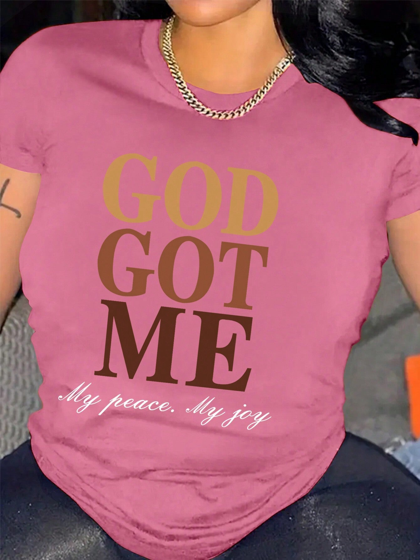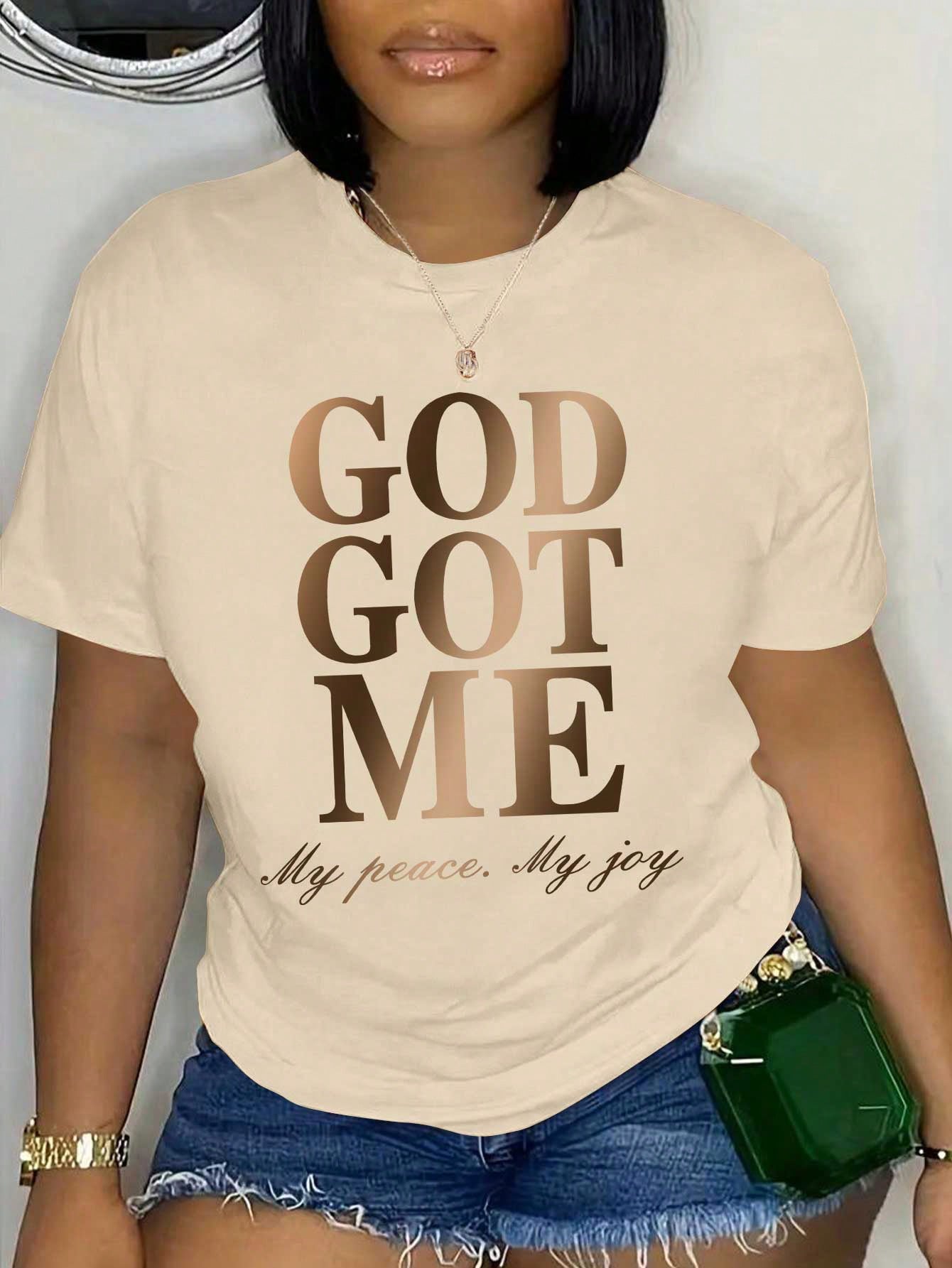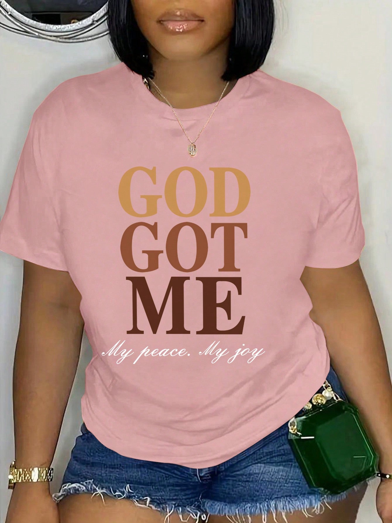 Slogan Graphic Drop Shoulder Tee GOD GOT ME My Peace My Joy Graphic Tees Women Tops