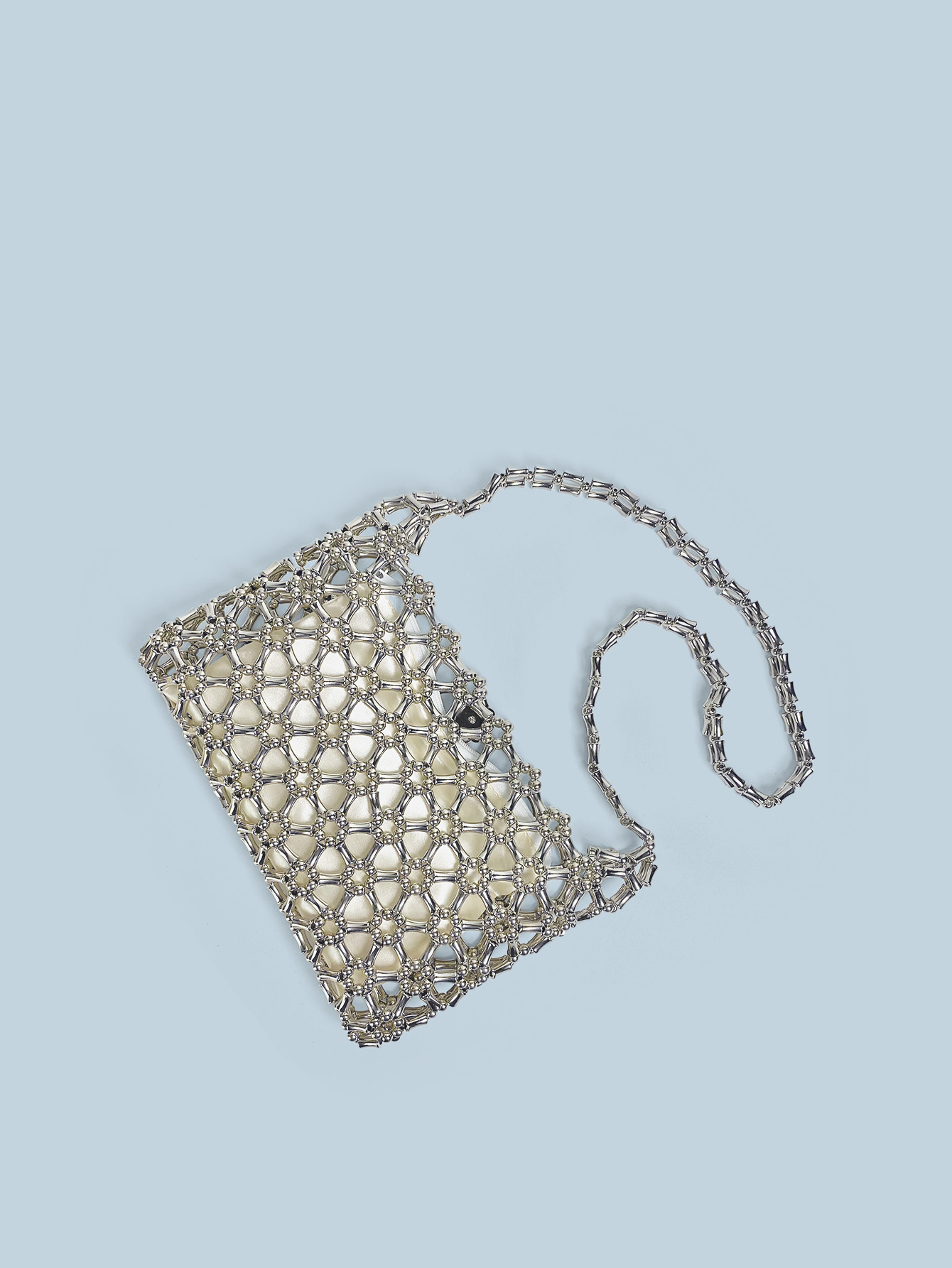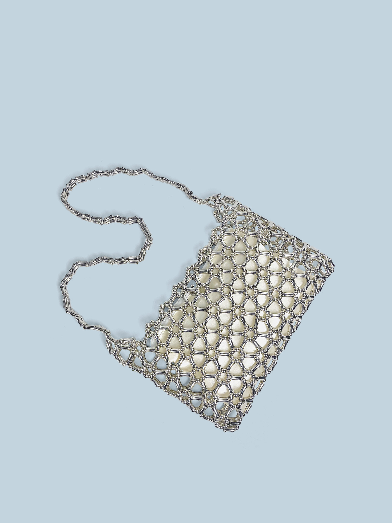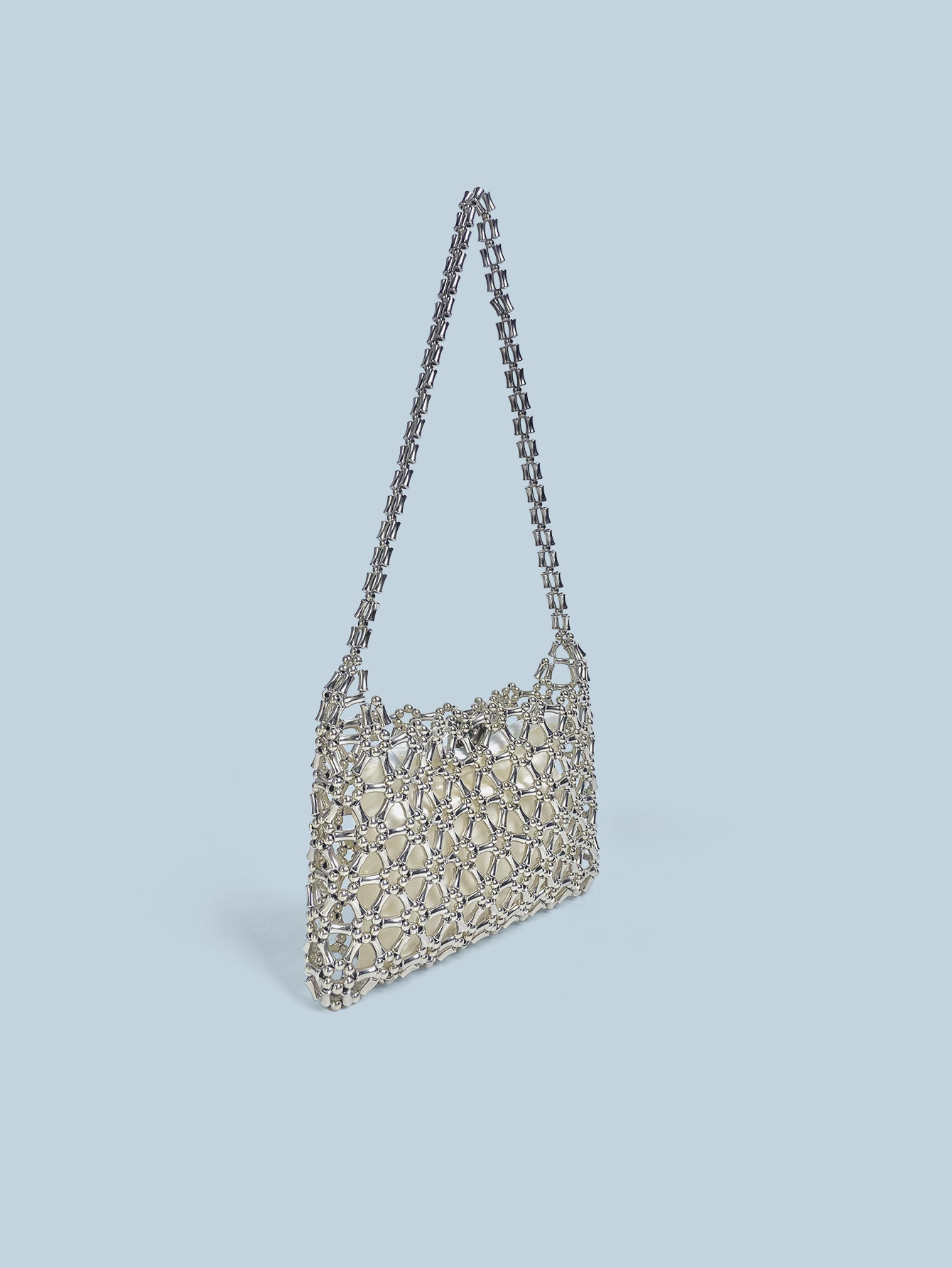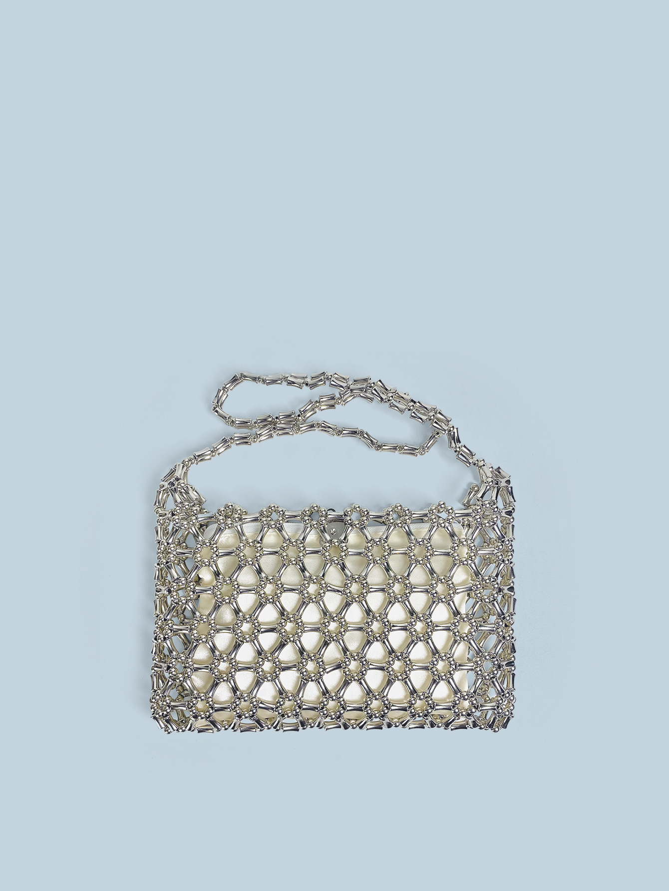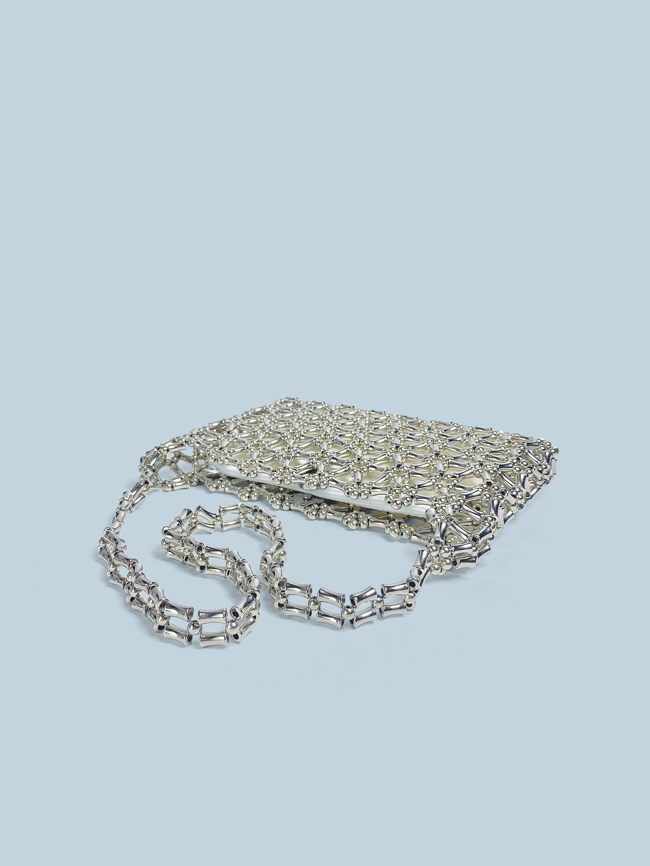 Small Capacity Bamboo Beaded Shoulder Bag Fresh Shiny Handmade Beaded Weaving Hollow Out Cutout Finished Bag