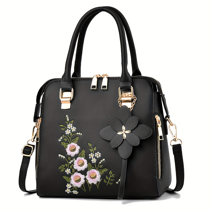 Small Women'S Fashion Purse, Stylish Embroidered Handbag, Elegant Floral Design, Top Handle with Crossbody Strap