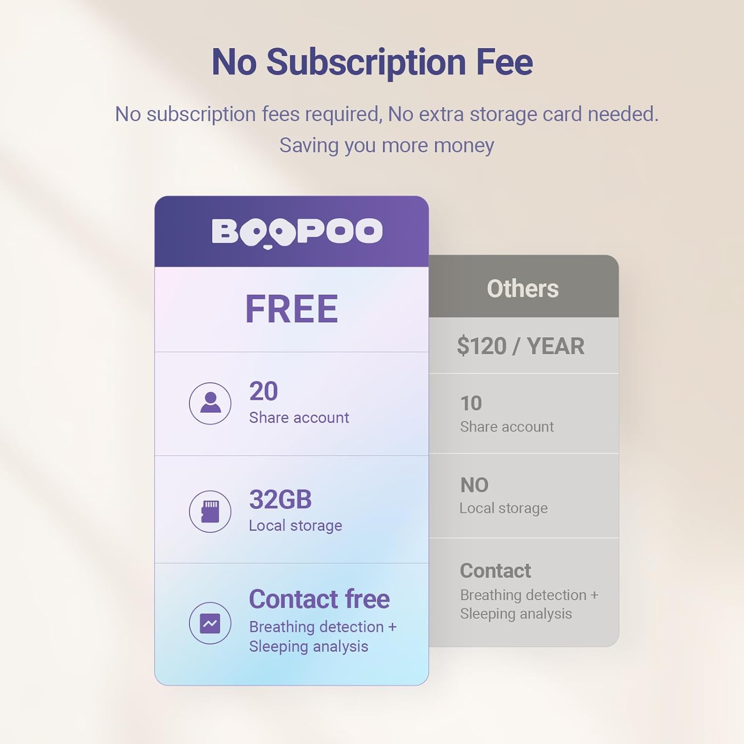 【No Monthly Fees & 32GB Local Storage】 The BOOPOO Smart Baby Monitor is available for a one-time purchase, granting you immediate access to all its excelent features without any hidden fees. Enjoy peace of mind with the built-in 32GB local storage, ensuring the security of your data without unexpected charges.
