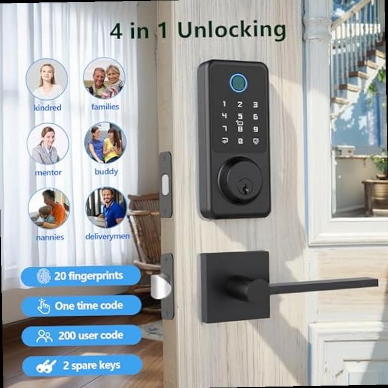 Smart Door Lock Set Fingerprint Door Lock with Lever Handle Black Keyless Entry Lock with App Keypad Deadbolt for Home
