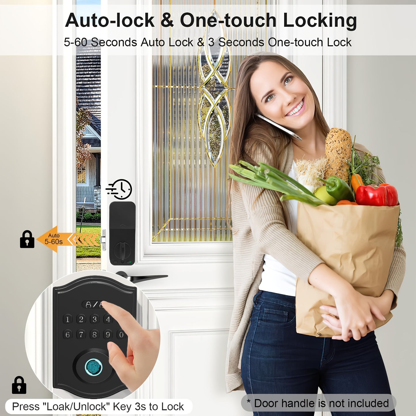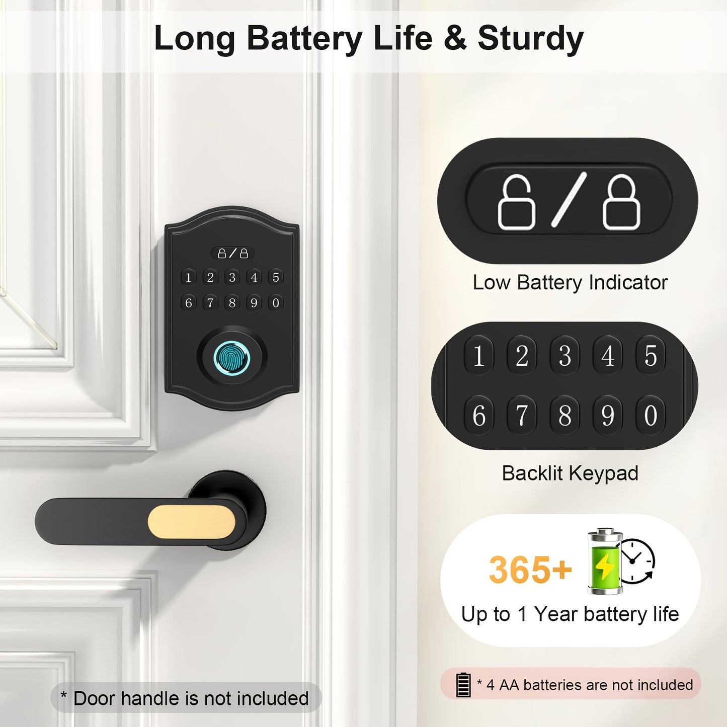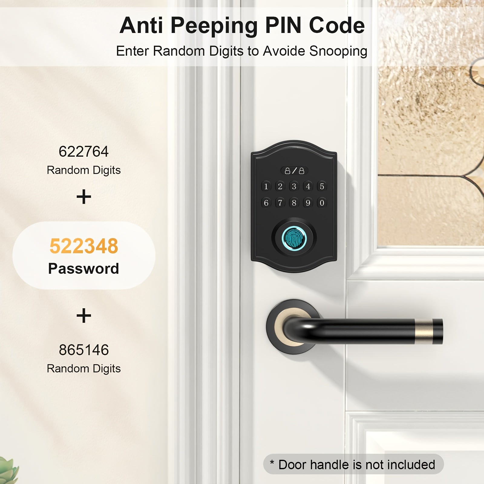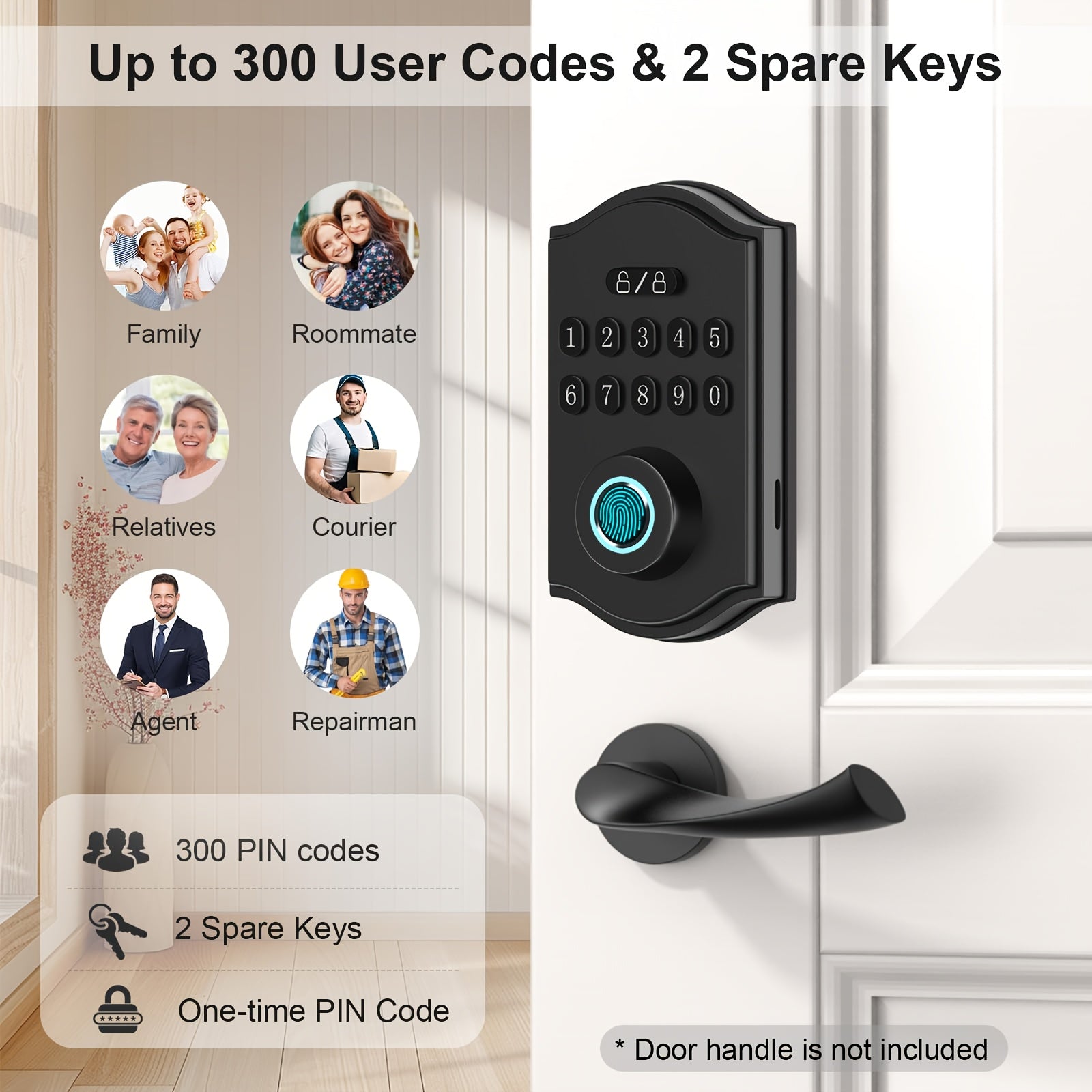 Smart Fingerprint Lock with Biometric Access Control - 50 Fingerprint & 300 Anti-Peeping Code Entry, Wireless App-Controlled, Low Battery Alarm, Easy Install, Alloy Security Door Lock for Home, Hotel, Garage, Rental Properties (Battery-Powered, No Wiring