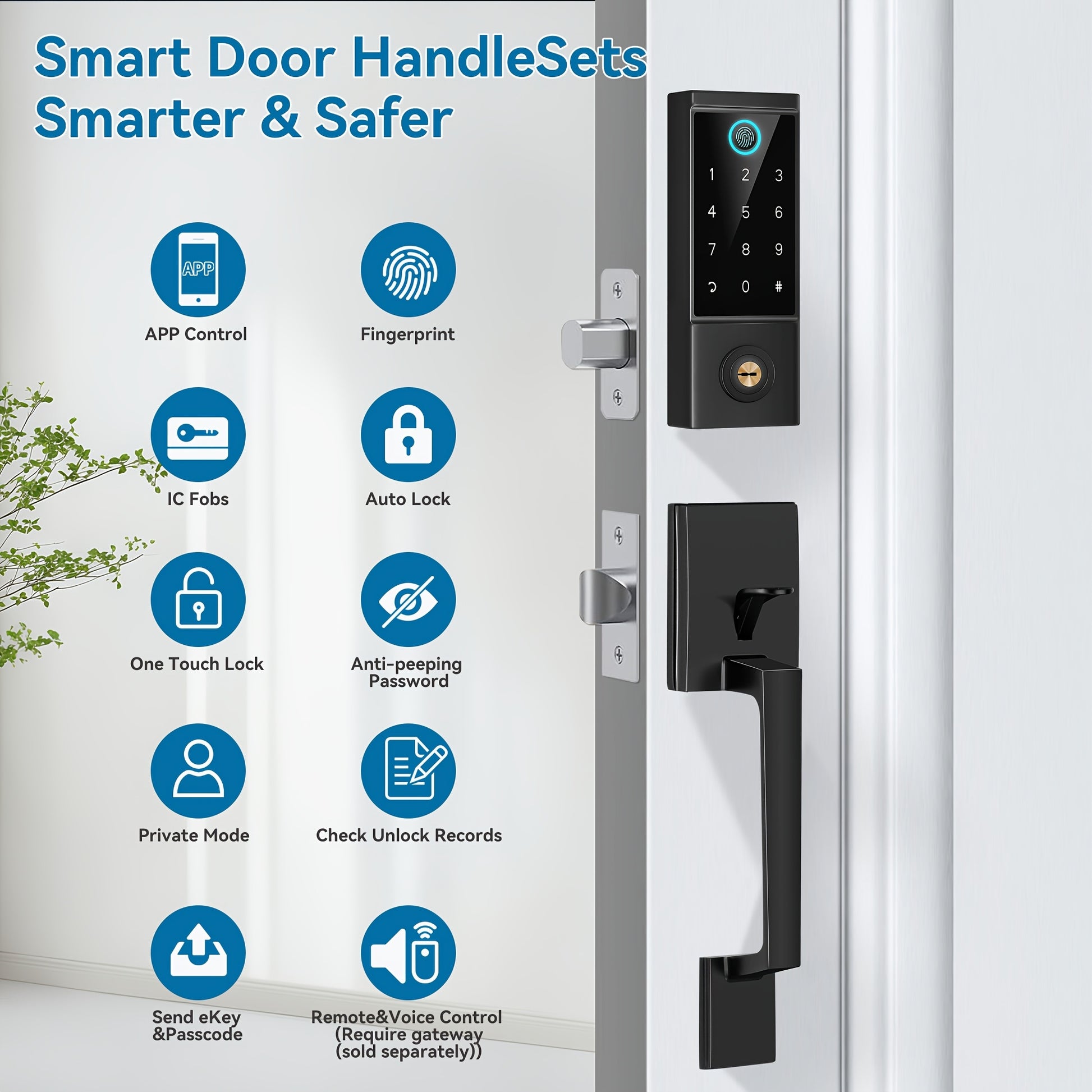 Smart Locks for Front Door with Handle Knob Set, Keyless Entry Door Lock, Front Door Lock Set, Fingerprint Door Lock with App Control, Auto Lock, Matte Black
