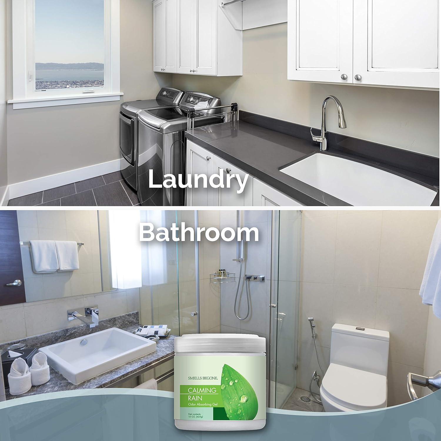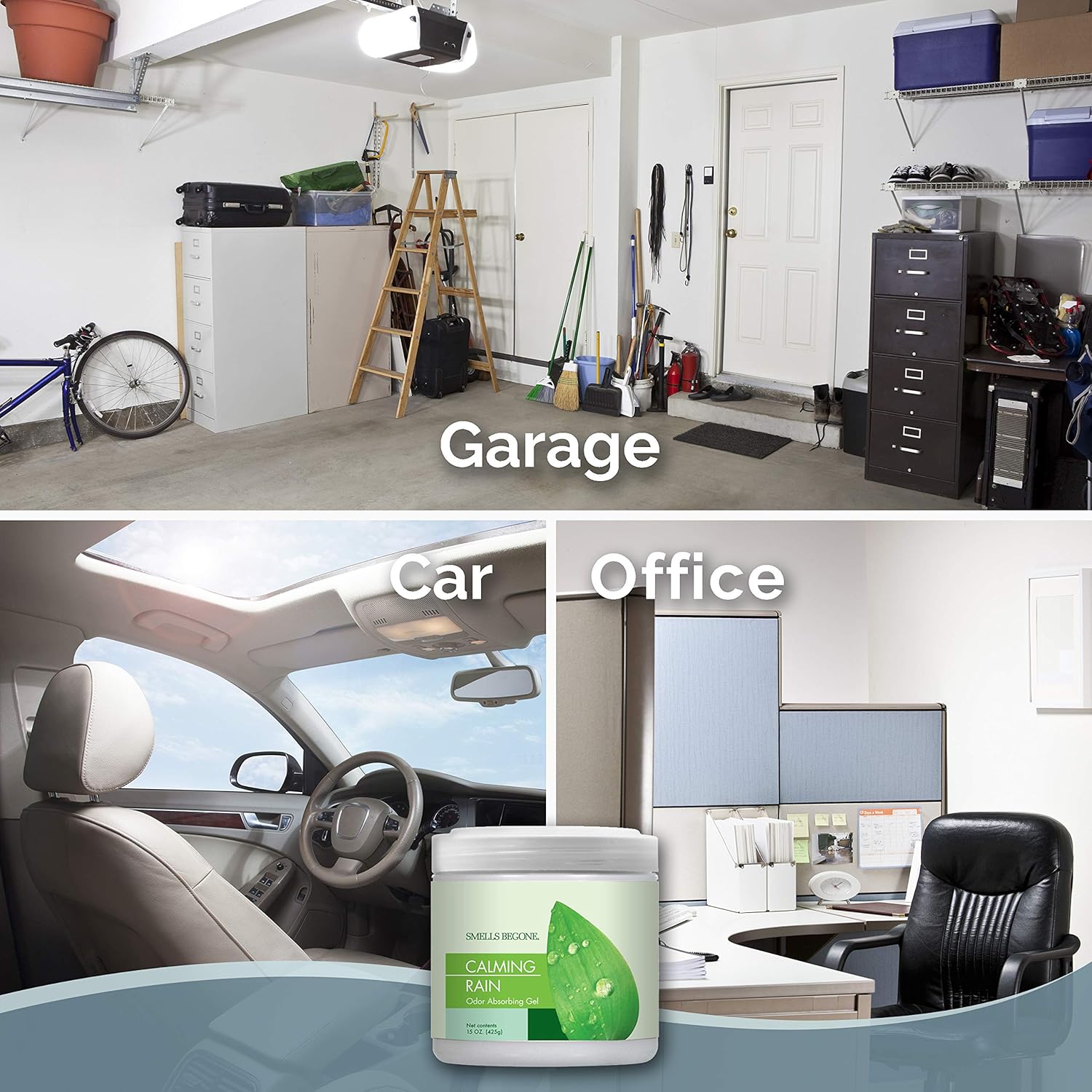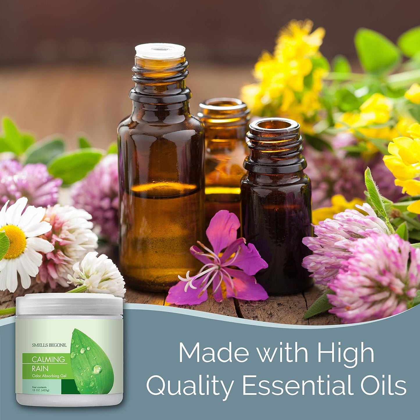 SMELLS BEGONE Air Freshener Odor Absorber Gel - Absorbs Odor from Bathrooms, Cars, Pet Areas, Boats & RVs - Made with Essential Oils - Calming Rain Scent