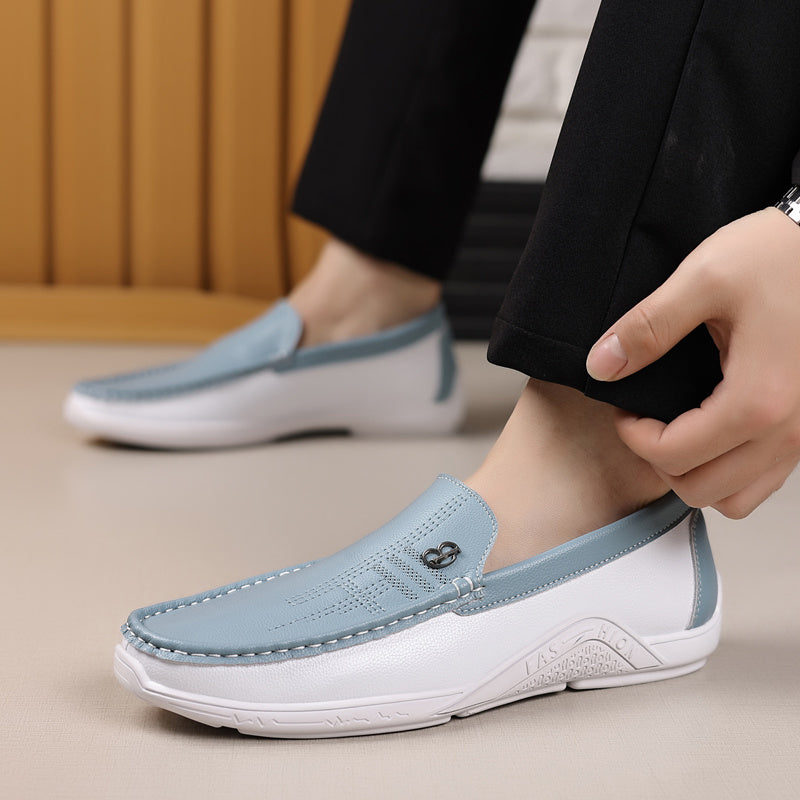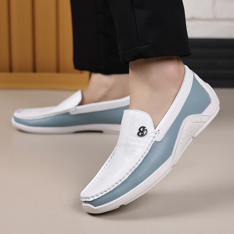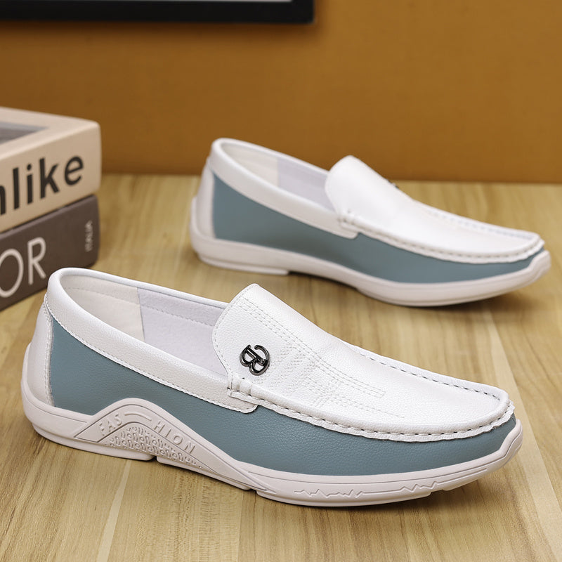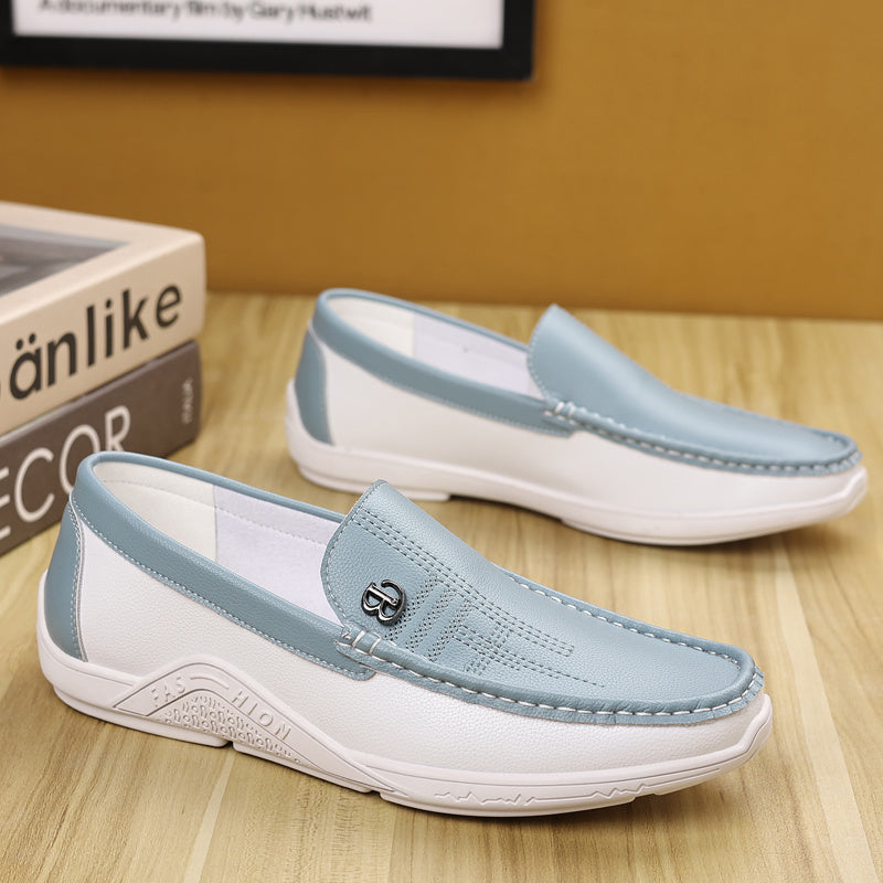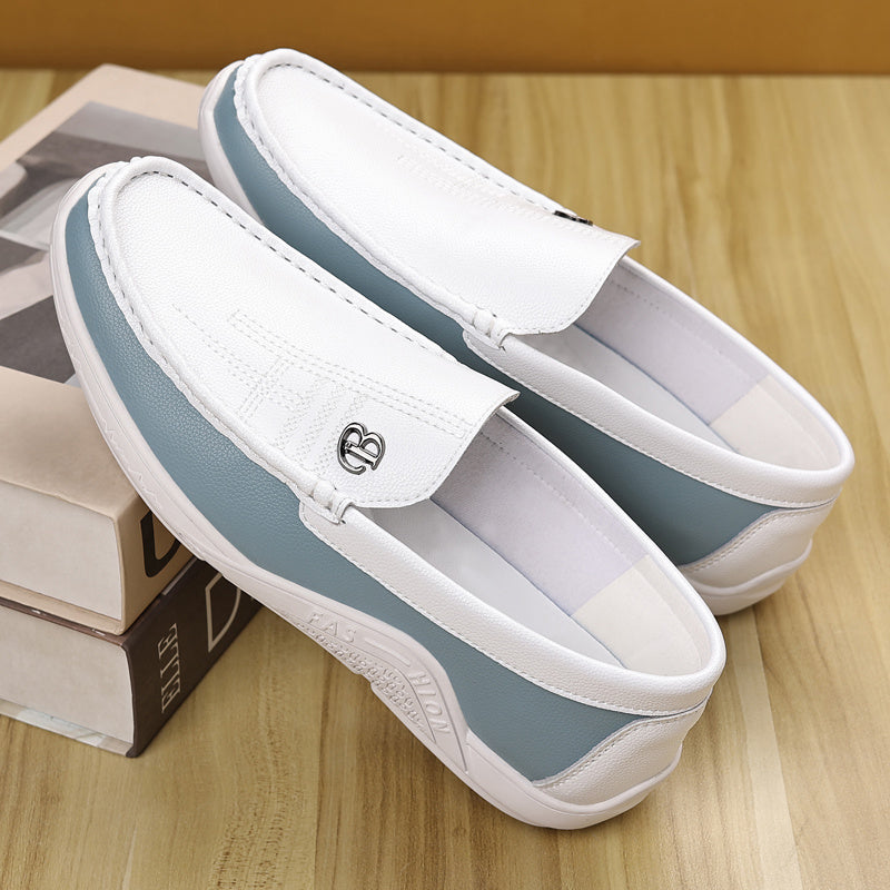 SND Men'S Casual Street Shoes Slip-On Loafers - Fashionable Blue And White, Non-Slip Rubber Sole, Comfortable PU Lining, Very Suitable for Vacation And Party, a Pair of Soft-Soled Soft-Surface Men'S Casual Men'S White Shoes Trendy All-Match Slip-On Loafer