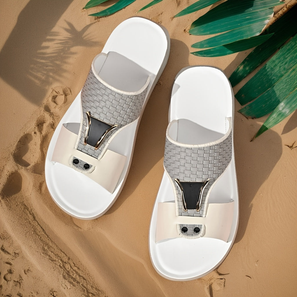 SND2025 Men'S New Fashion Casual Slides - Non-Slip, Durable, Lightweight, Breathable, All-Season Versatile Slip-On Sandals with Textured Upper & Rubber Sole for Beach, Pool, Daily Wear, Beach Footwear, Poolside Footwear, Minimalist Sandals, Comfortable Fo