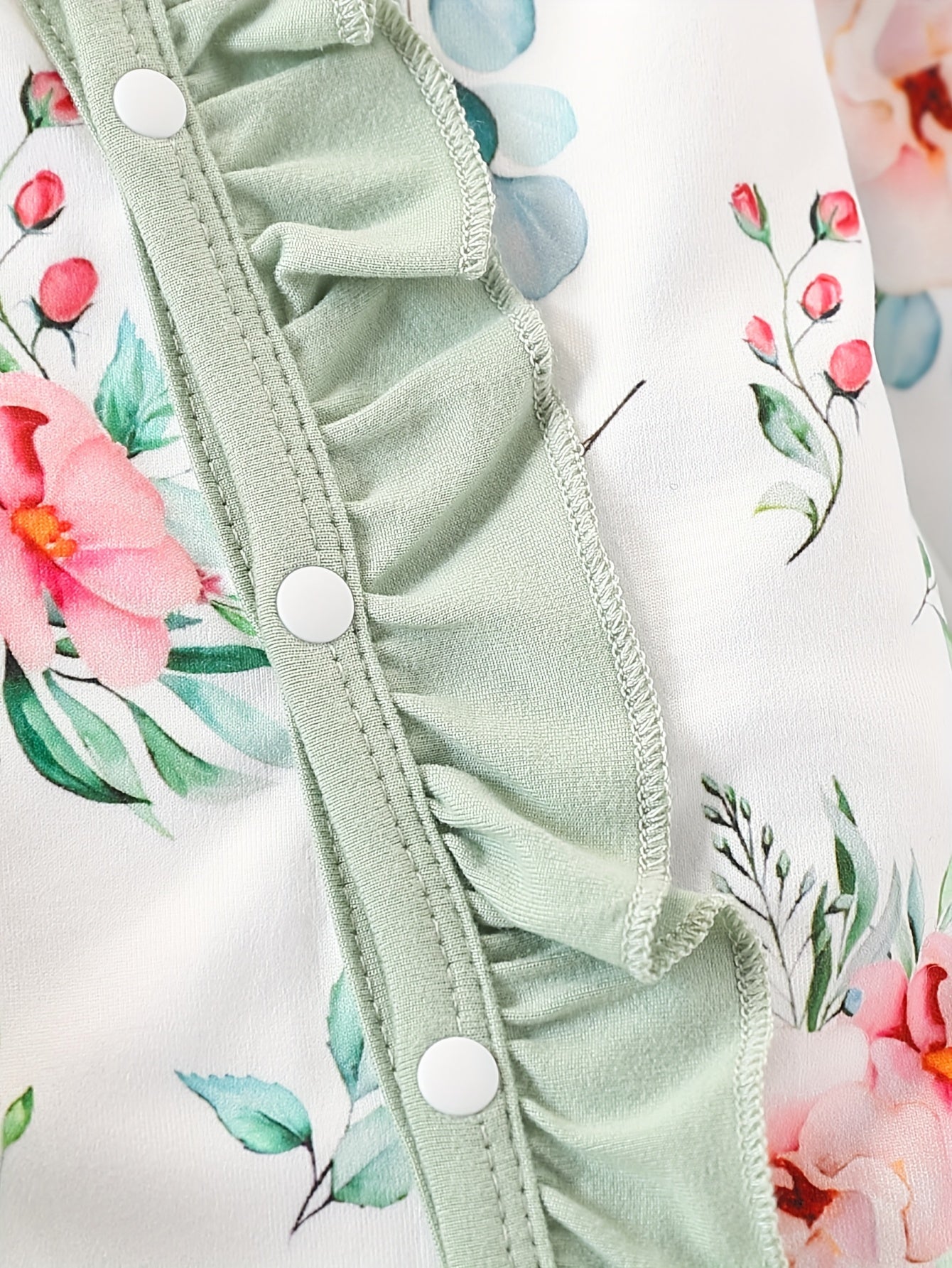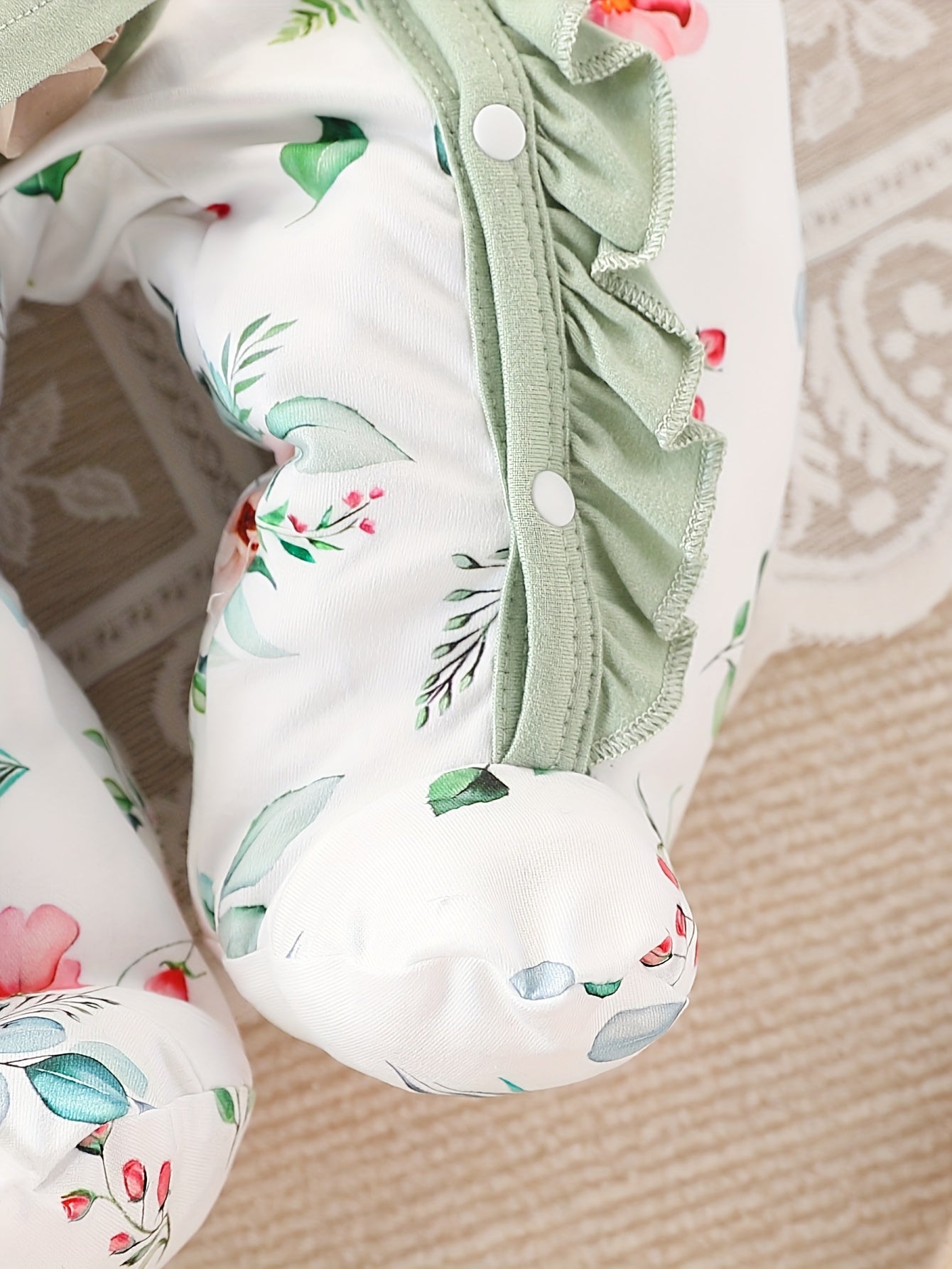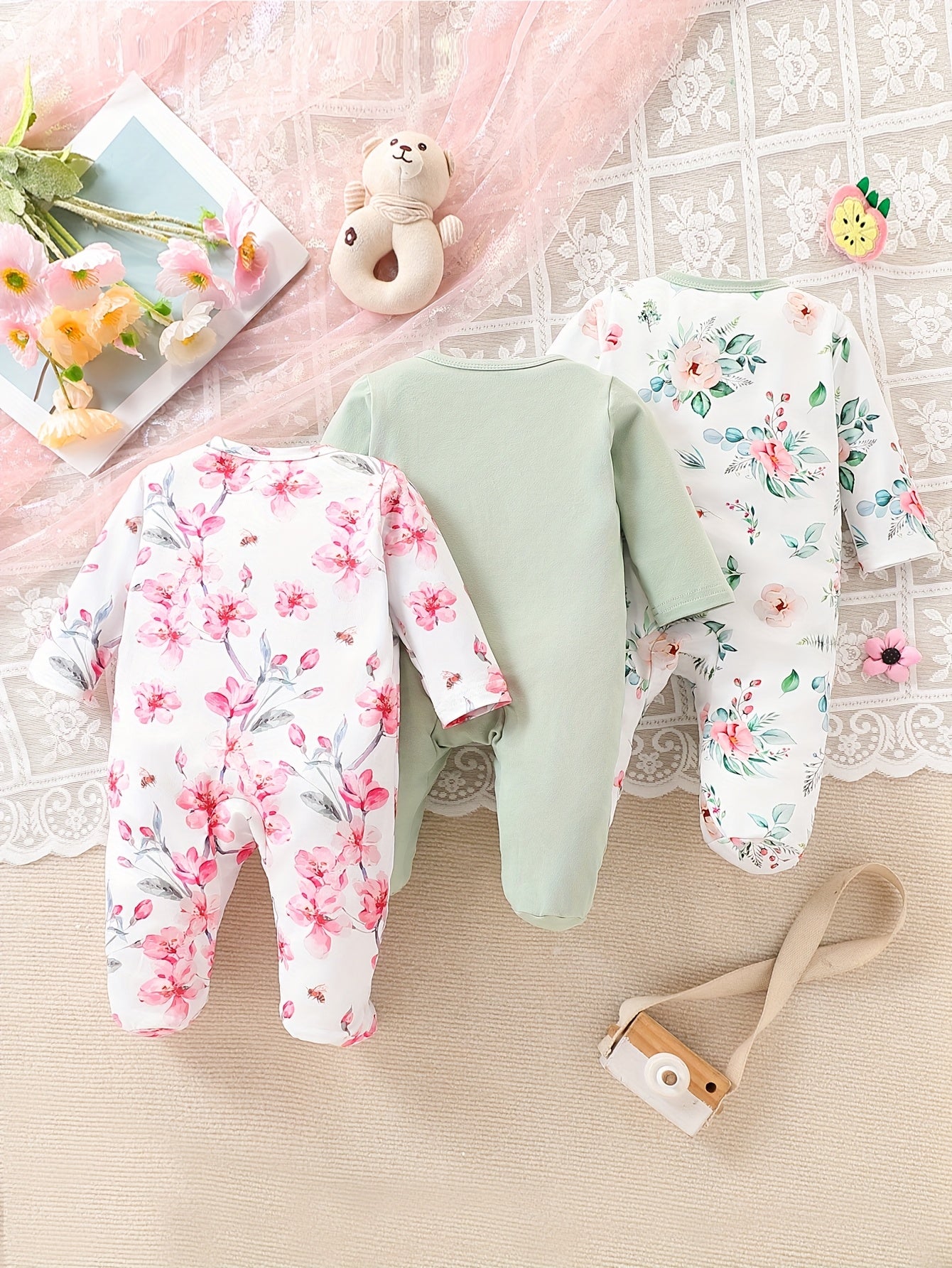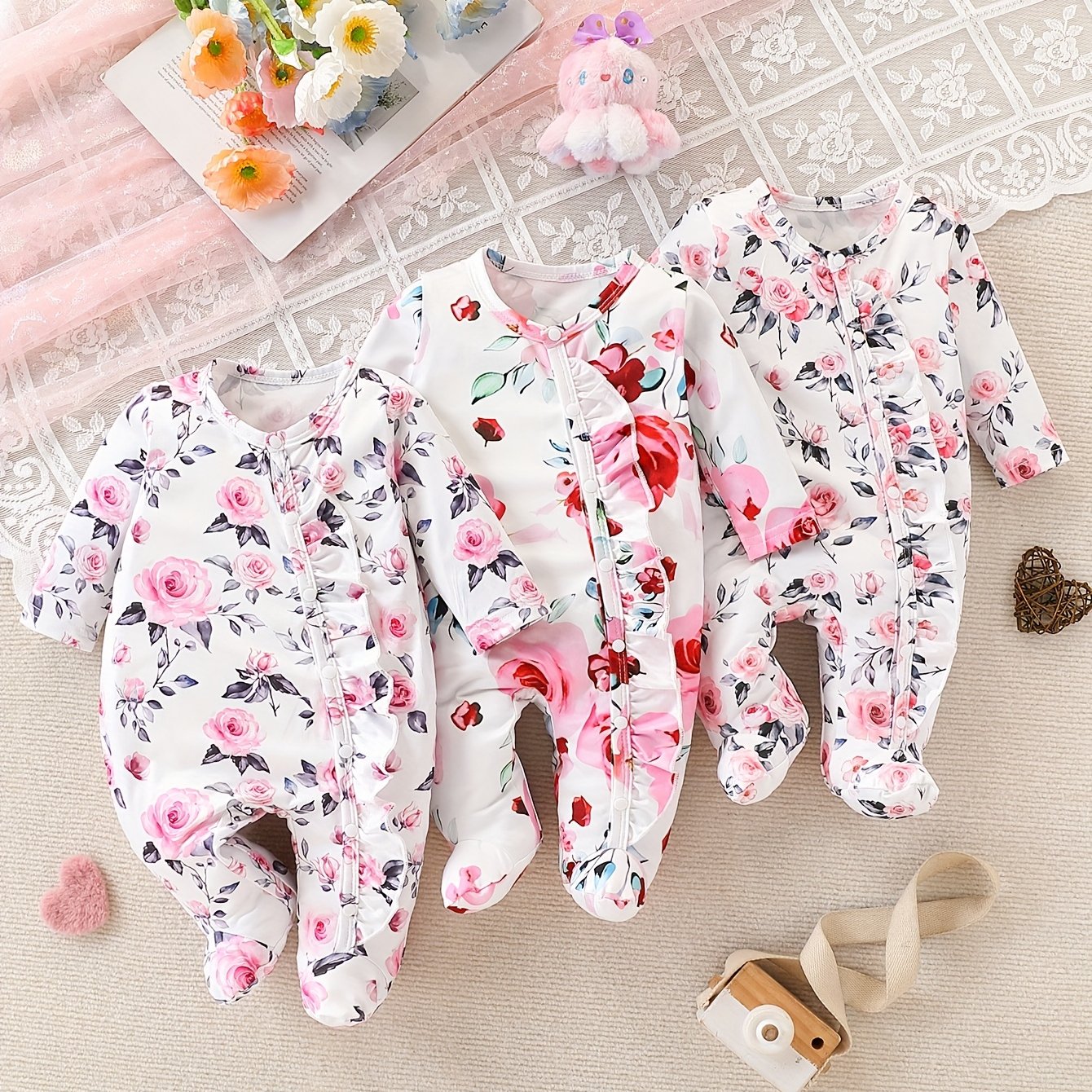 [Soft Rompers] Soft and Stretchy Set of 3 Baby Girl Footed Rompers | Featuring Randomly Print Ruffled Designs, for Newborns, Outdoor