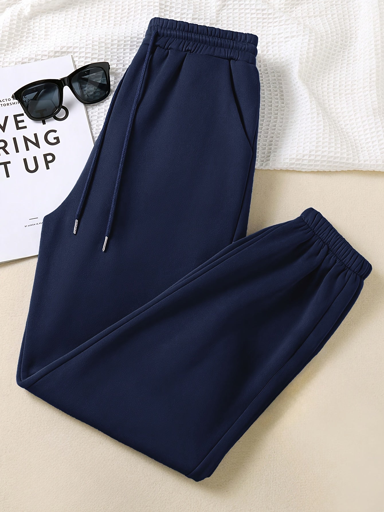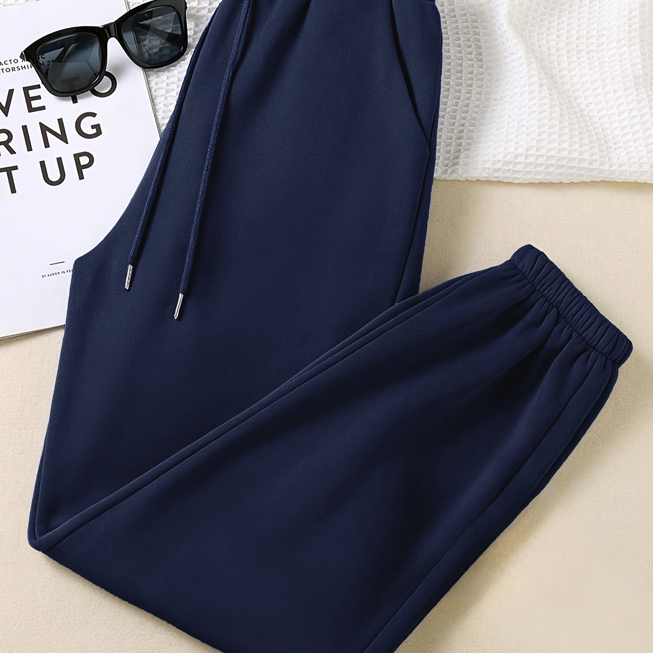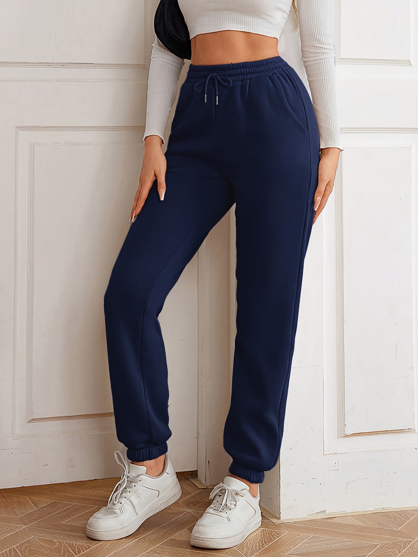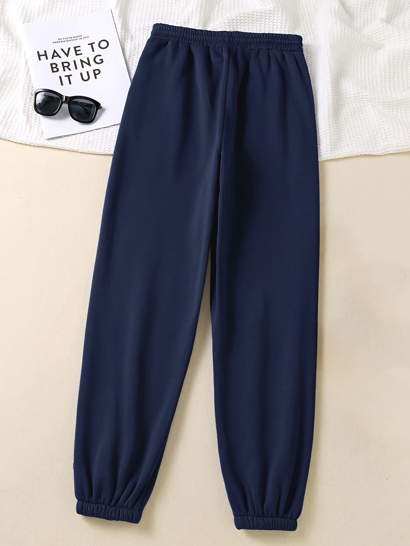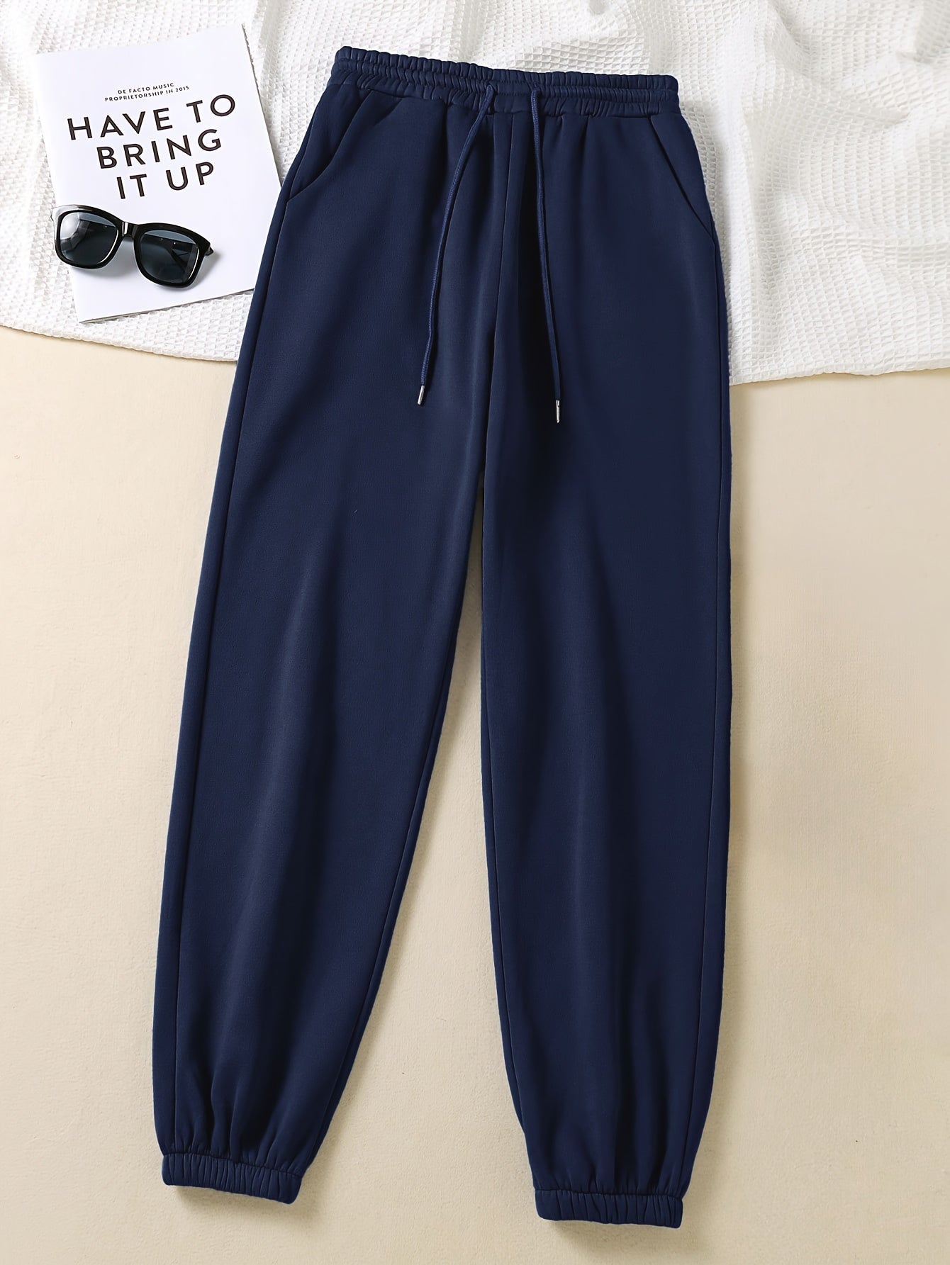 Soft & Stretchy Navy Blue Jogger Pants - Women's Comfortable Knit Fabric with Drawstring Waist and Dual Pockets for Fall/Winter Casual Wear