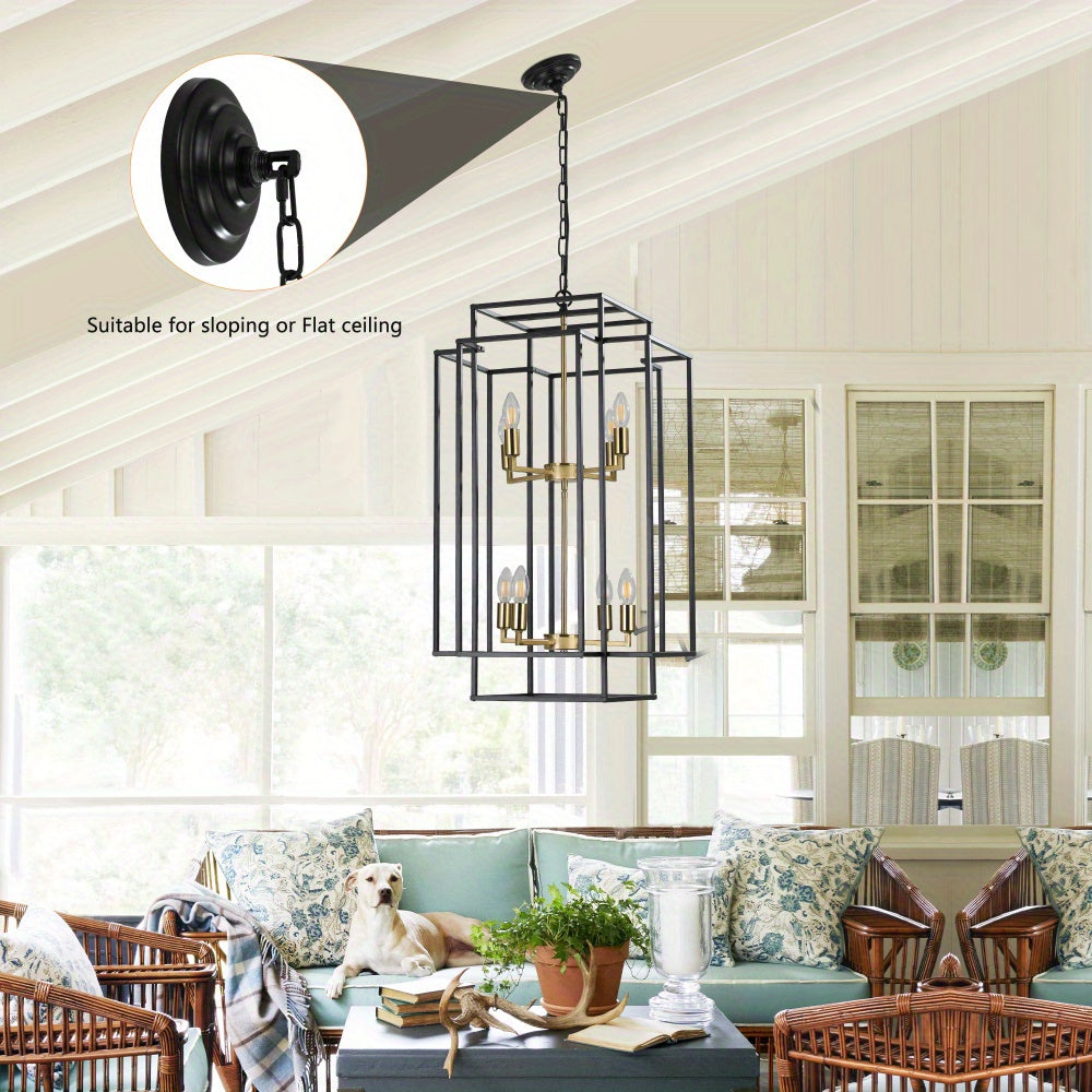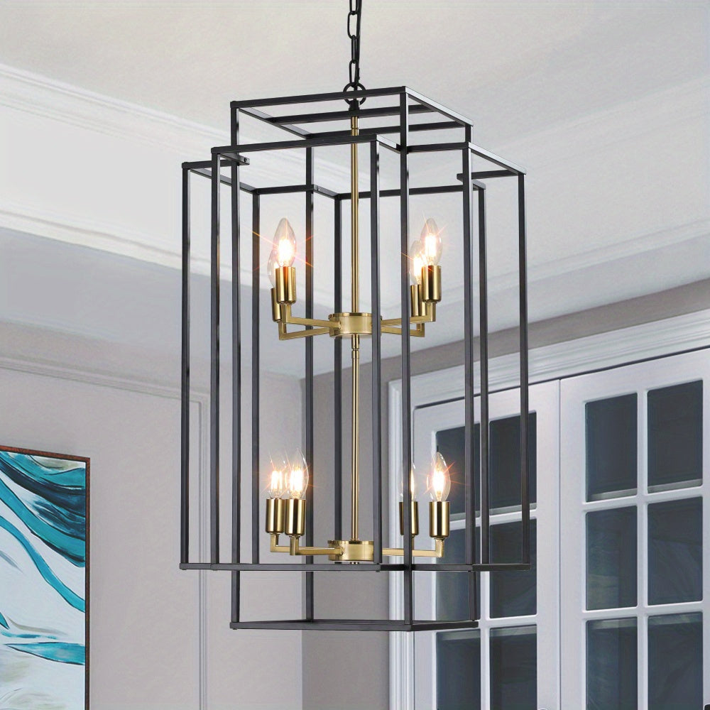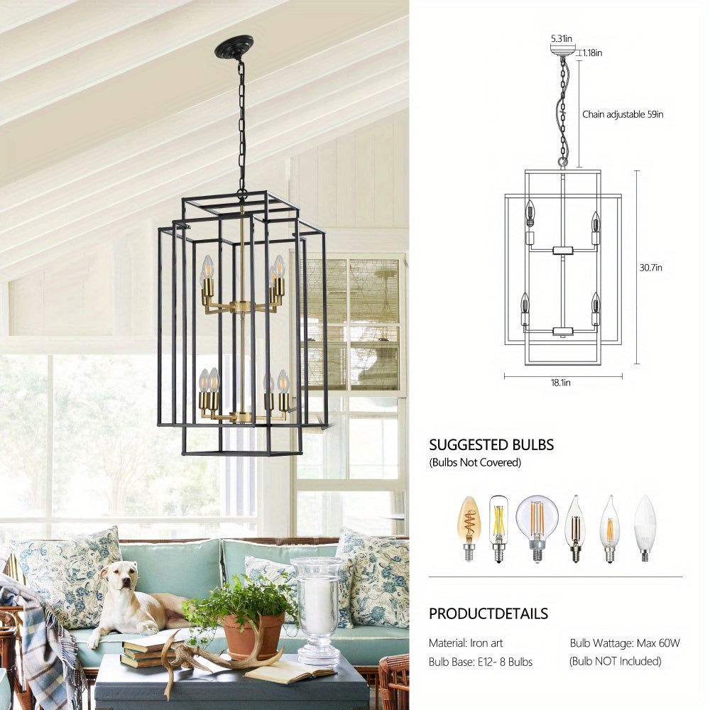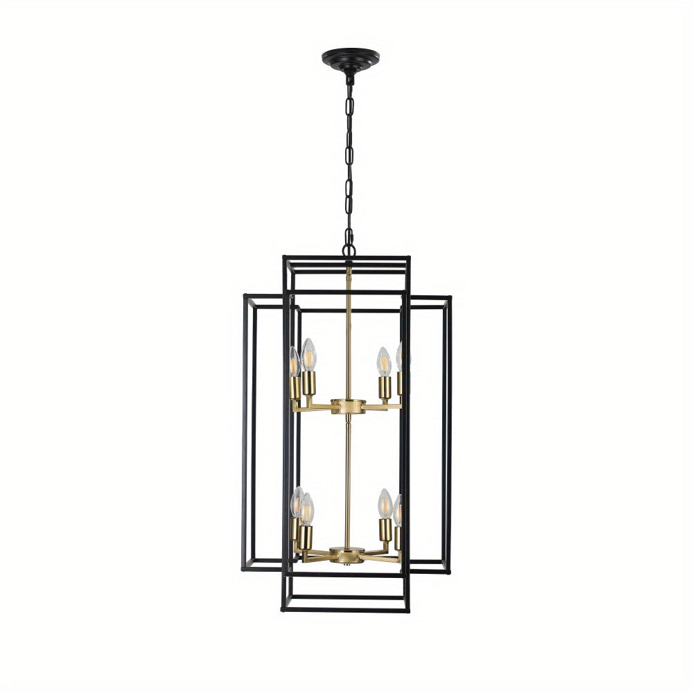 Sofucor 8-Lights Black & Golden Lantern Tiered Pendant Light Fixtures, Industrial Farmhouse Hanging Chandelier No Bulbs