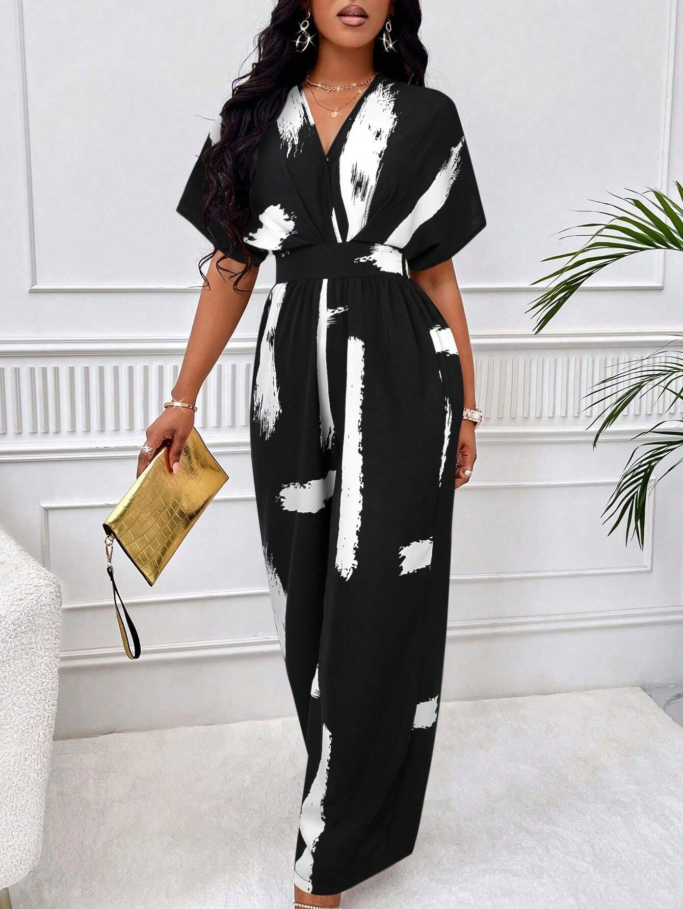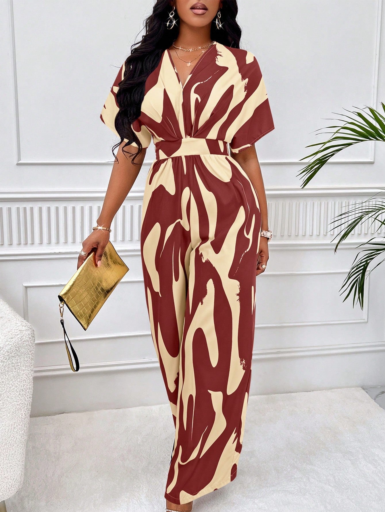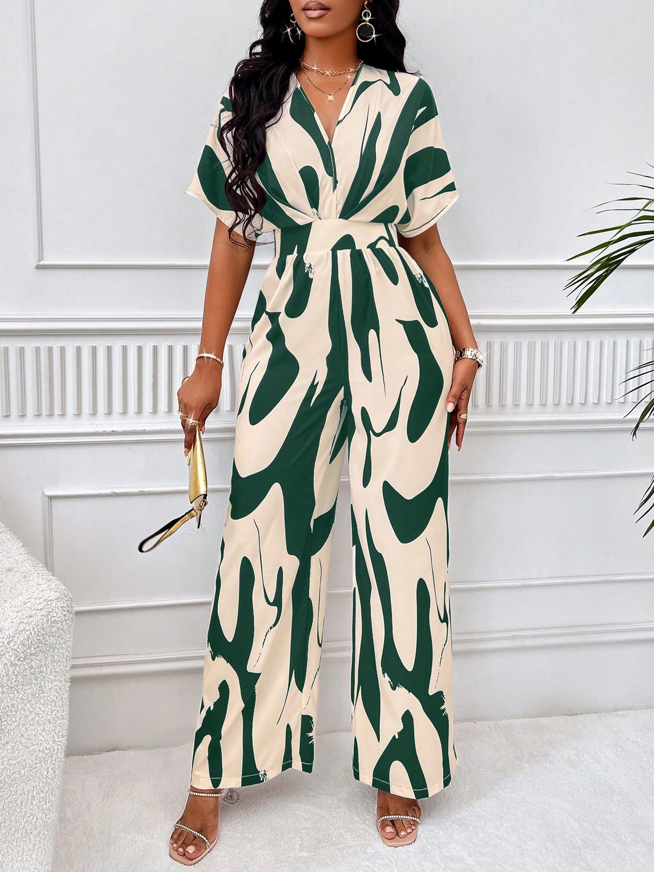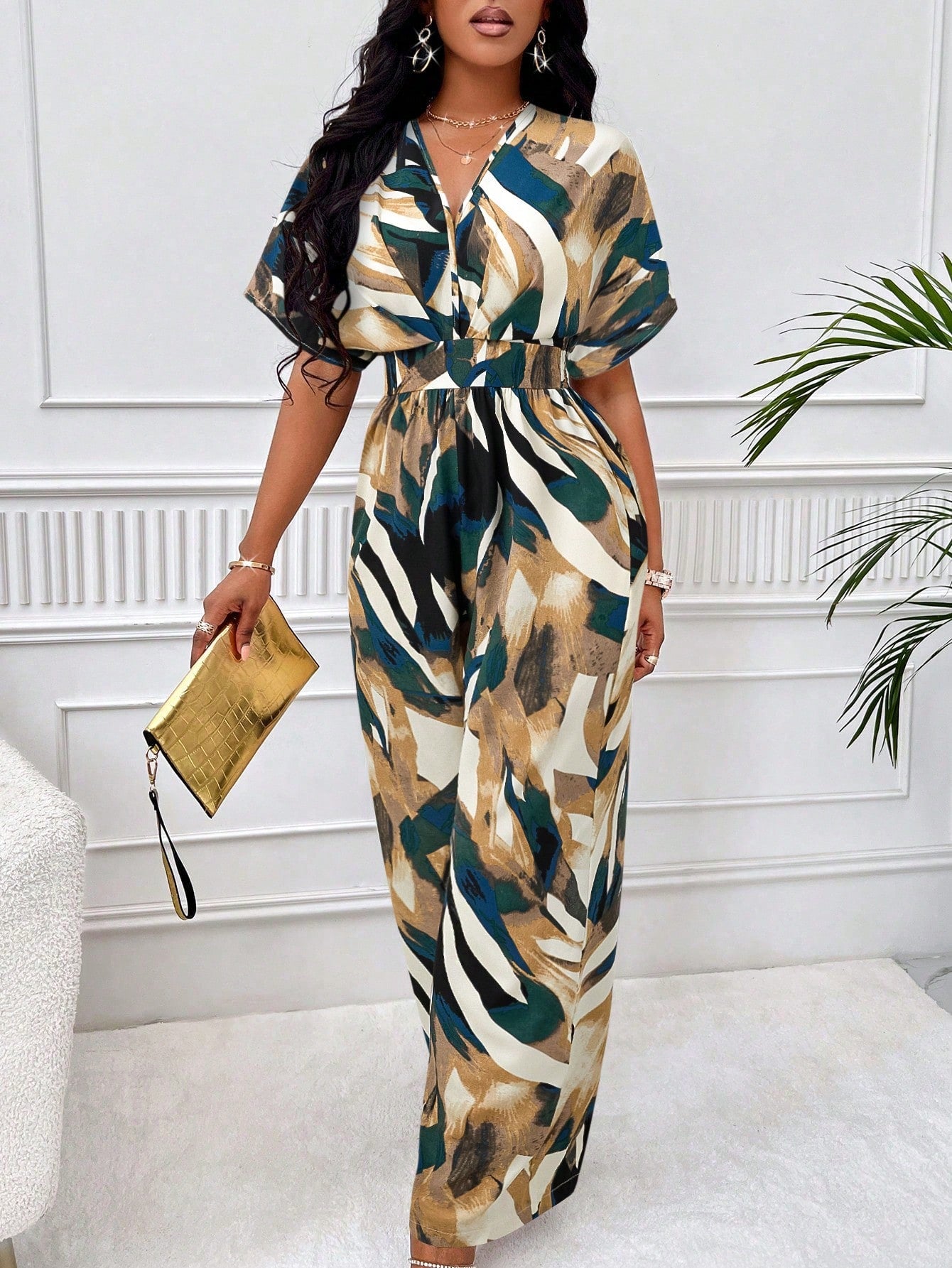SOLERSUN Allover Print Batwing Sleeve Shirt Jumpsuit