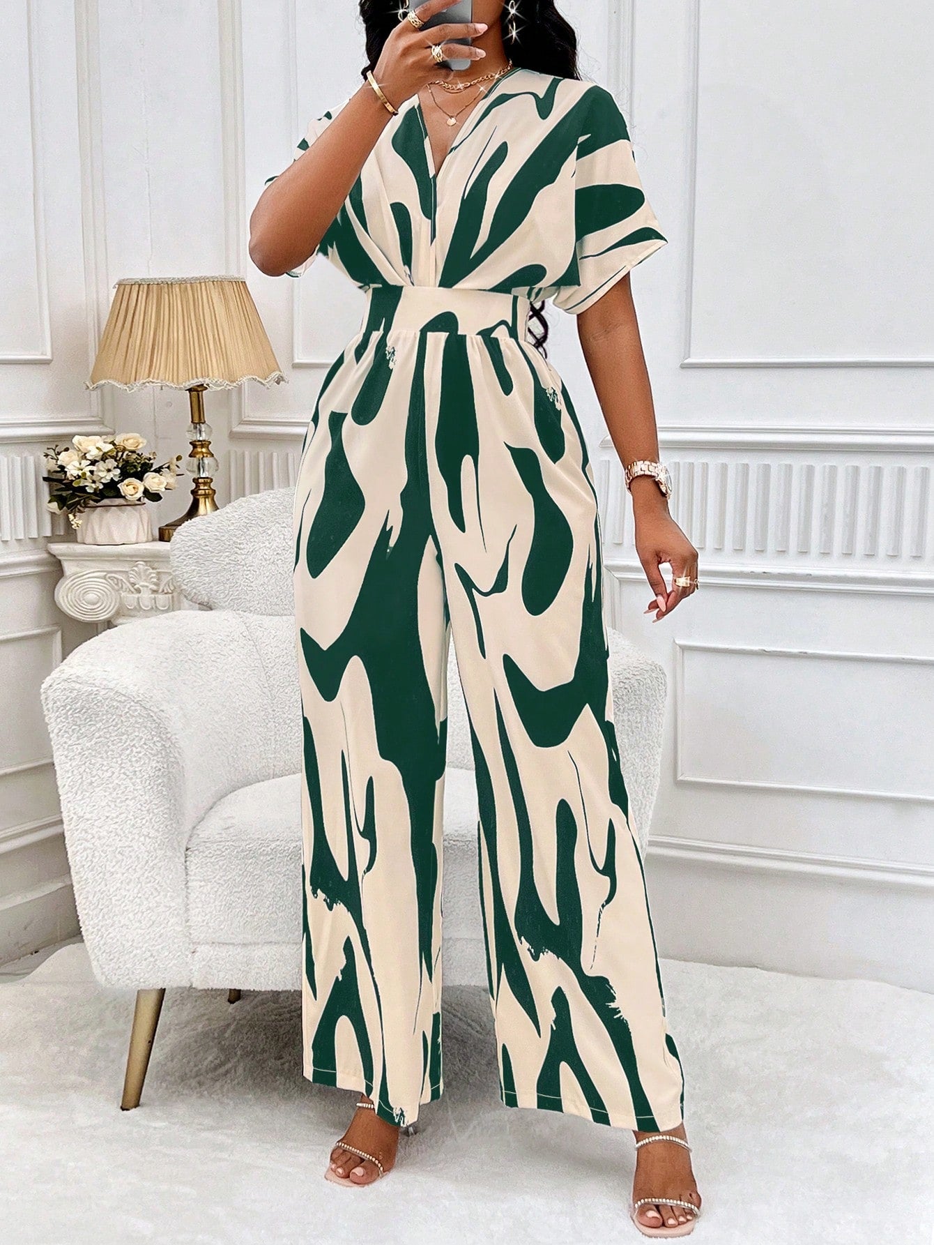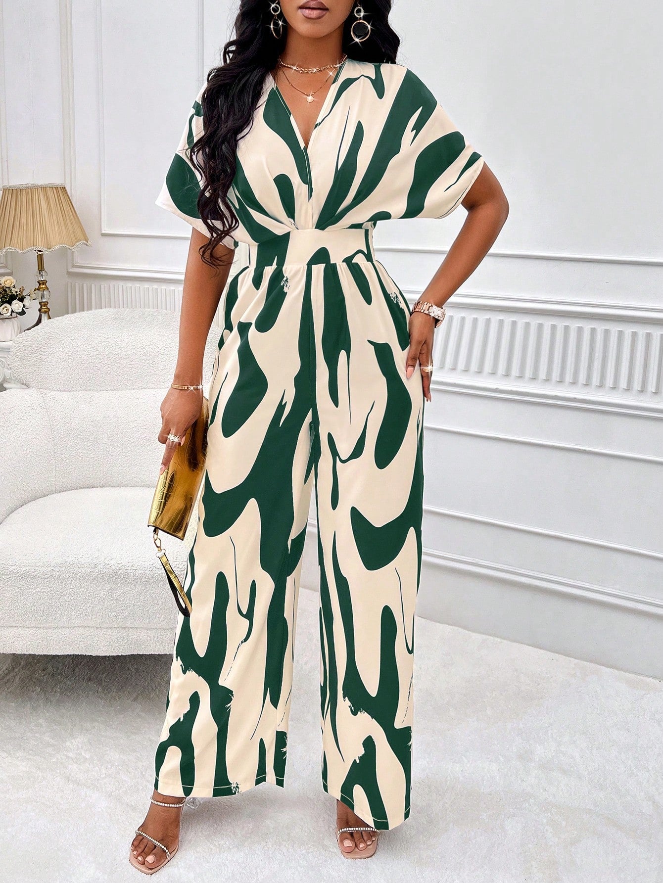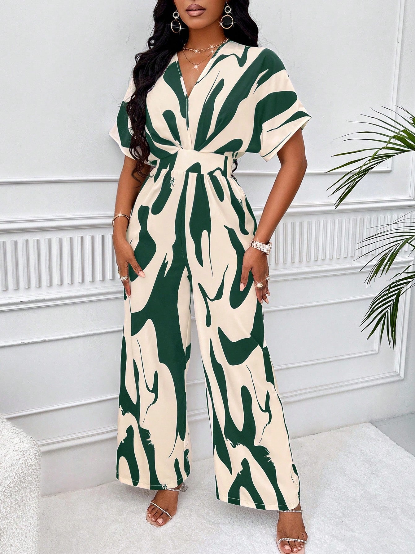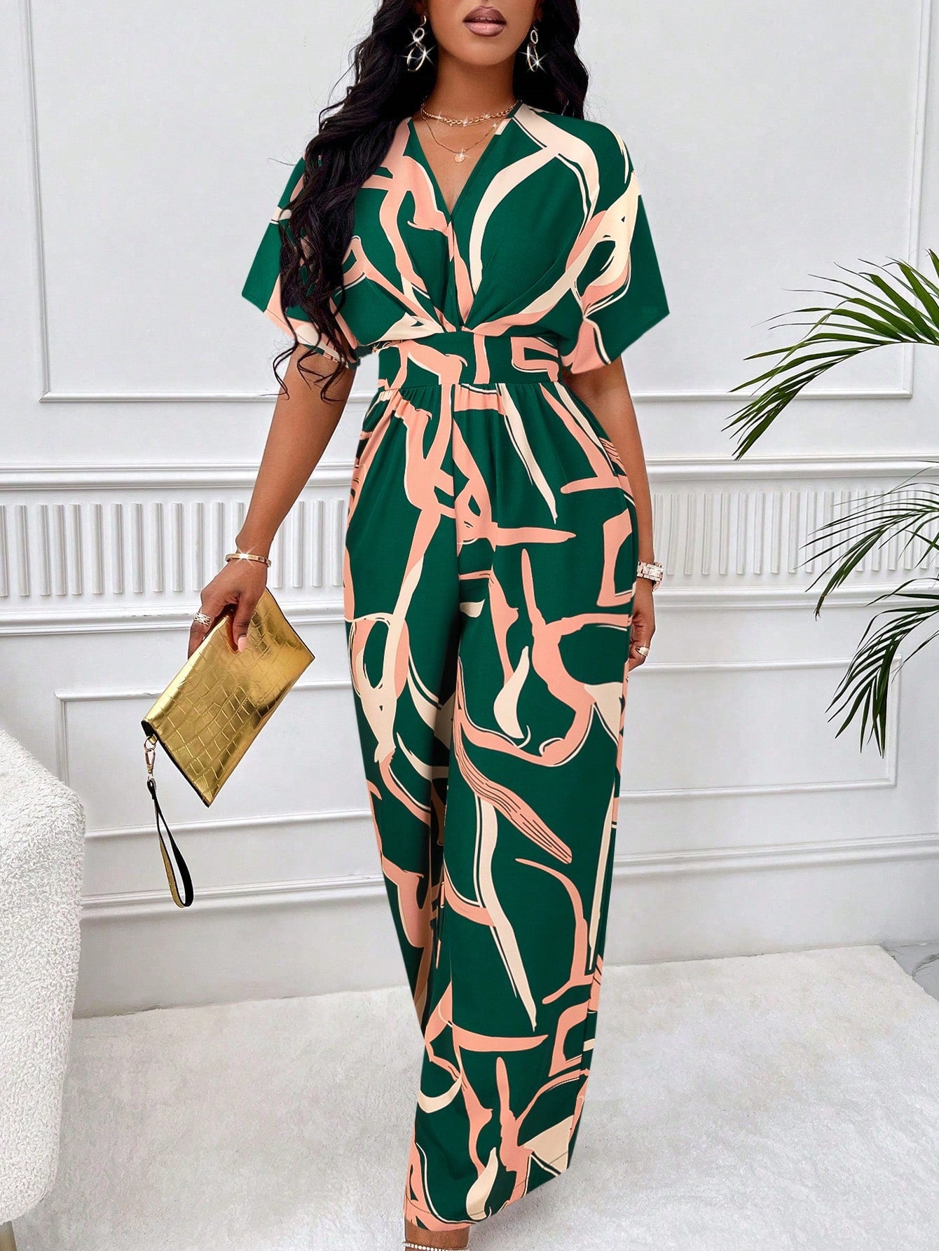 SOLERSUN Allover Print Batwing Sleeve Shirt Jumpsuit