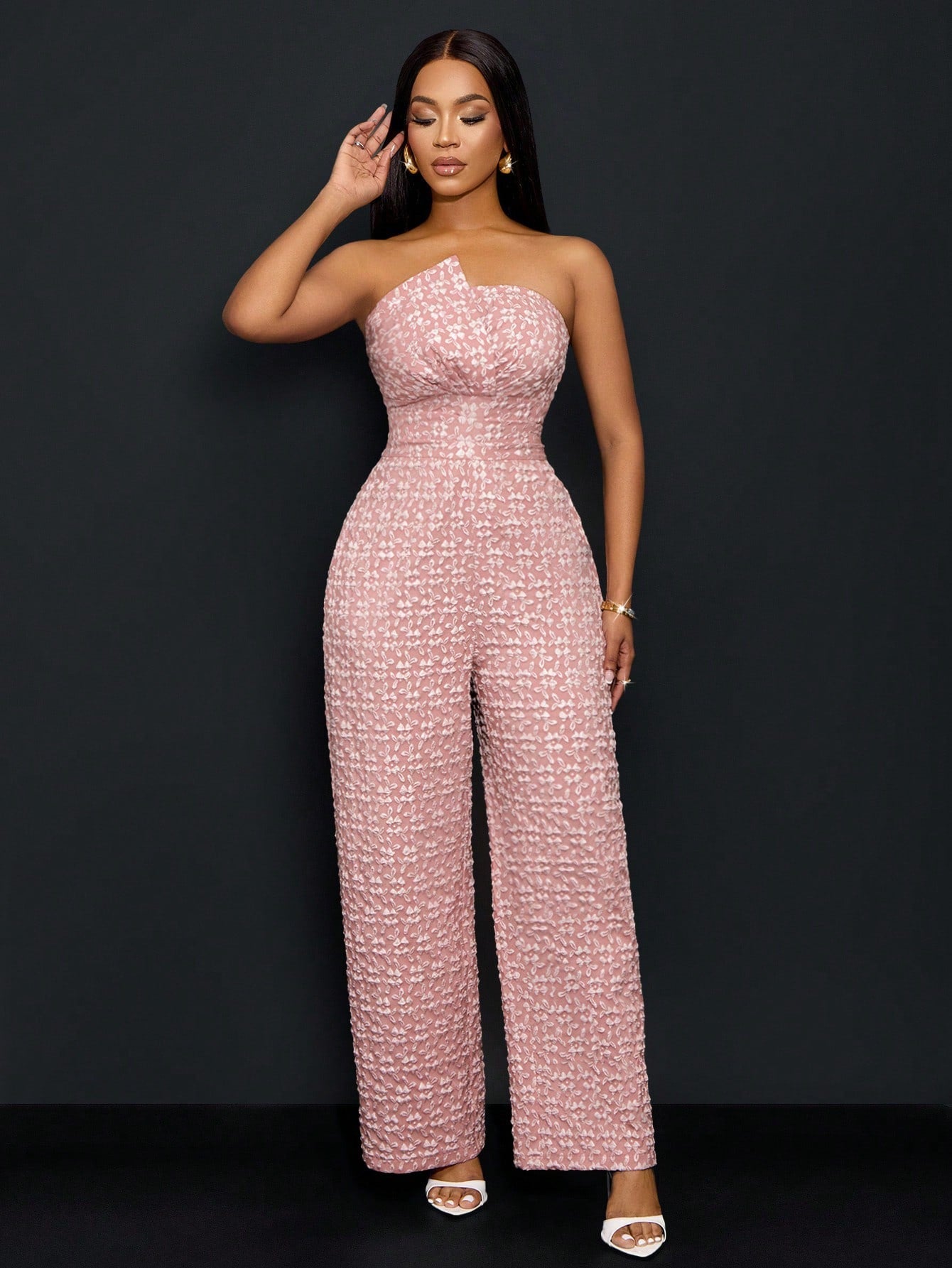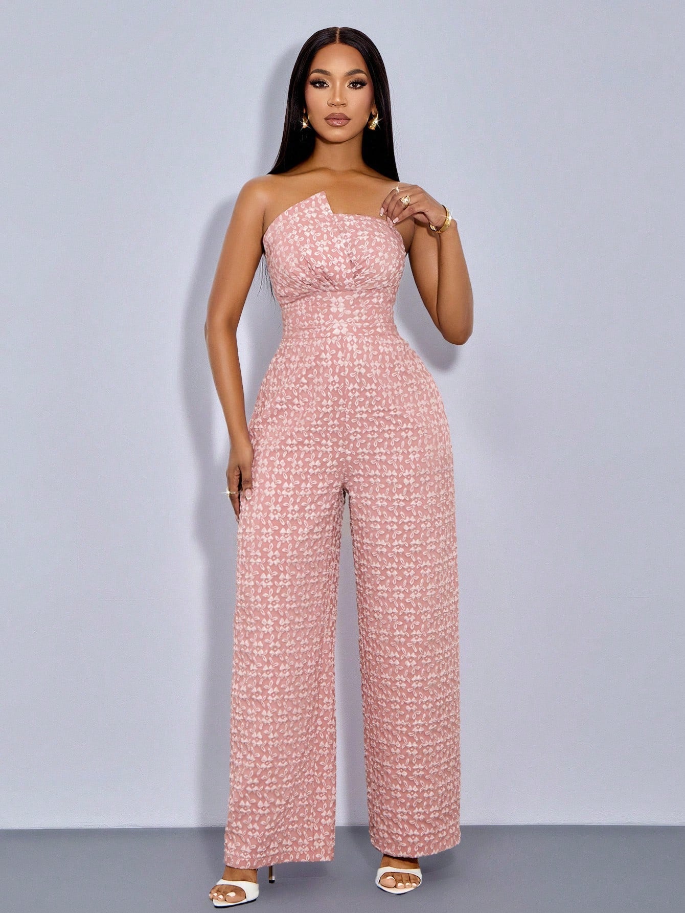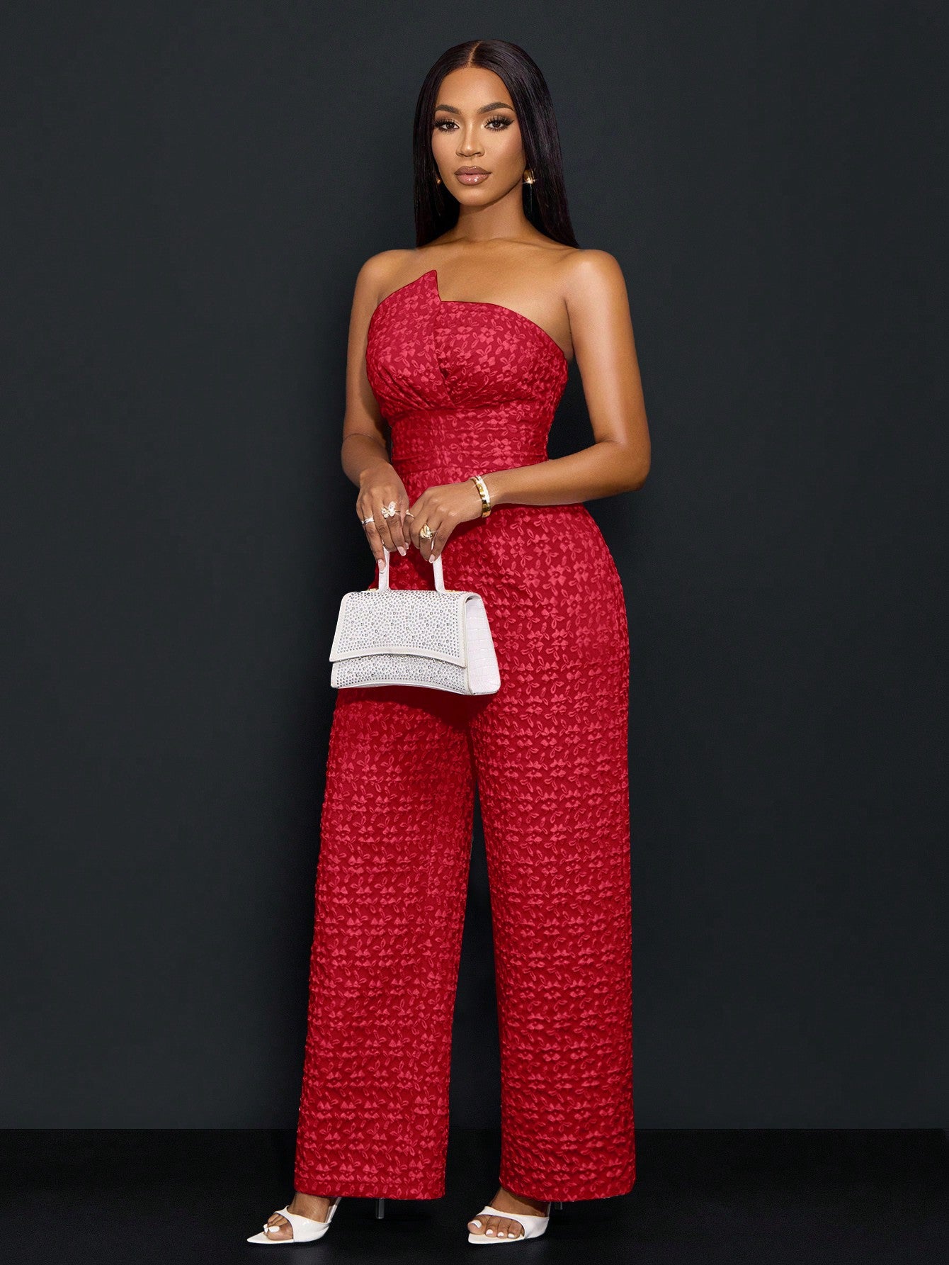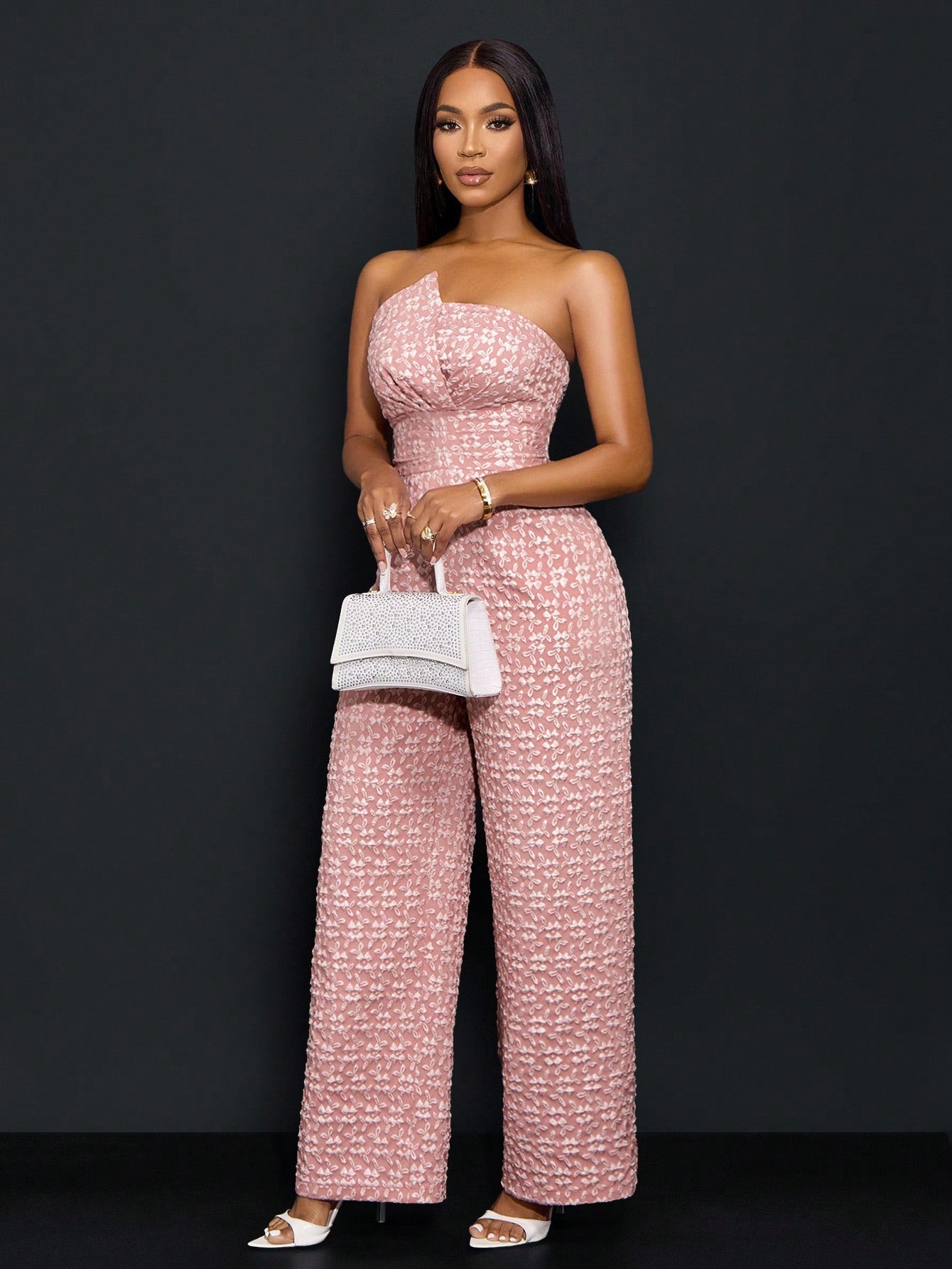 SOLERSUN Vintage-Style Women's Elegant Floral Textured Business Jumpsuit