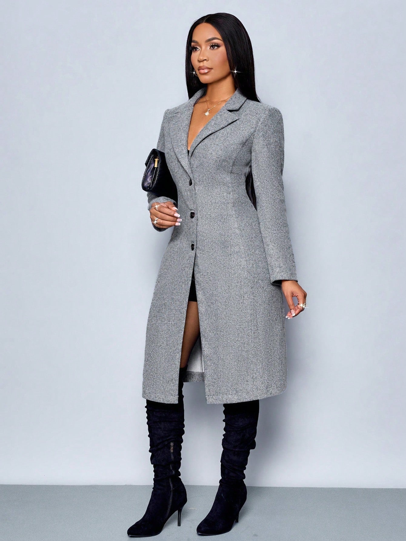 SOLERSUN Women's Elegant Sexy New Year's Party Christmas Jacket Warm Long Nizi Blazer Professional Commuting Waist Fit Jacket Thanksgiving Women's Clothing Mid-Length Coat