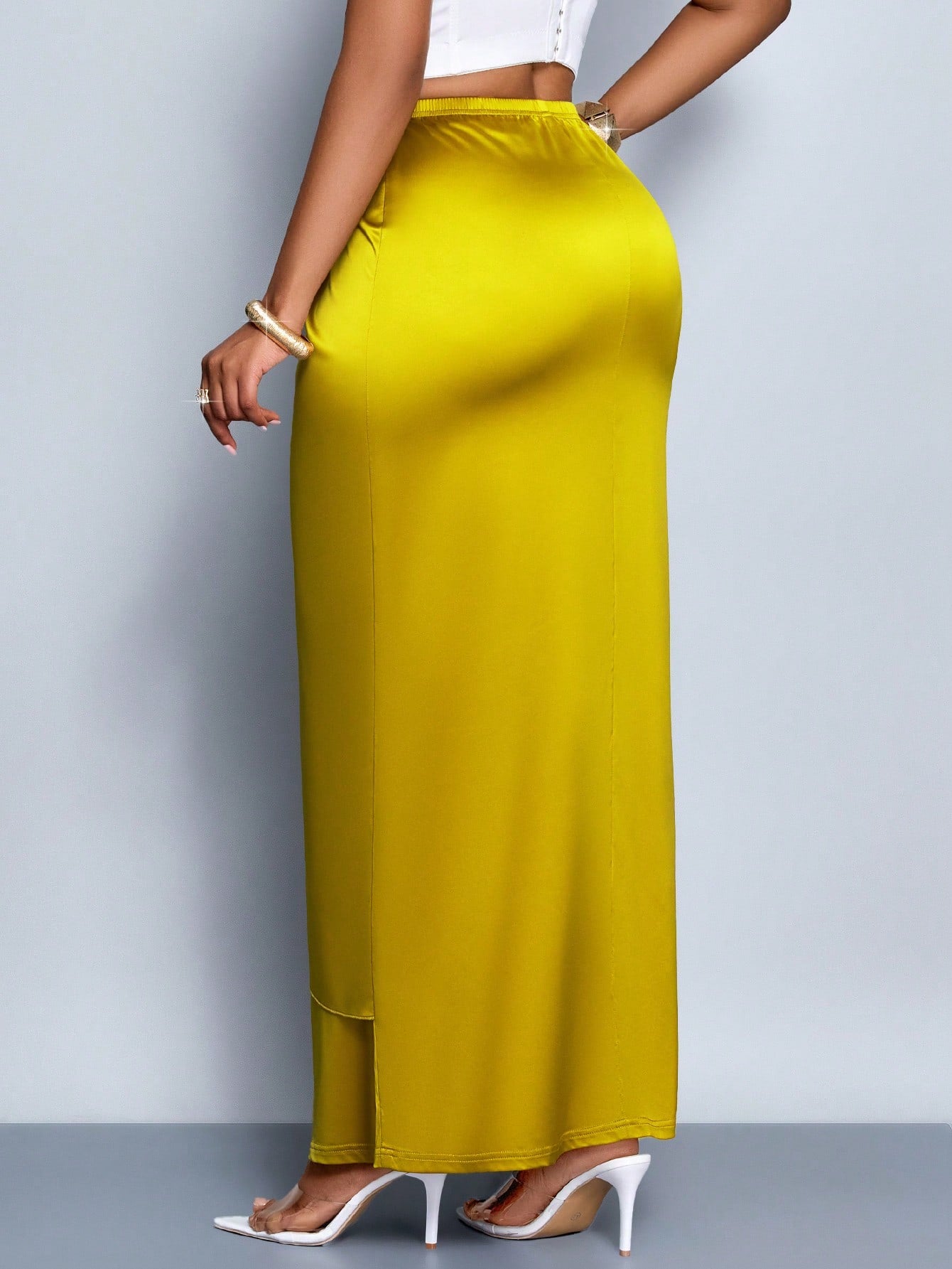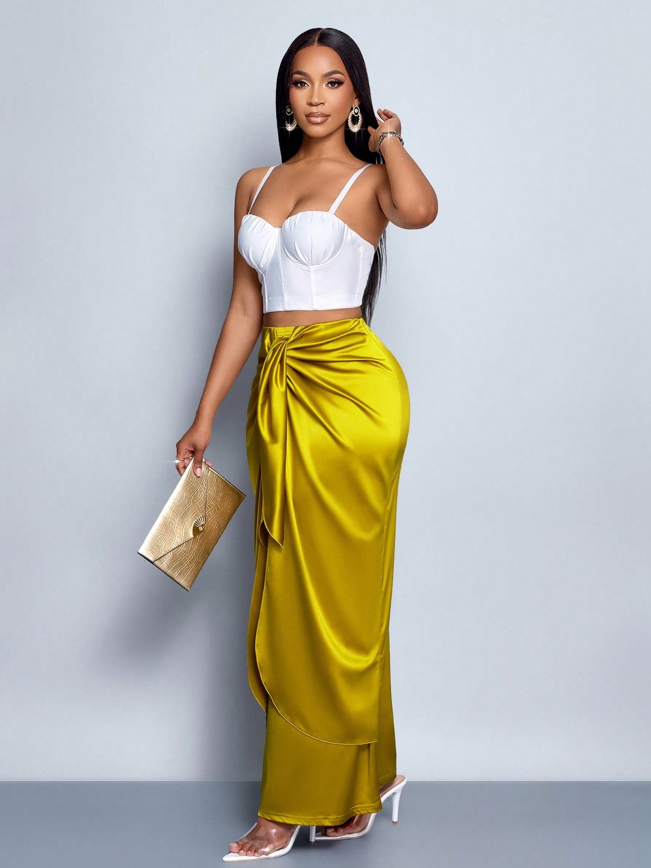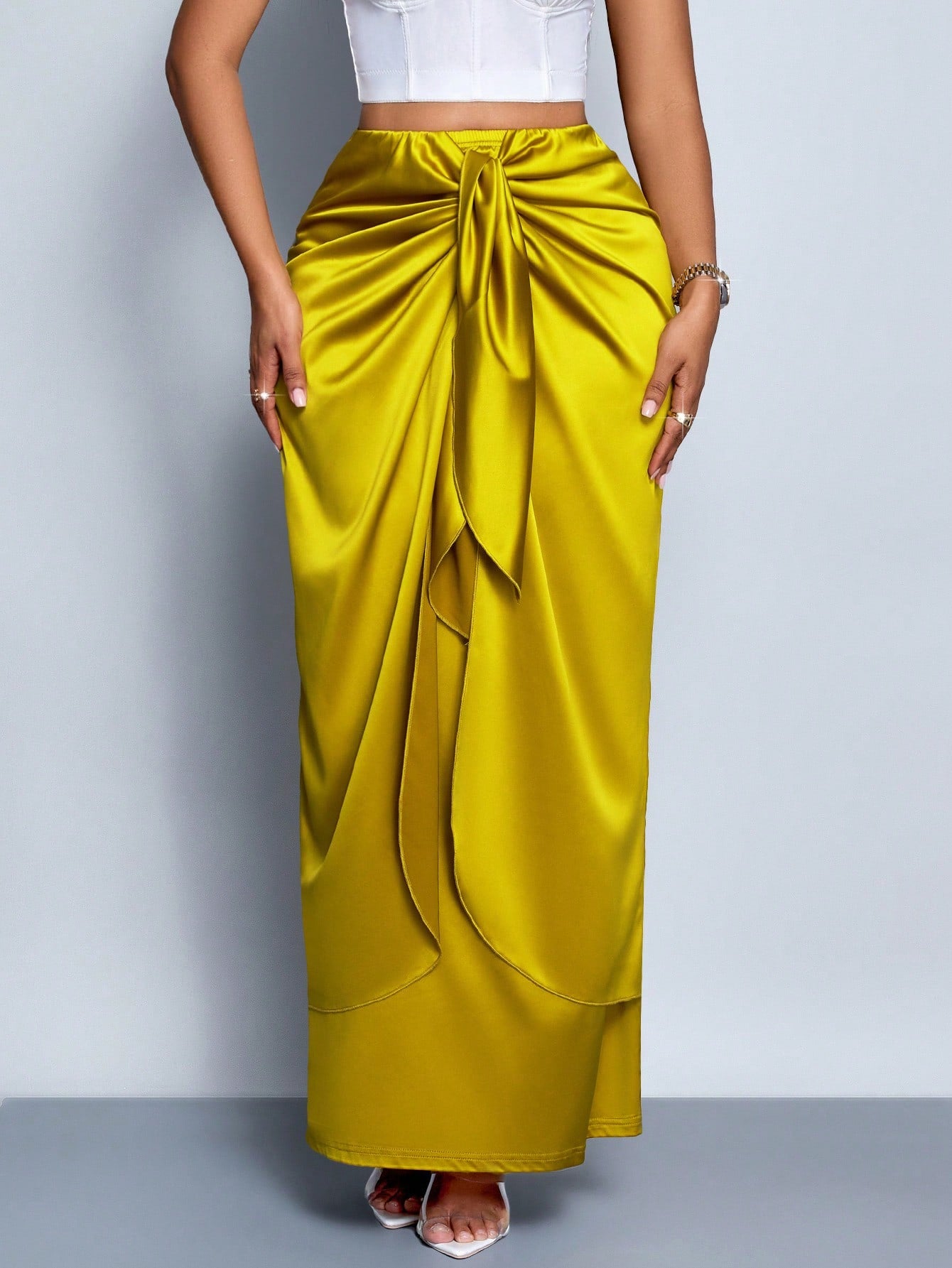 SOLERSUN Women's Elegant Simple Romantic Tie Front Satin Maxi Skirt,Versatile For Date, Commuting, Office Outfit