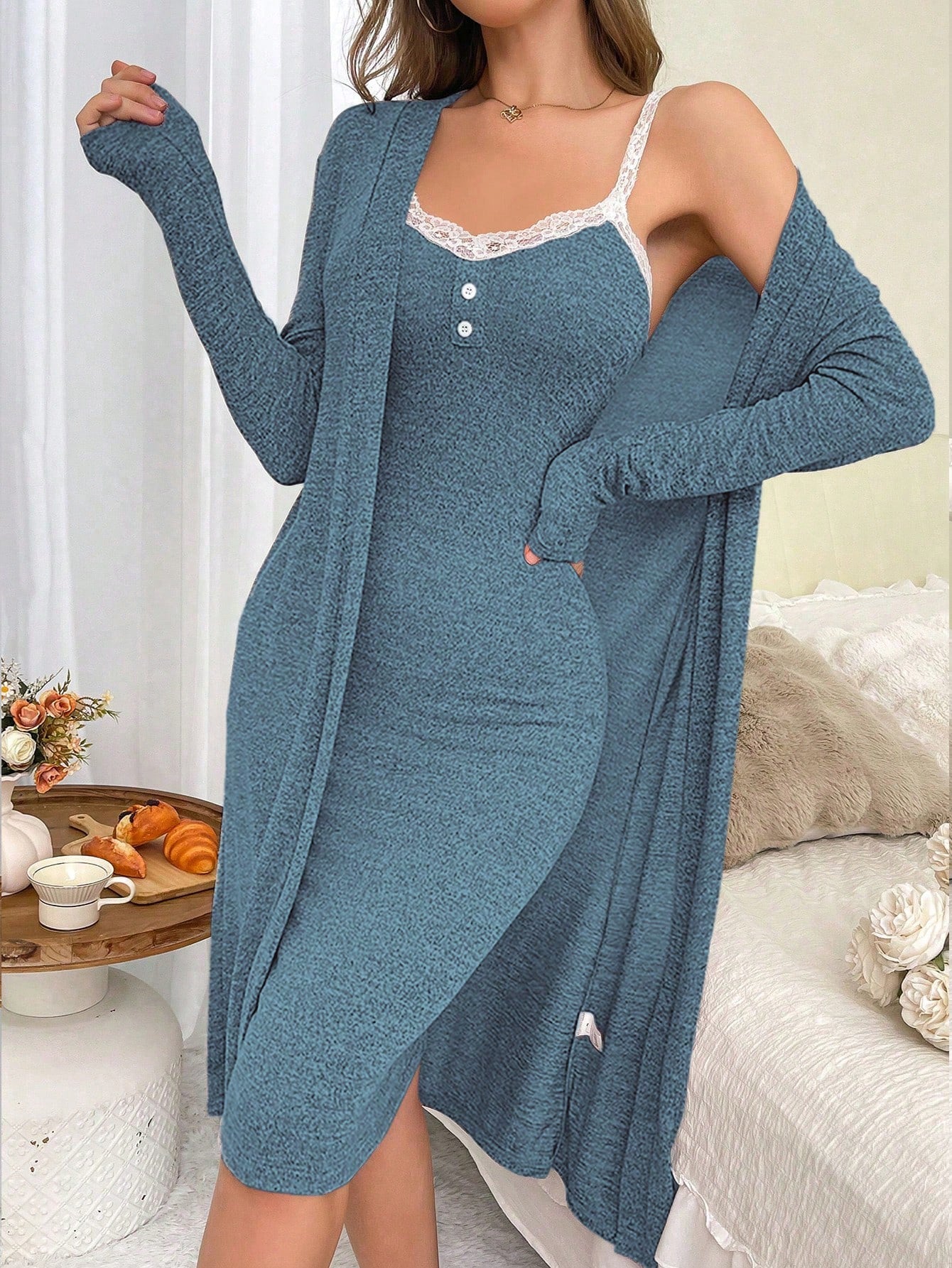 Solid Cami Nightdress & Robe PJ Set / Pajama Set