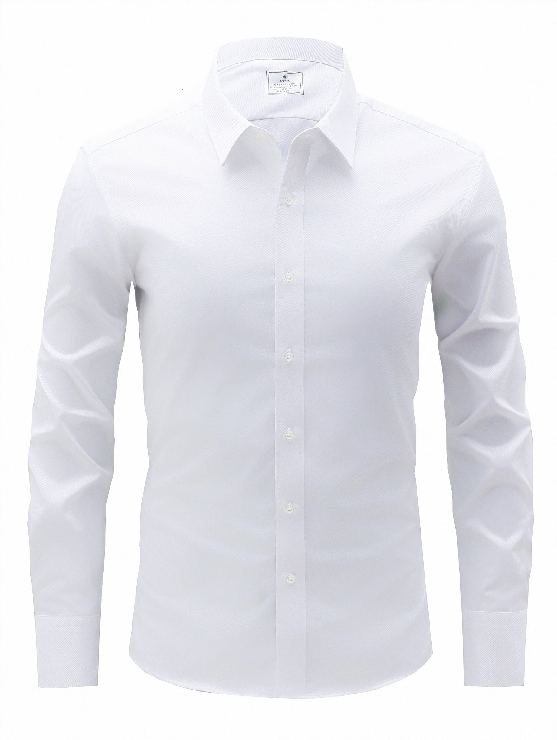 [Solid Color Business Shirt] Slim-Fit Solid Color Dress Shirt - Long Sleeve, Button-Up Business Collar for Formal Occasions
