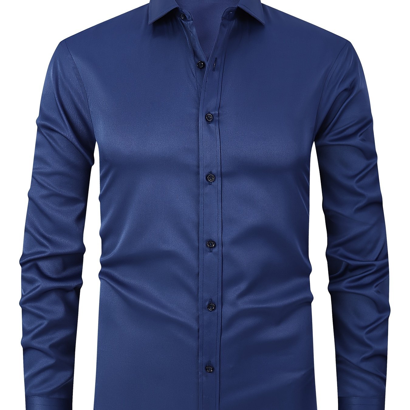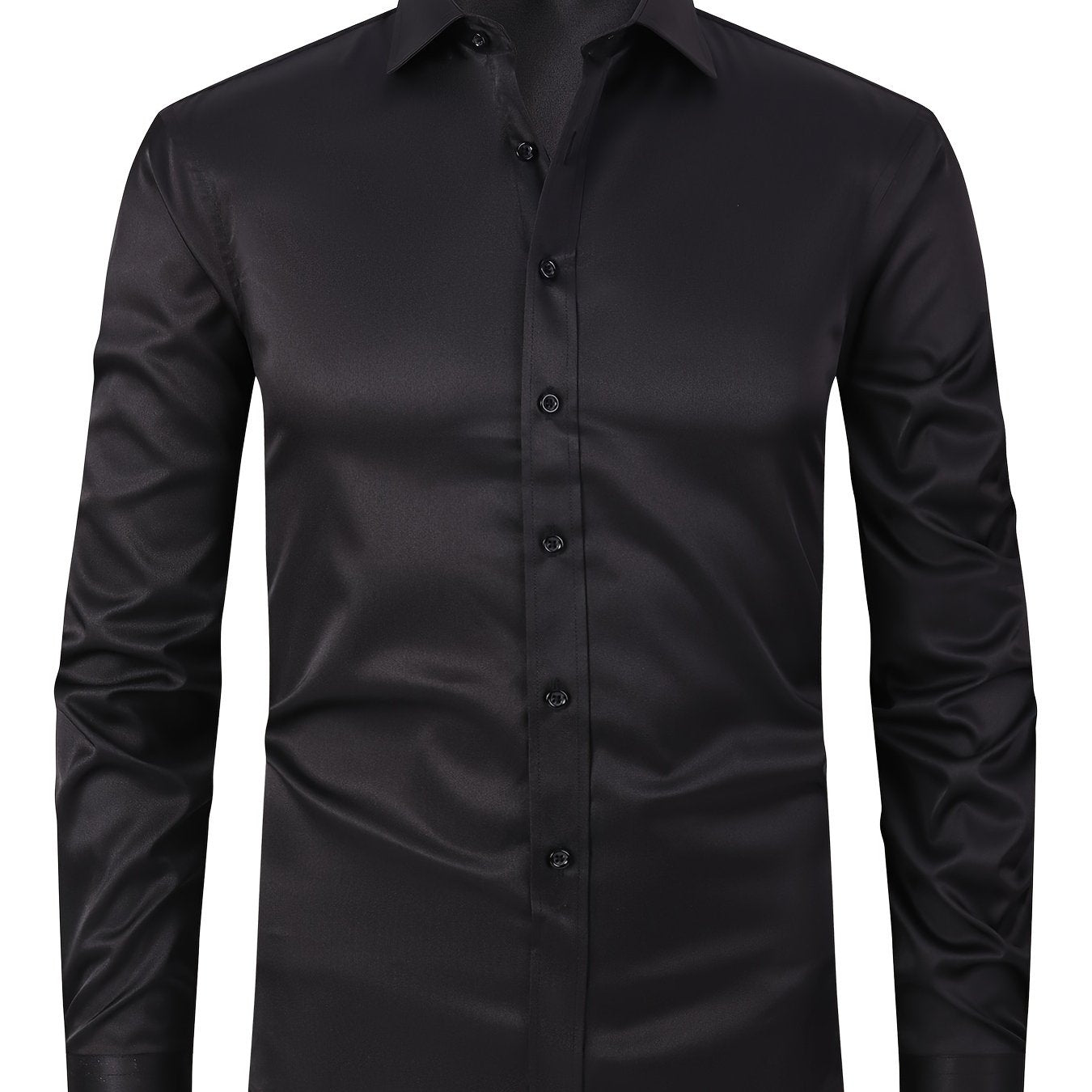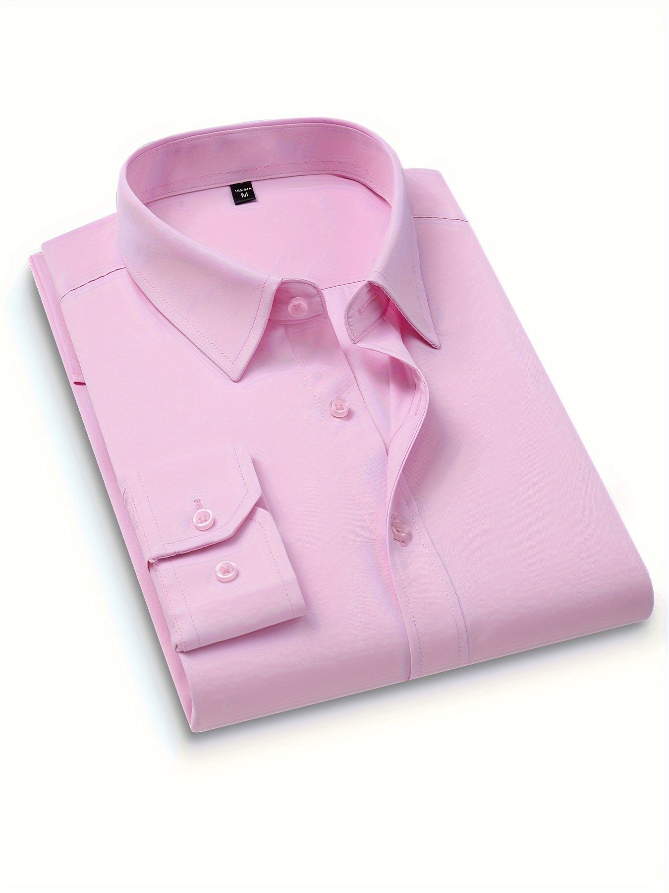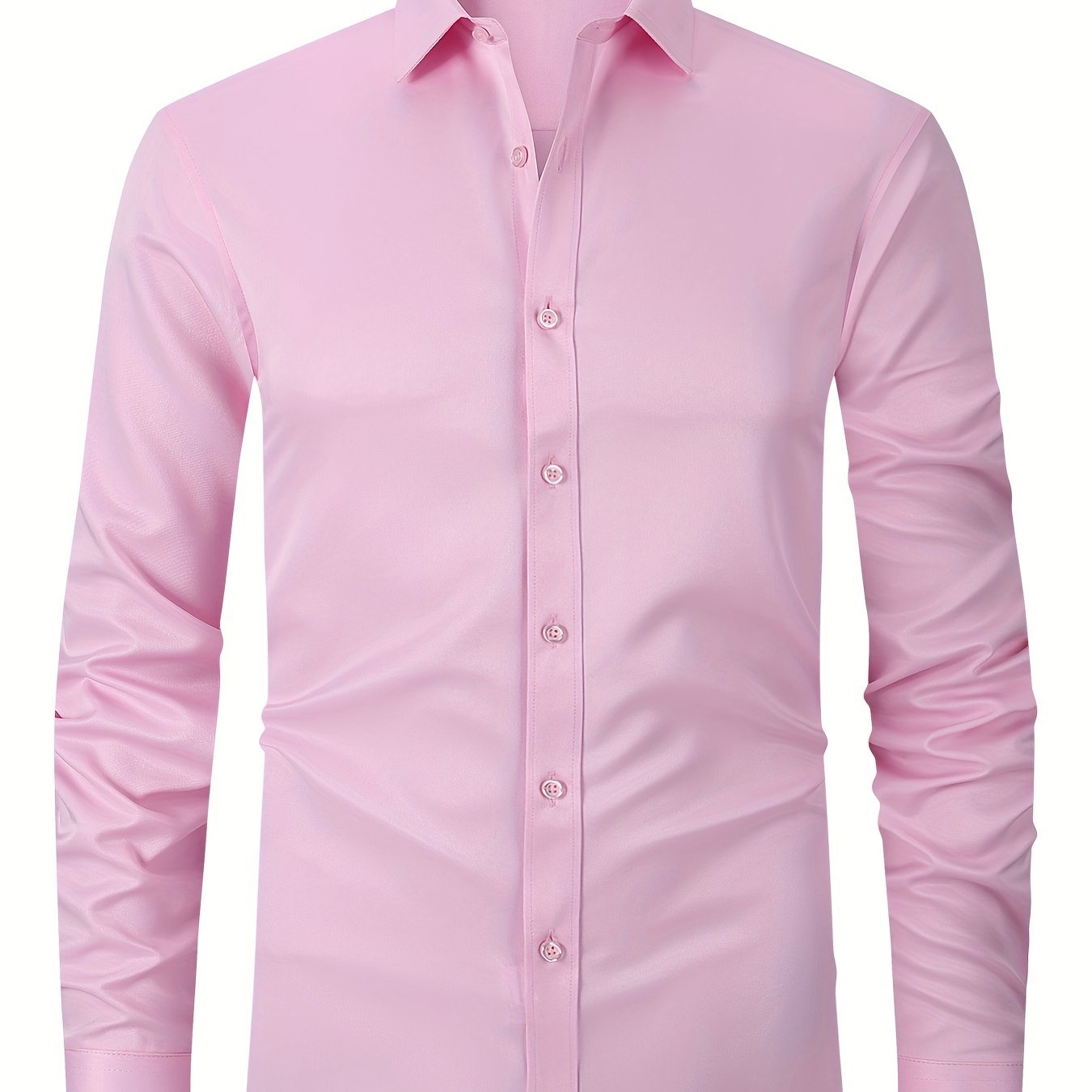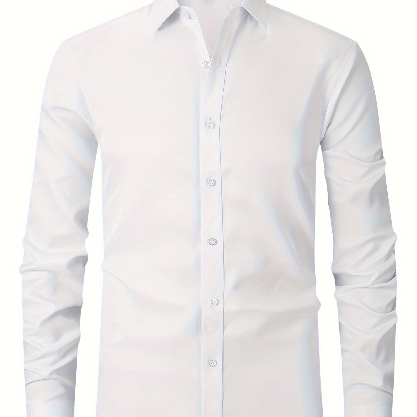 [Solid Color Dress Shirt] Long Sleeve Solid Color Dress Shirts - Men's Lapel Collar Design Casual Button Up Shirt For Formal Occasions