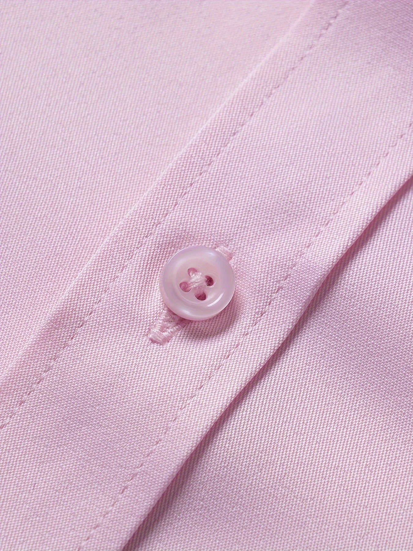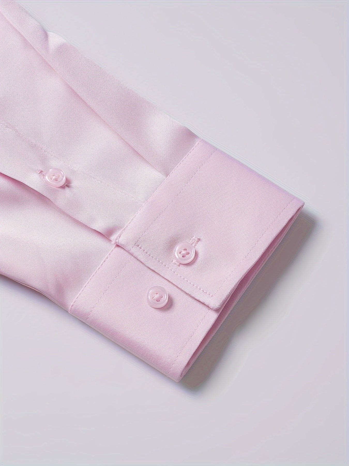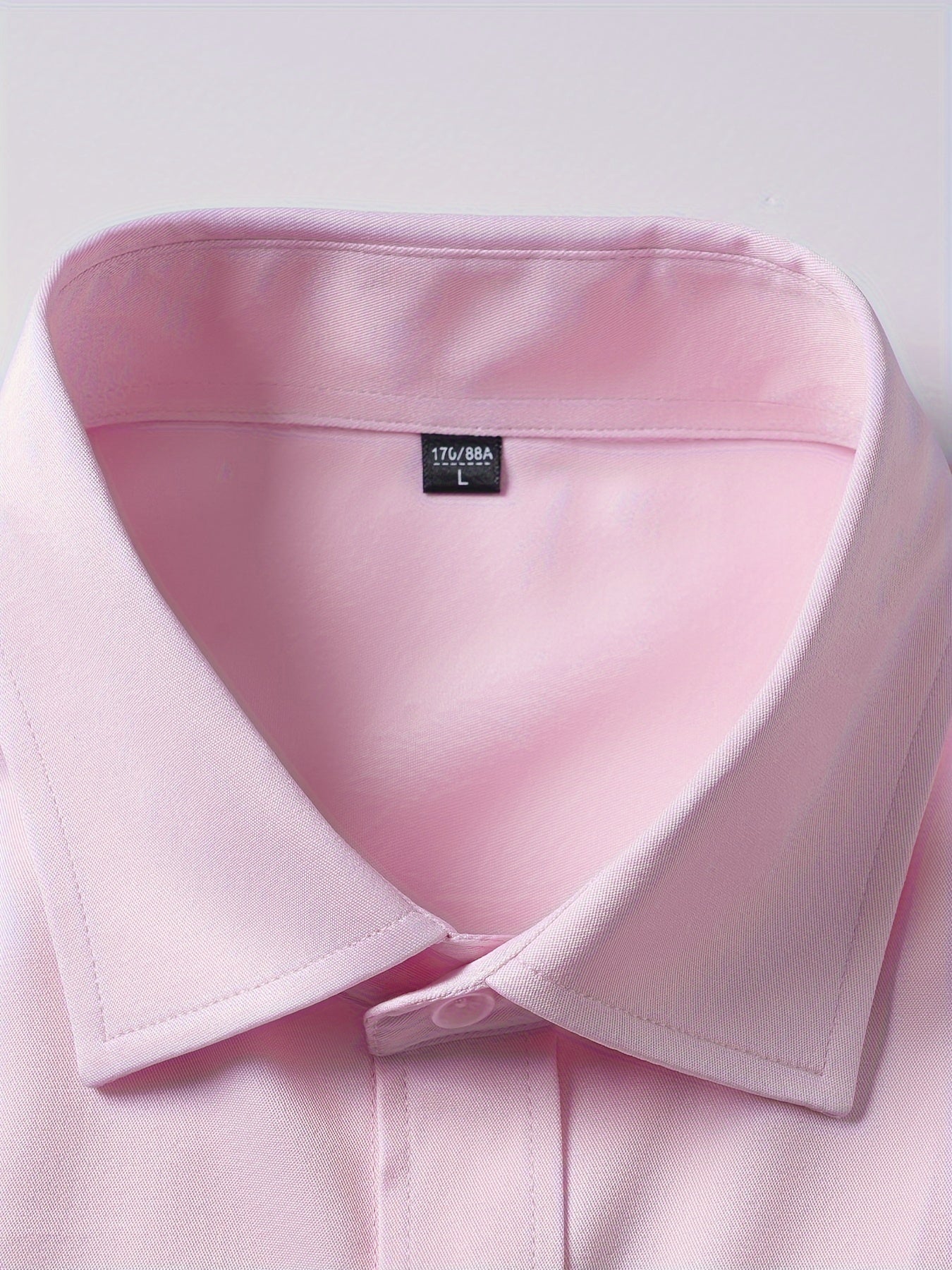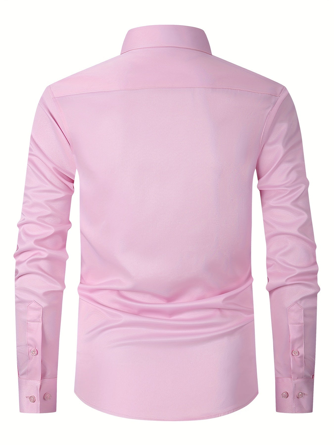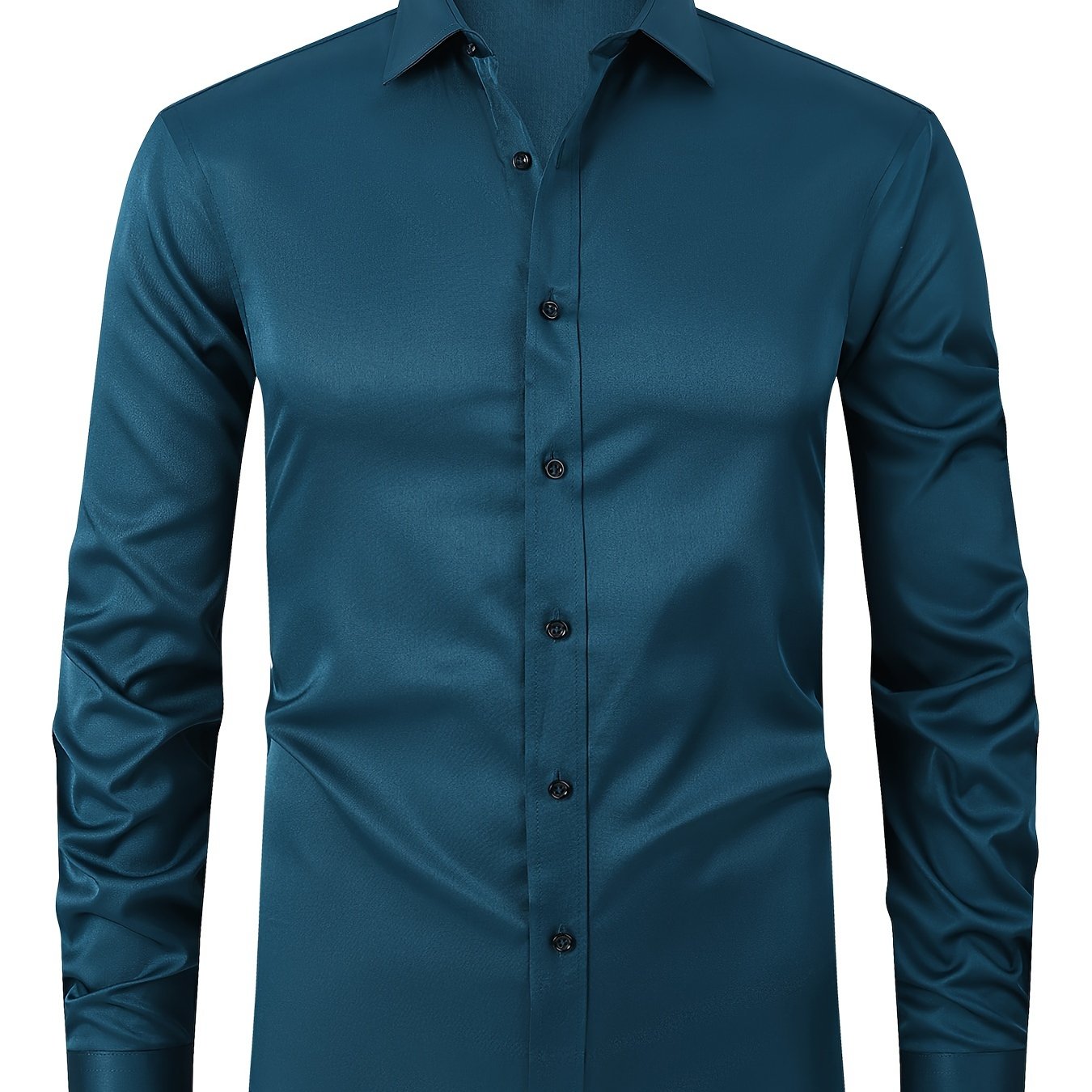 [Solid Color Dress Shirt] Long Sleeve Solid Color Dress Shirts - Men's Lapel Collar Design Casual Button Up Shirt For Formal Occasions