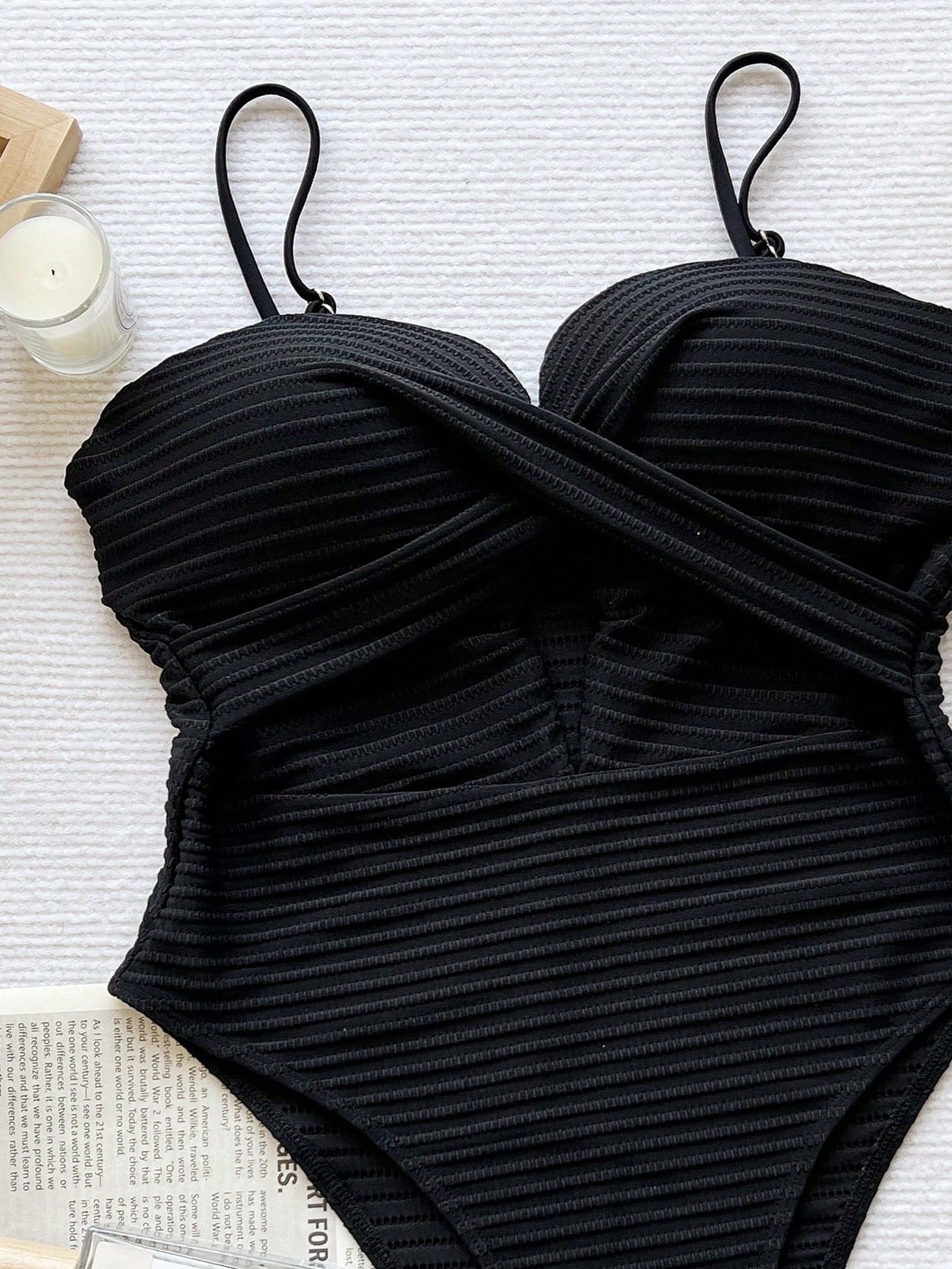 Solid Color Push Up One Piece Swimwear Wireless, Great For Vacation Summer